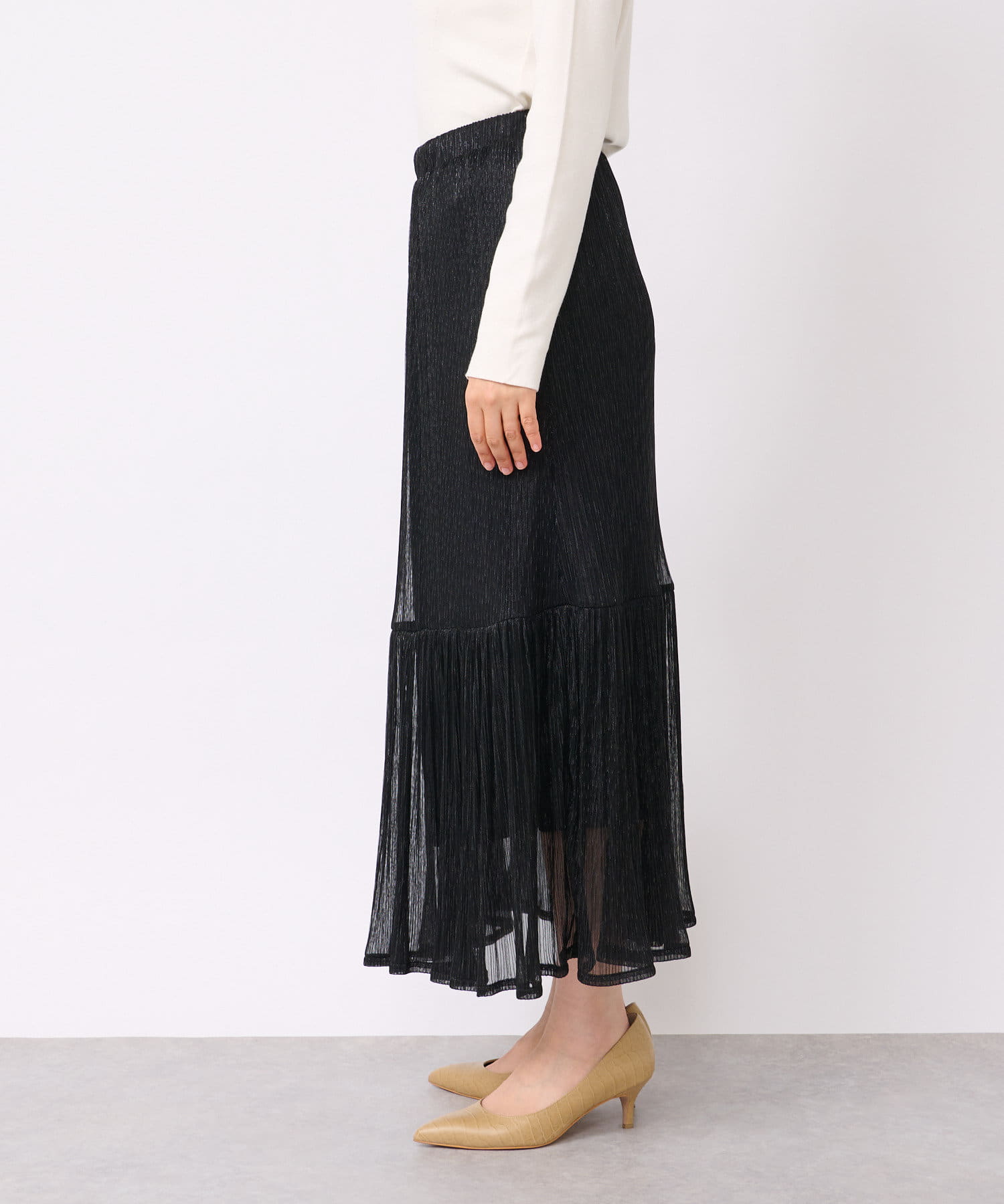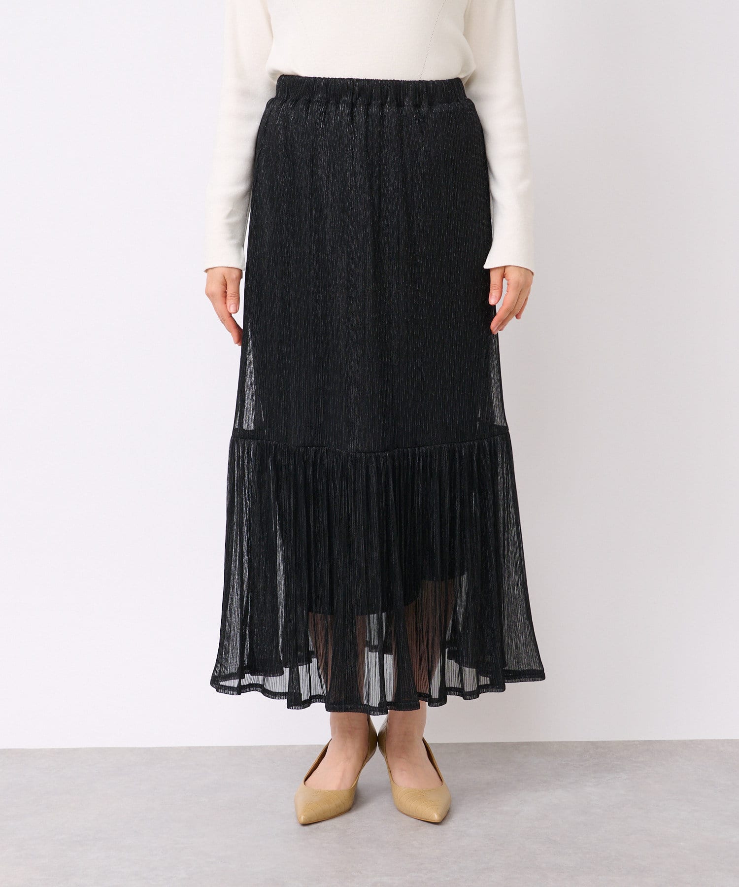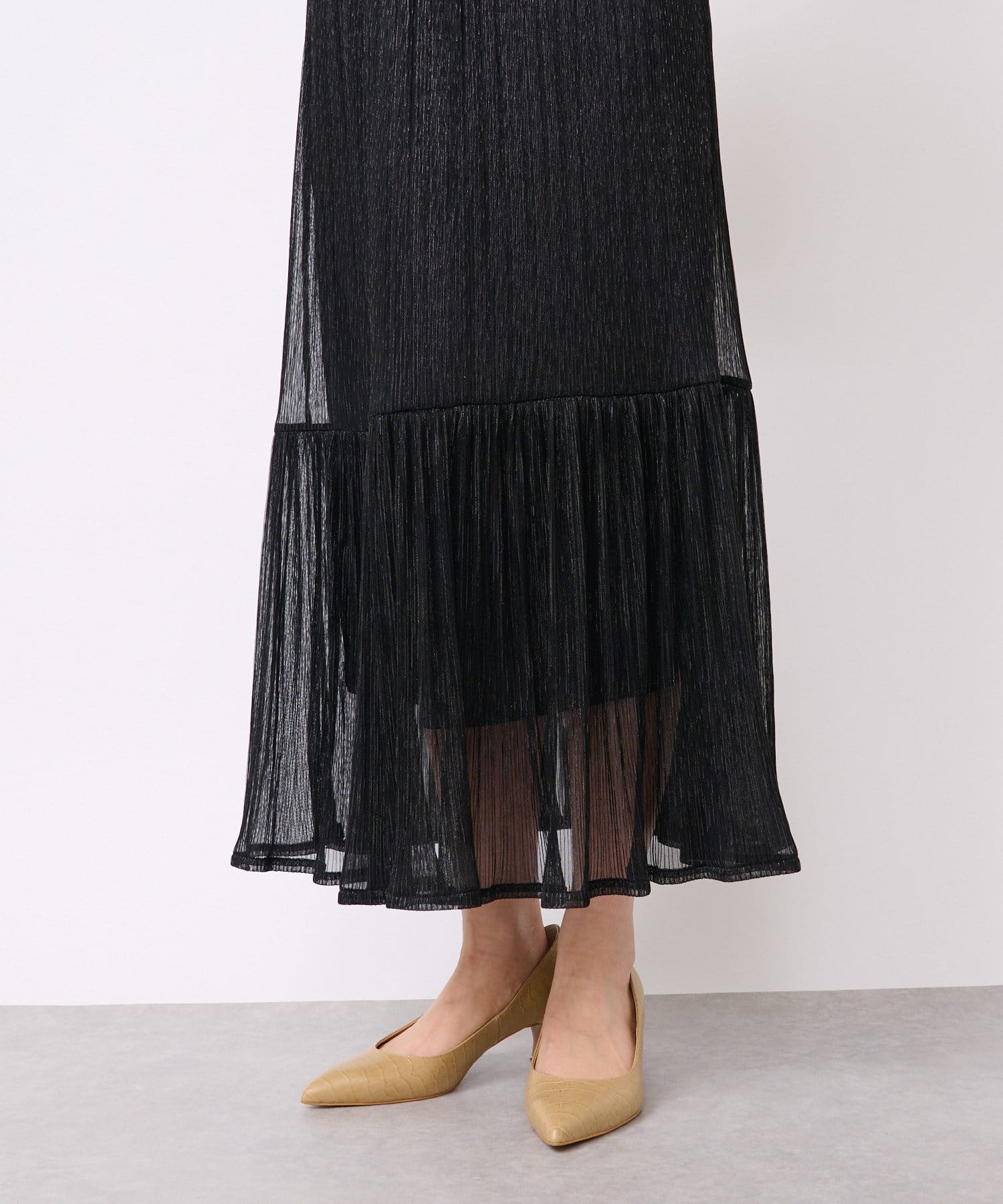 【WEB限定・足元を華やかに演出】ラメプリーツロングスカート