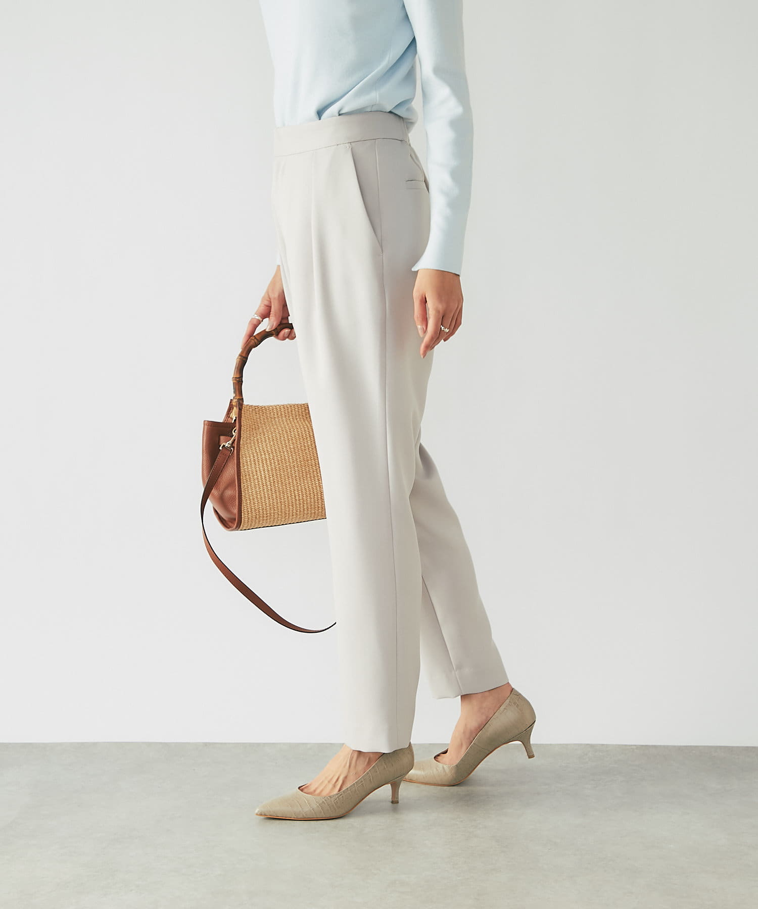 【さらりとした素材感が魅力】パウダリーツイルテーパードパンツ