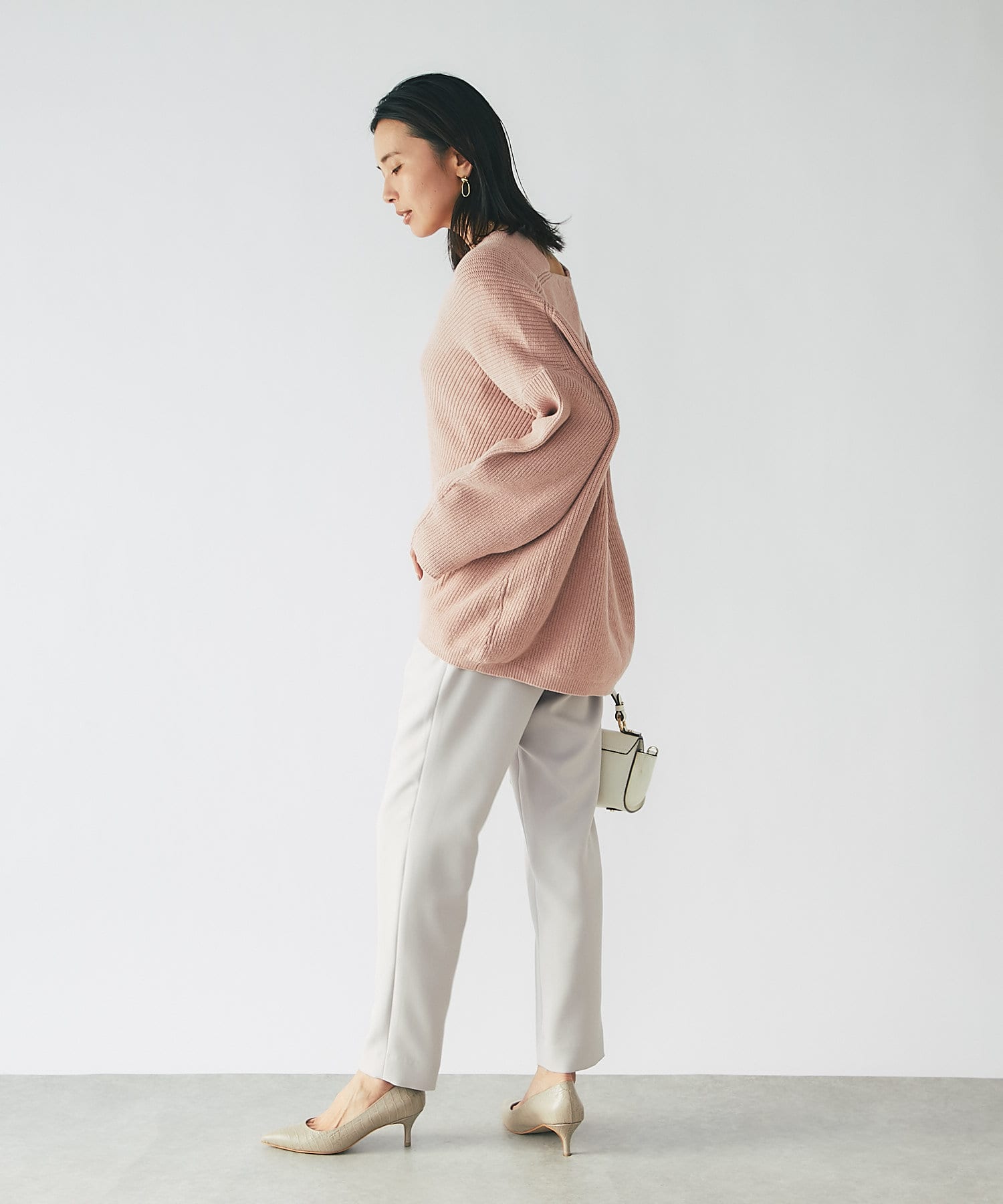軽やかな素材感となっておりますので、ニットコーデのほっこり感を抑え、洗練された印象をプラスしてくれます。