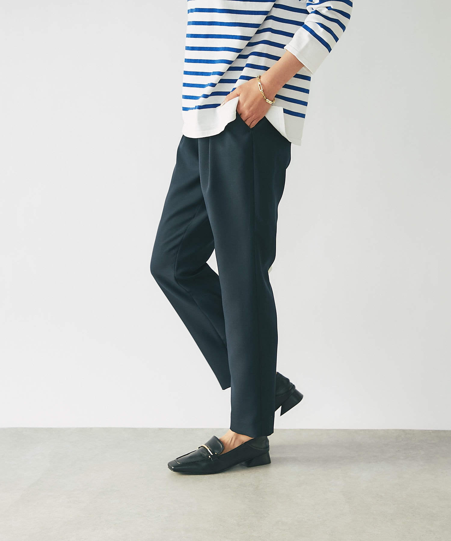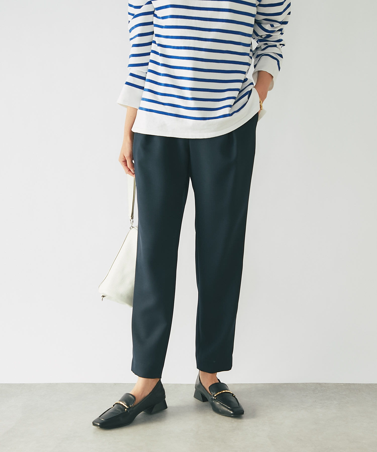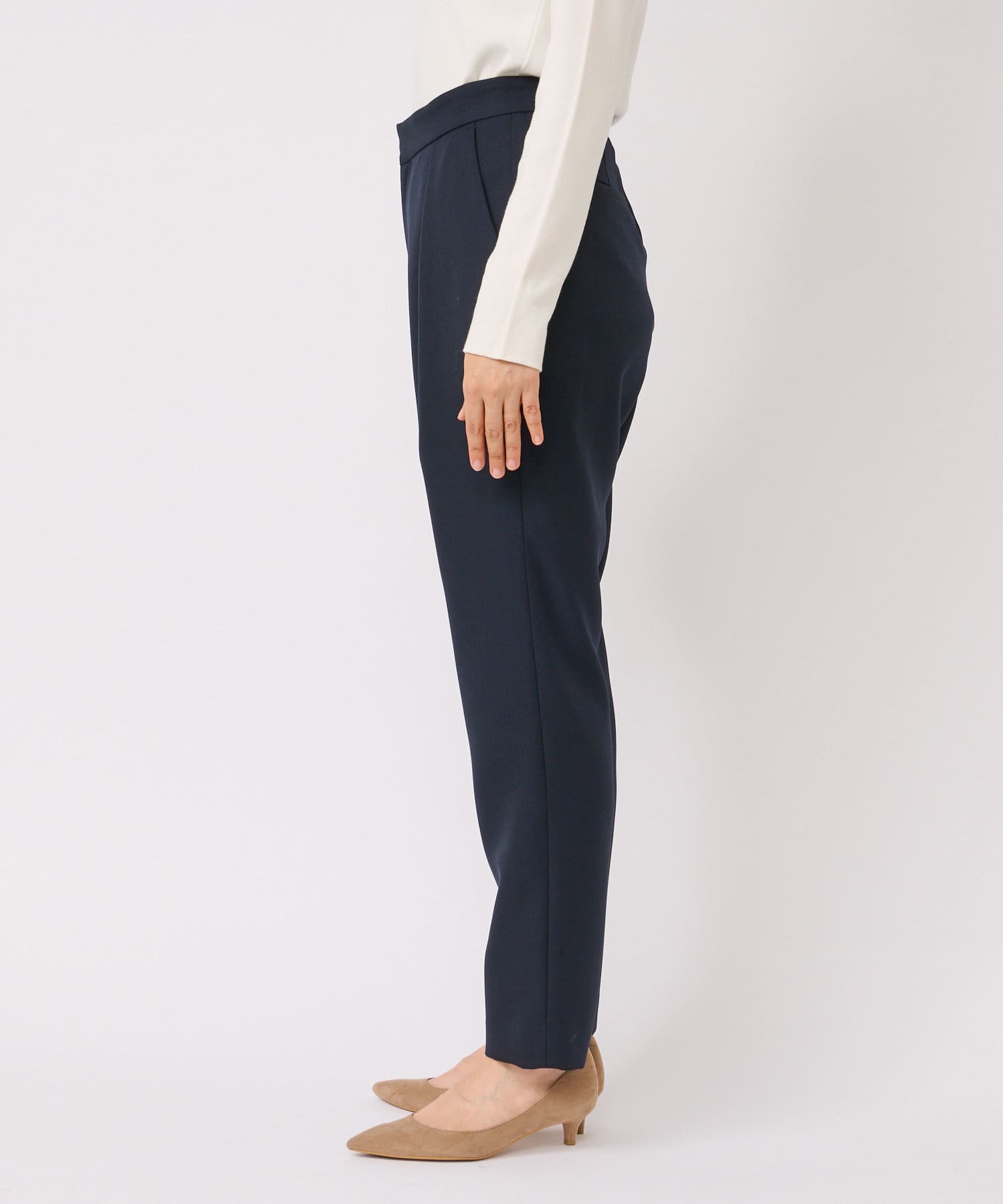 さらりとした素材感で履き心地抜群の美脚テーパードパンツ。