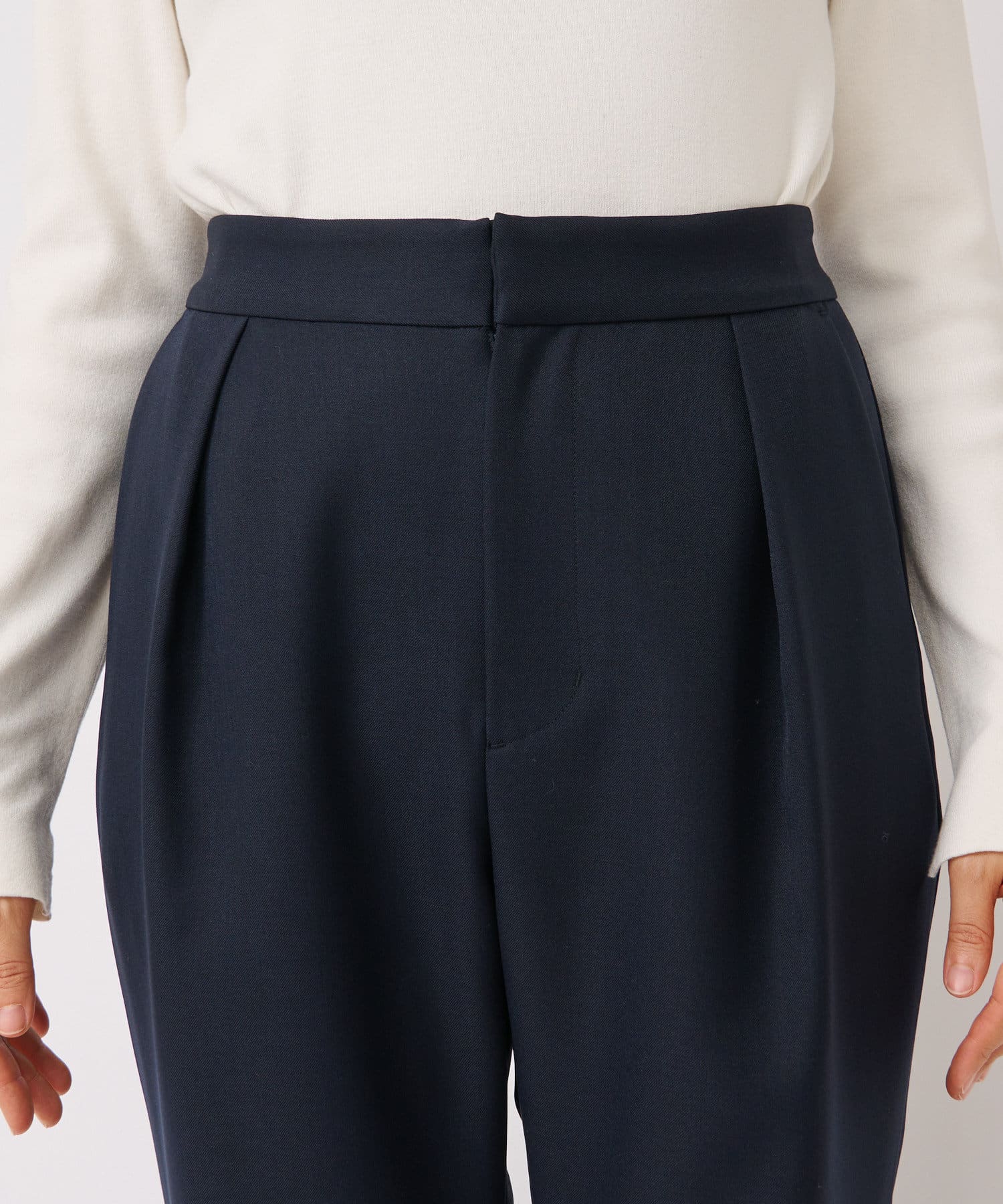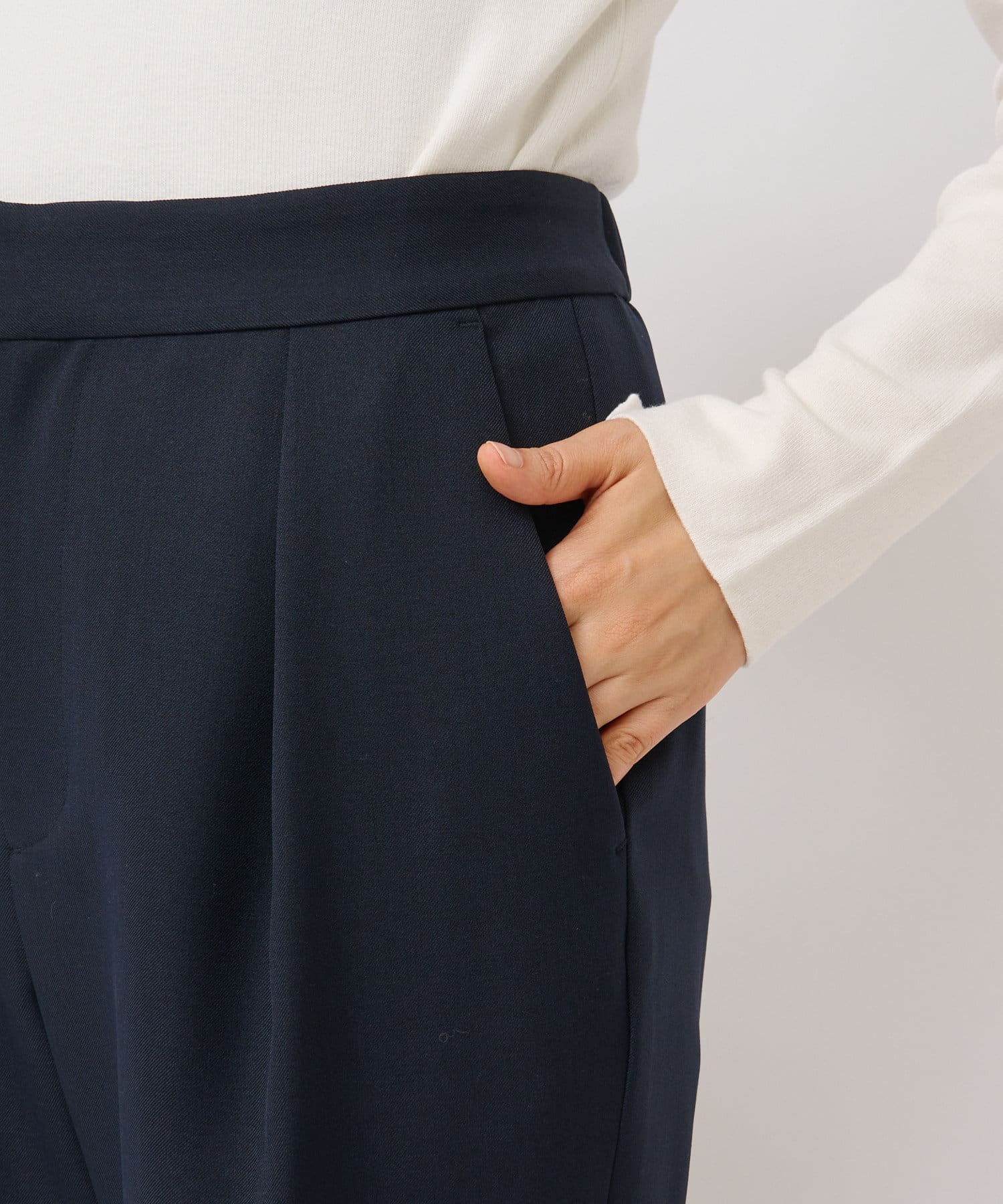 ウエスト部分にタックを取ることで、お腹周りをカバーできるように仕上げ、安心感も抜群です。