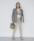 すっきりとしたテーパードシルエットなので、トップスにボリューム感のあるフリルブラウスなどを合わせるのも◎