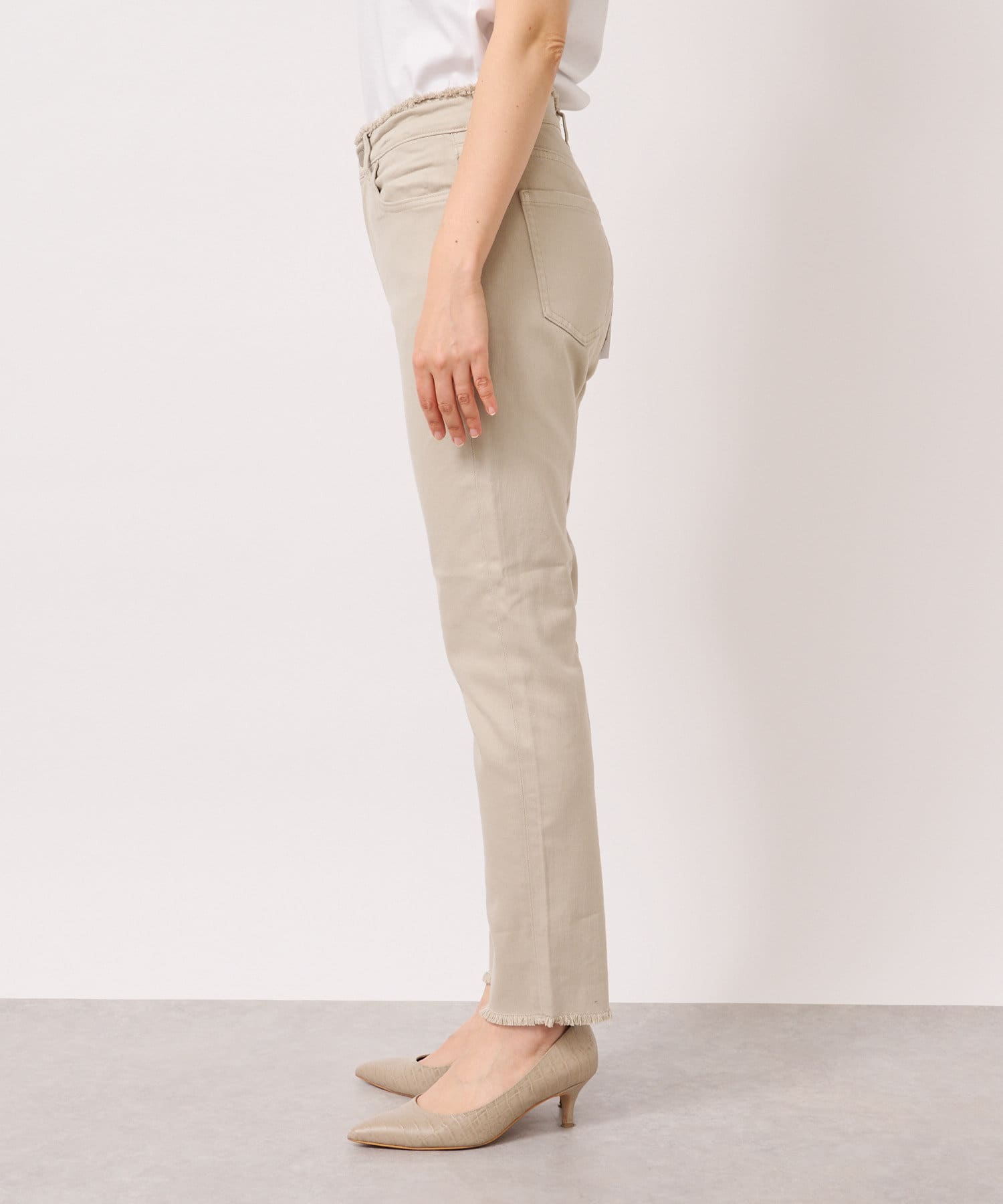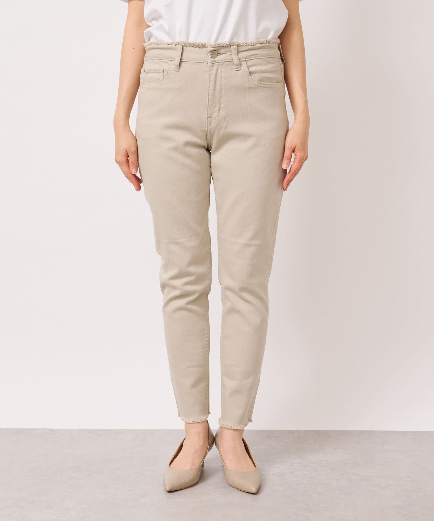 定番のテーパードパンツに肌なじみのいいグレージュカラーが登場!