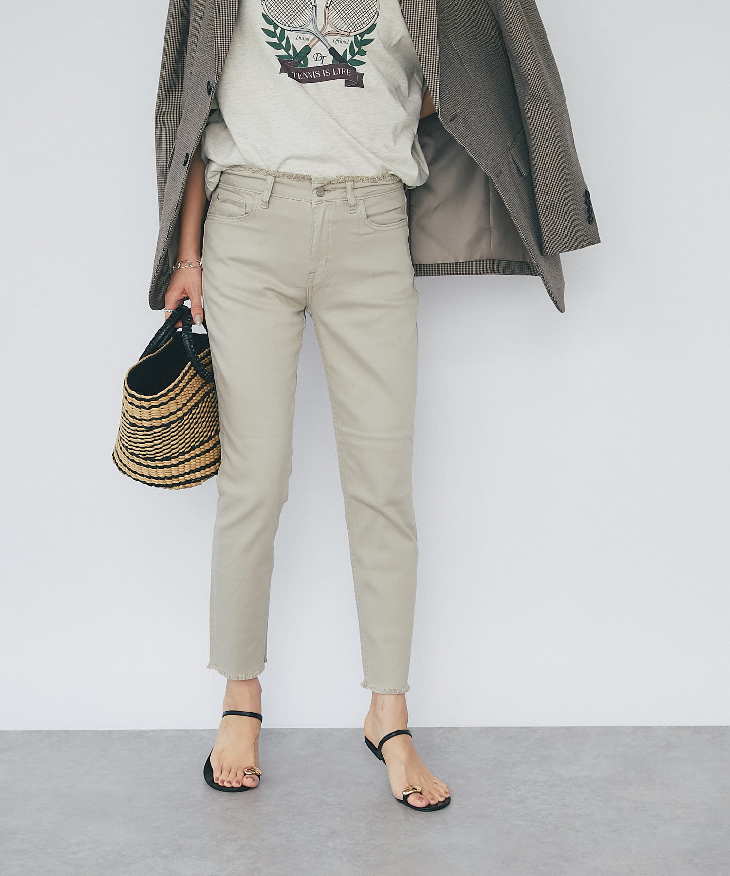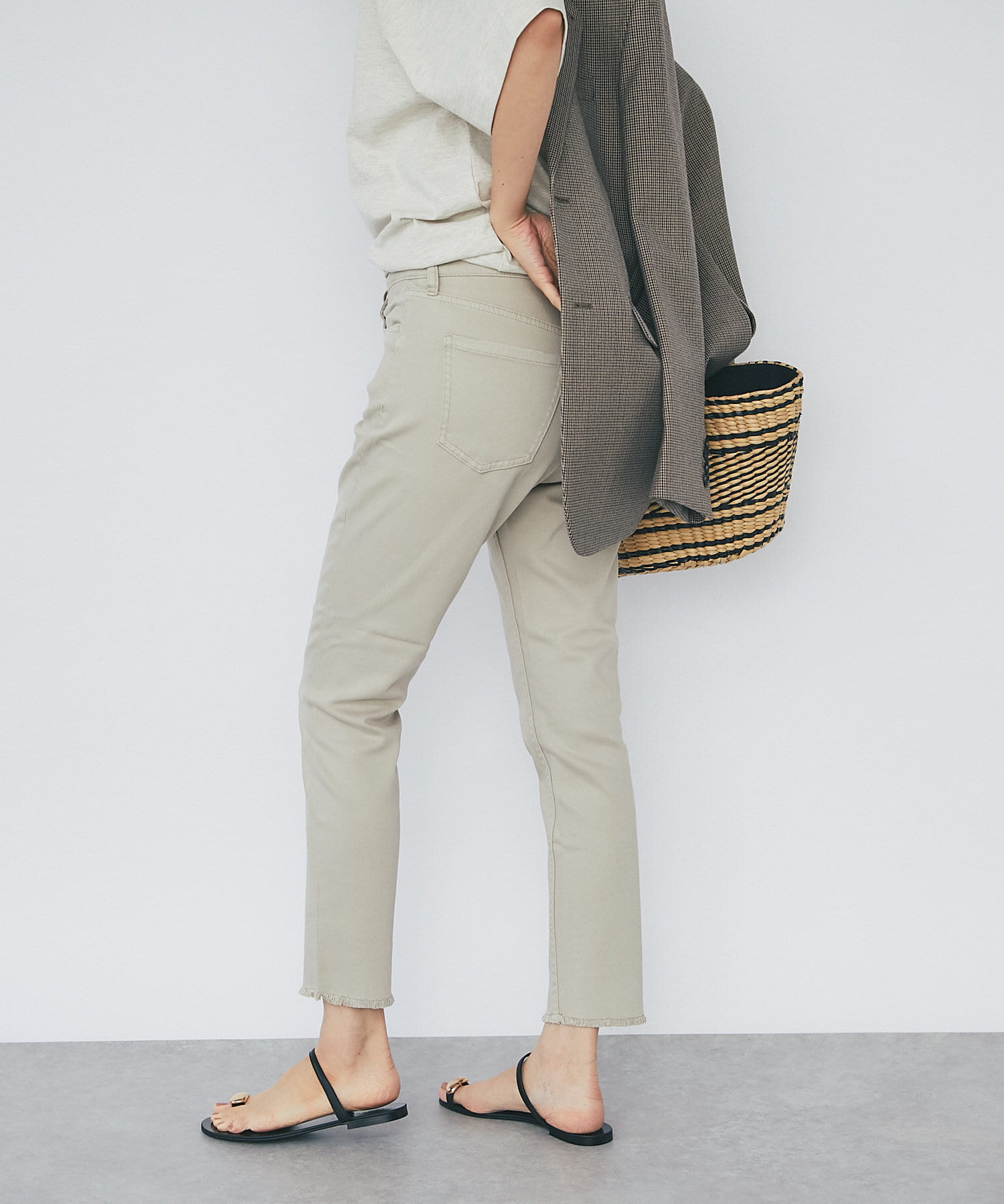 程よくゆとりが残るボーイフレンドフィットで窮屈感のないシルエットながら、少しのゆるみが逆に足をすっきりと見せてくれるアイテムです。
