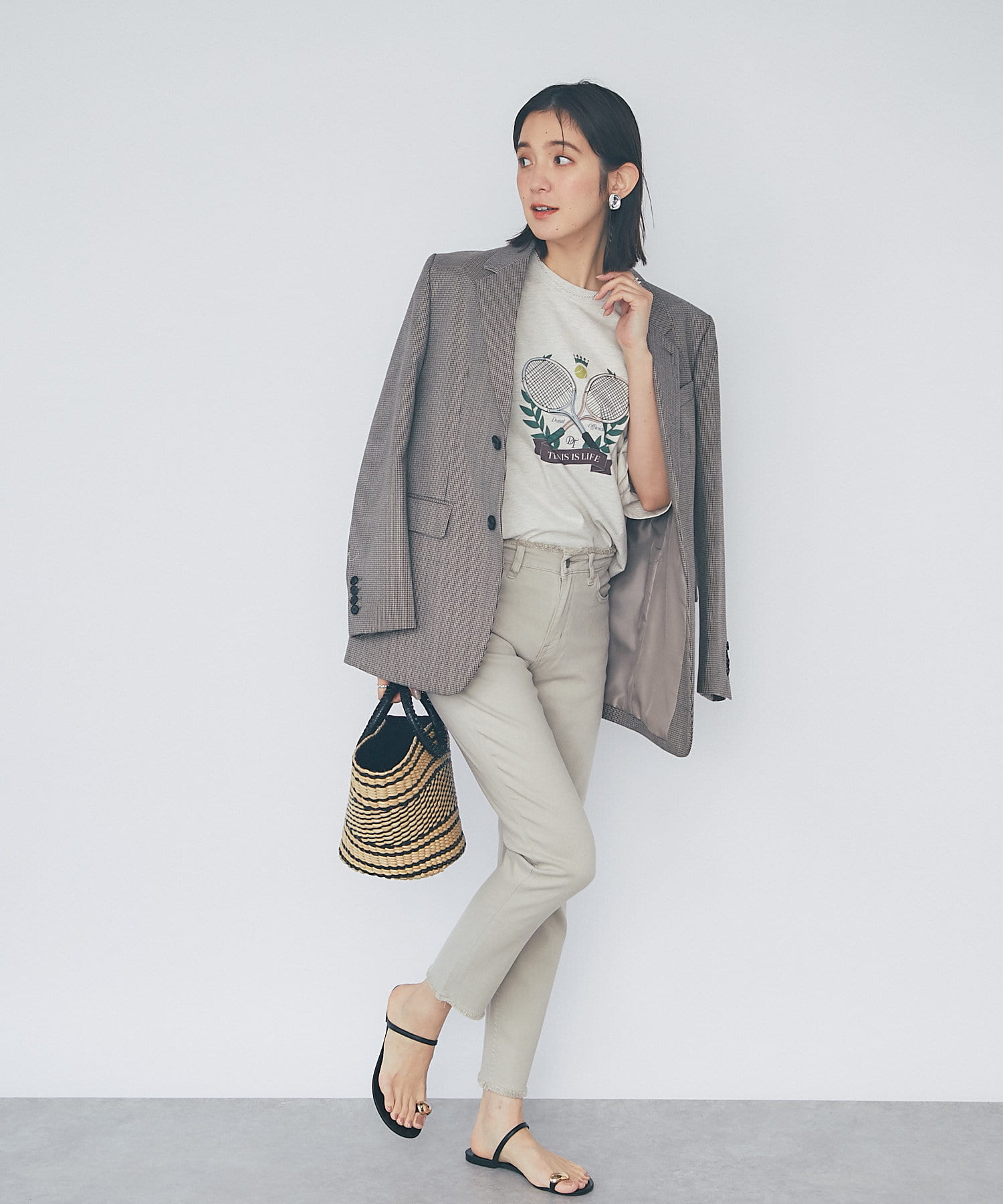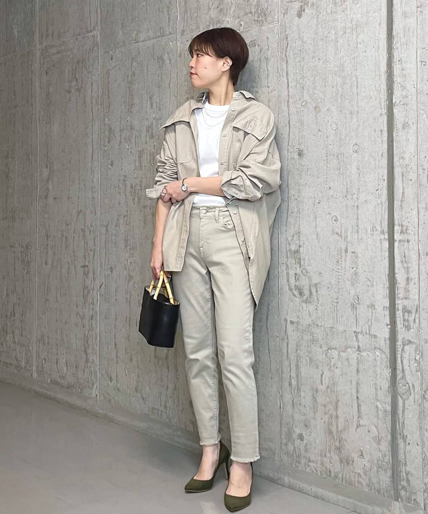 軽やかなグレージュカラーは、様々なカラーに合わせやすい万能アイテム。