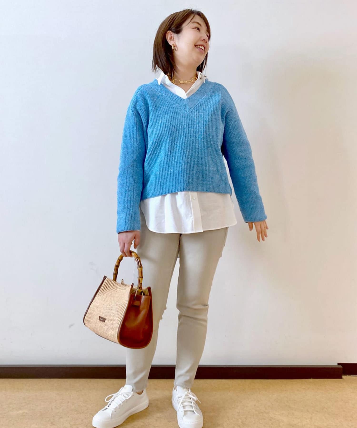 パリッとしたホワイトシャツでトーンを合わせたコーディネートから、ブルーやオレンジのカットソーを合わせた鮮やかなカラーコーディネートまで、様々な着こなしが楽しめます。