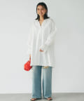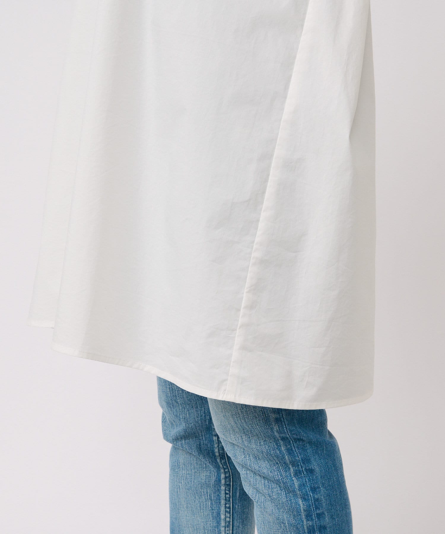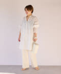 綿ポリエステル素材は透けにくく、長めの着丈はミニワンピや羽織りとしても着用可能。