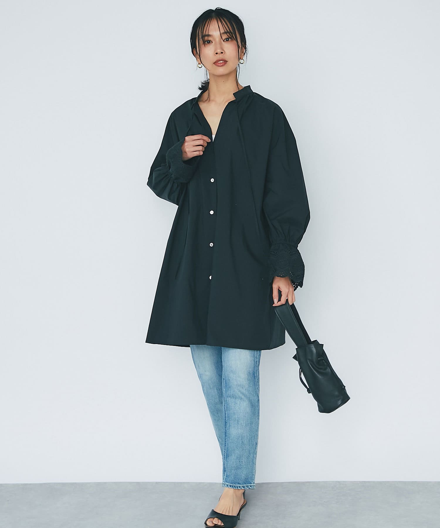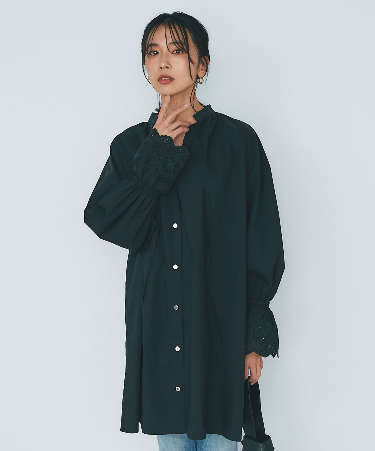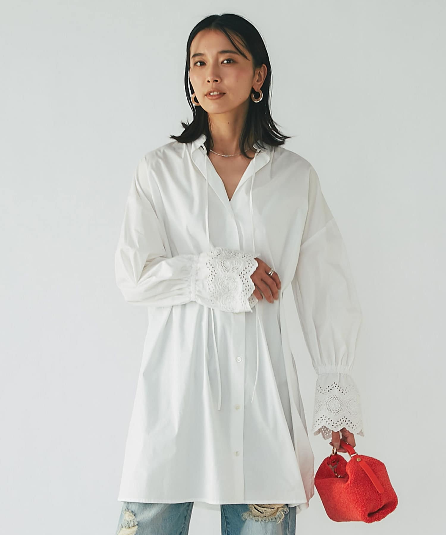 TOP > RIVE DROITE > レディース > トップス > シャツ/ブラウス(ボタン) > 【繊細なレースが華やかさをプラス】レースカフスロングシャツ