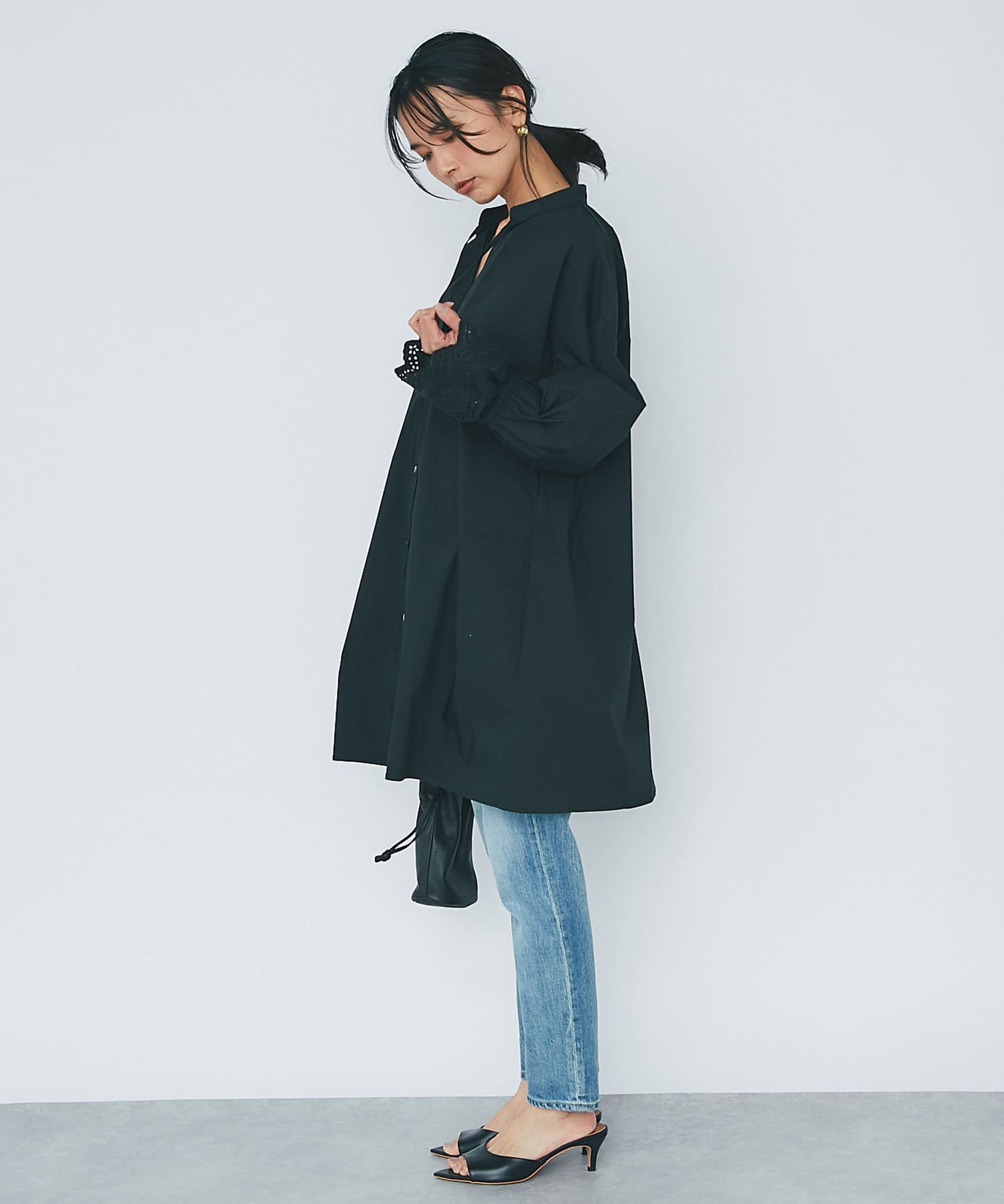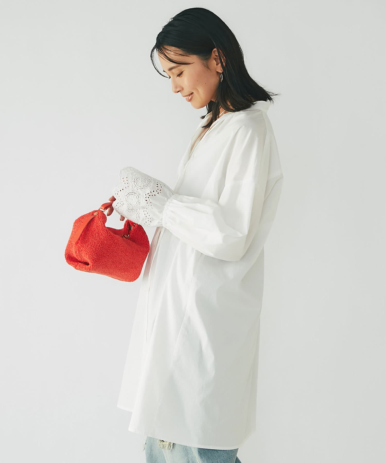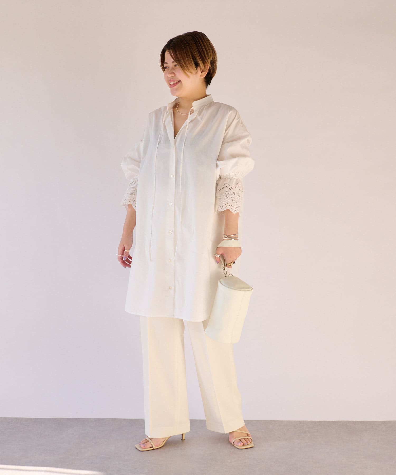 TOP > RIVE DROITE > レディース > トップス > シャツ/ブラウス(ボタン) > 【繊細なレースが華やかさをプラス】レースカフスロングシャツ
