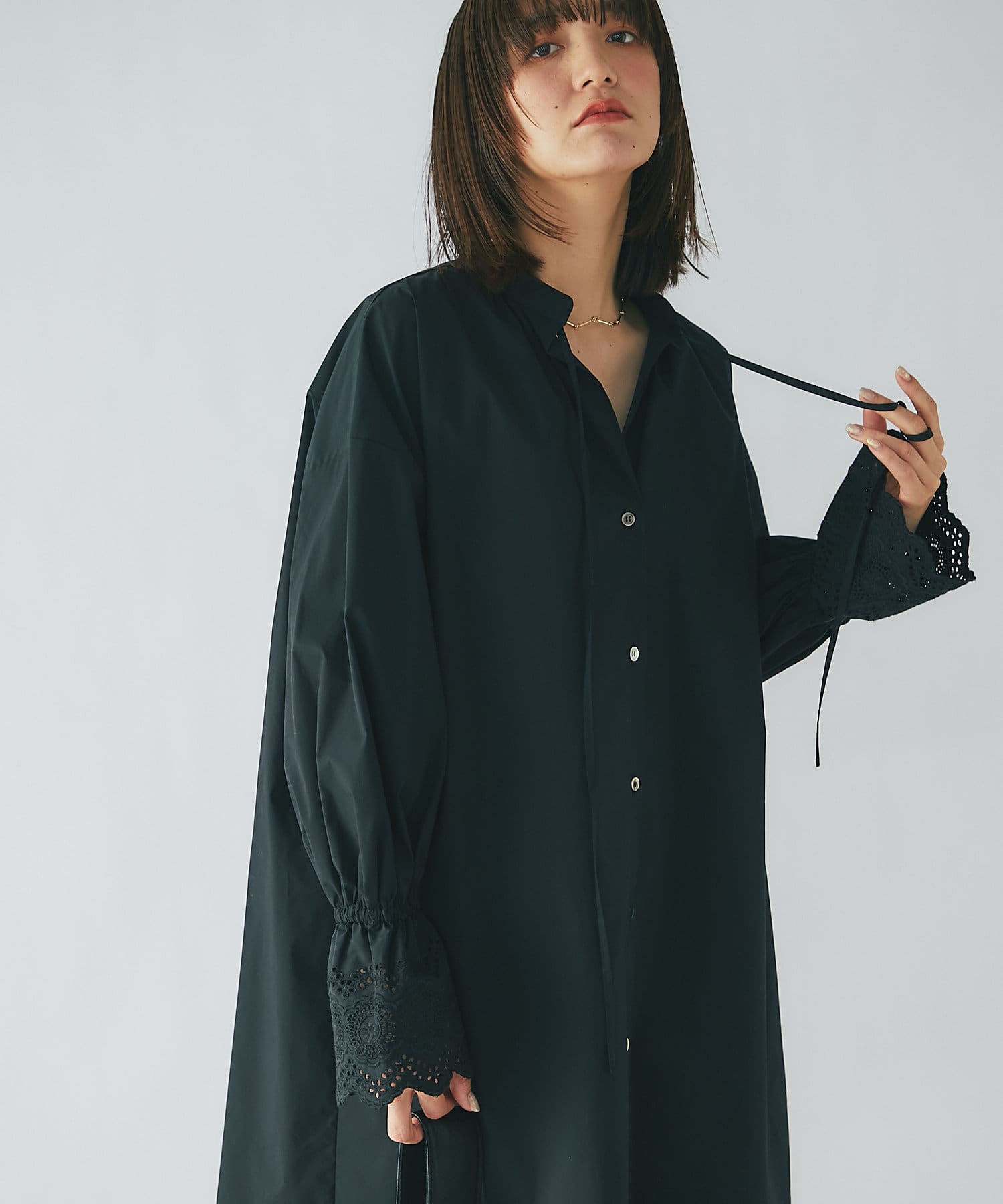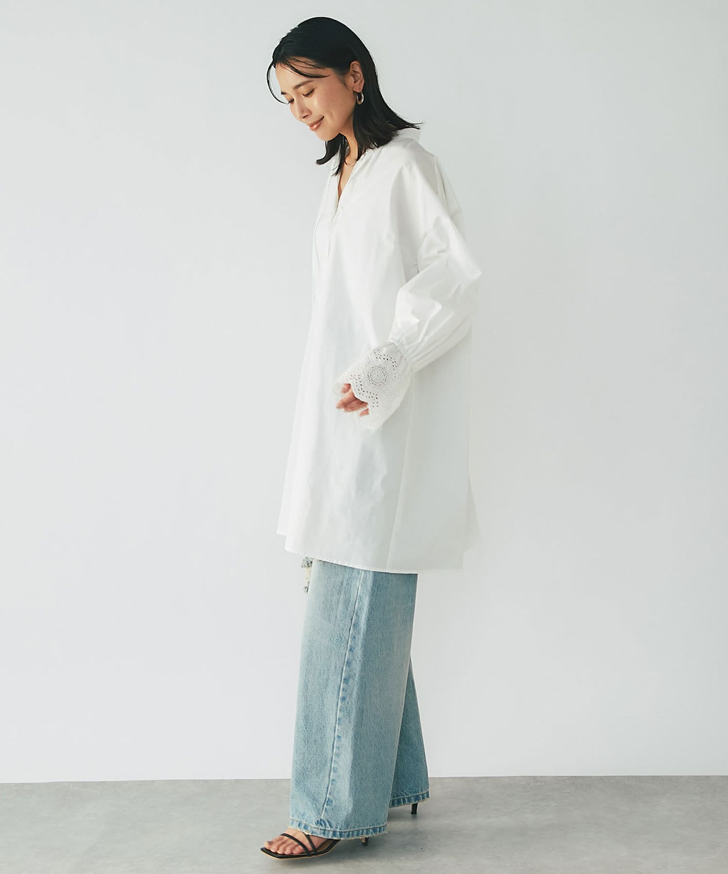 RIVE DROITE(リヴドロワ) 【繊細なレースが華やかさをプラス】レースカフスロングシャツ