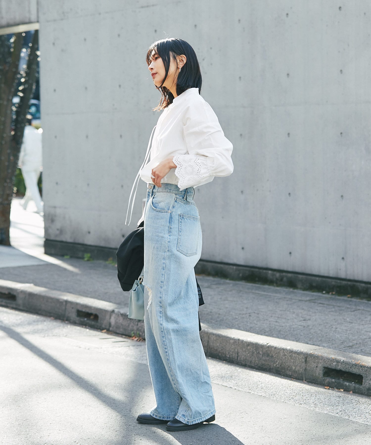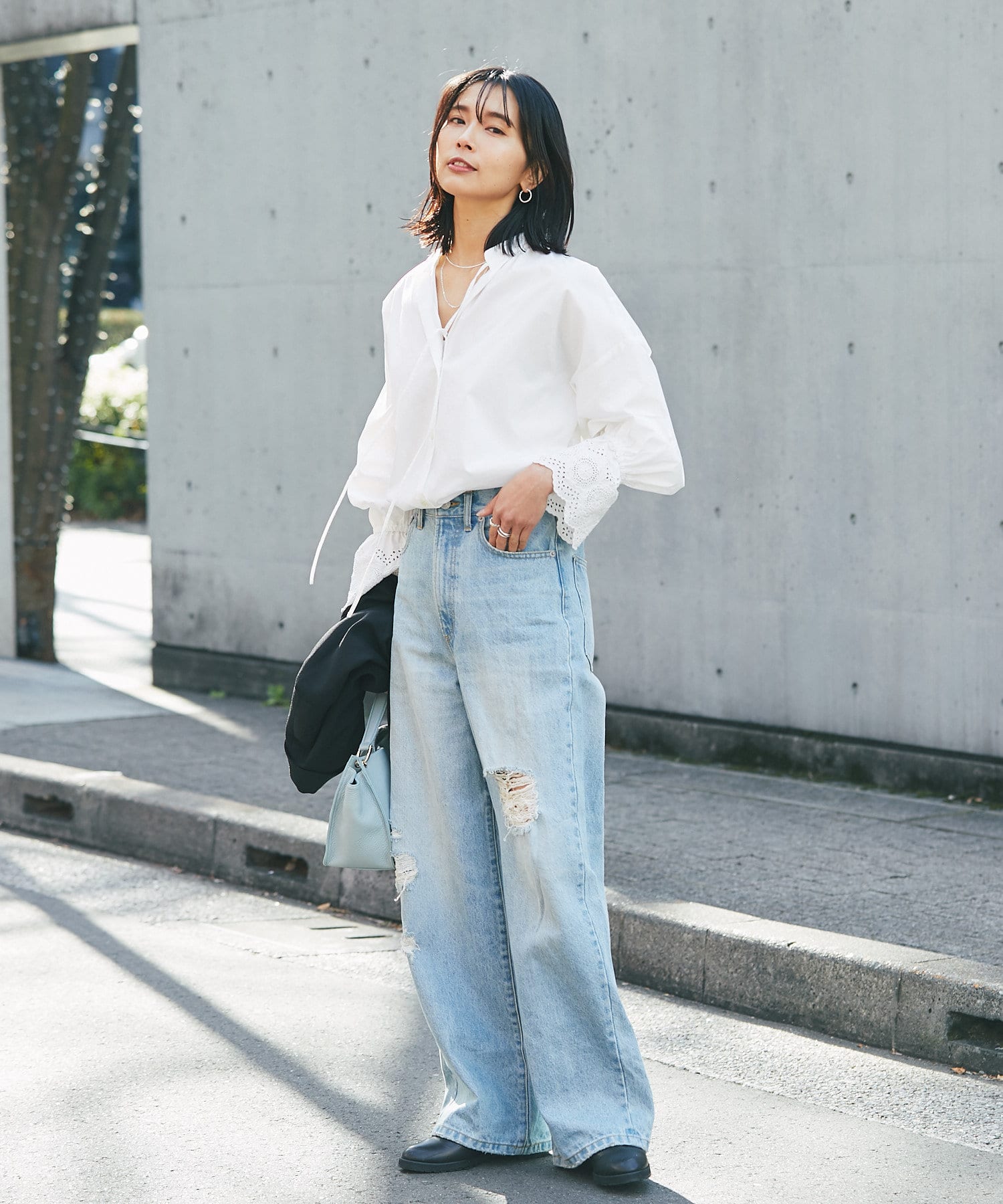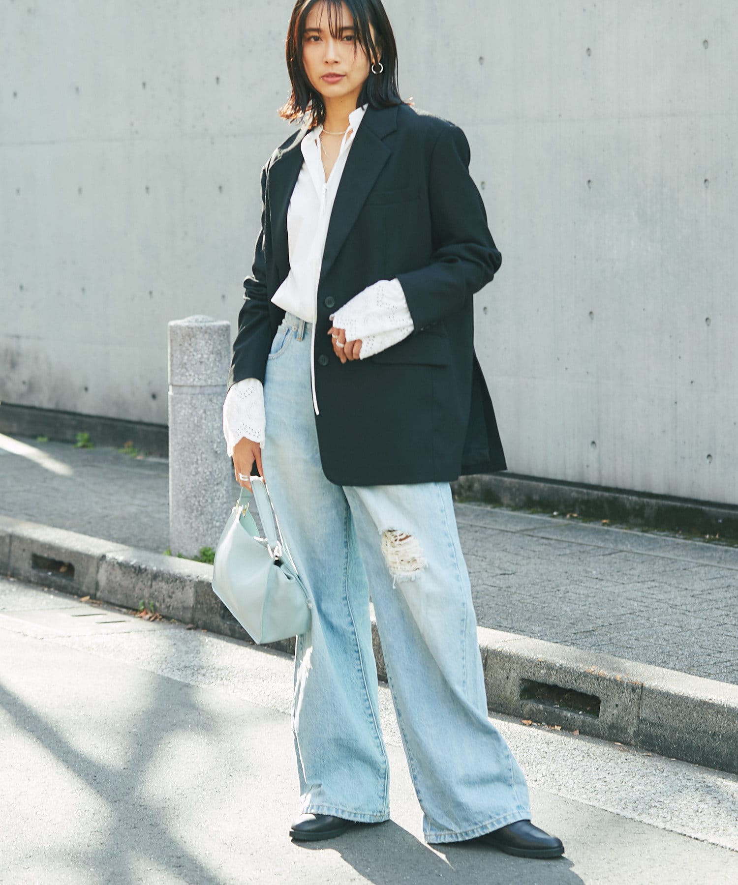ボトムにはデニムはもちろん、タイトスカートなどで急緩を付けたメリハリのある綺麗めスタイルにも相性抜群。