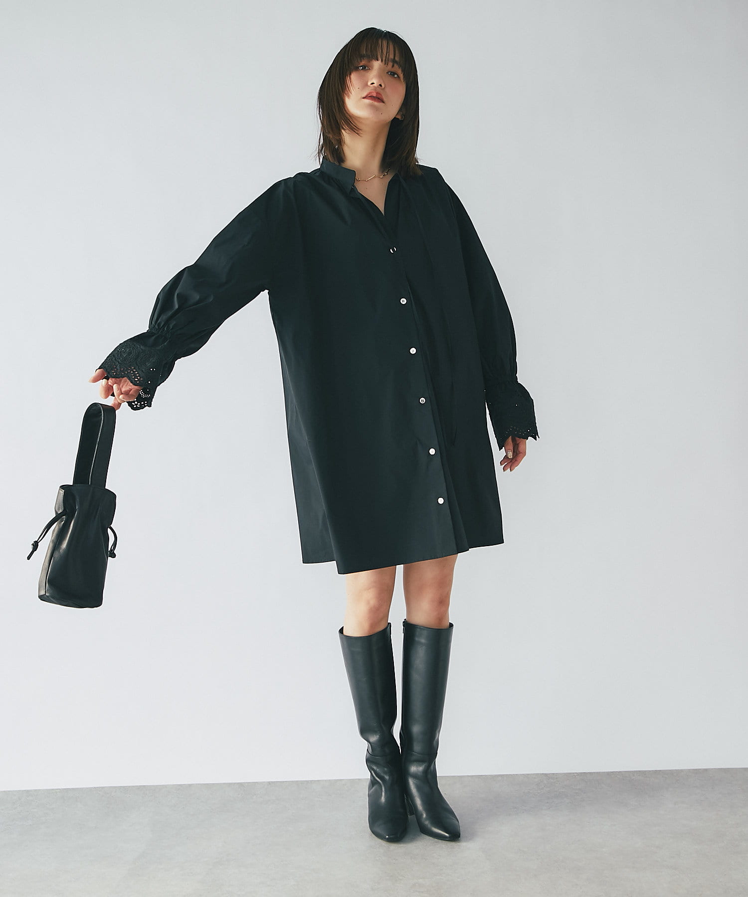 襟元のコードもワンポイントになりますので、メンズライクなアイテムからレースをのぞかせるタフ&フェミニンなコーデもオススメです。