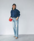 濃い目のブルーカラーと程よいウォッシュ加工に個性が光るアイテム。