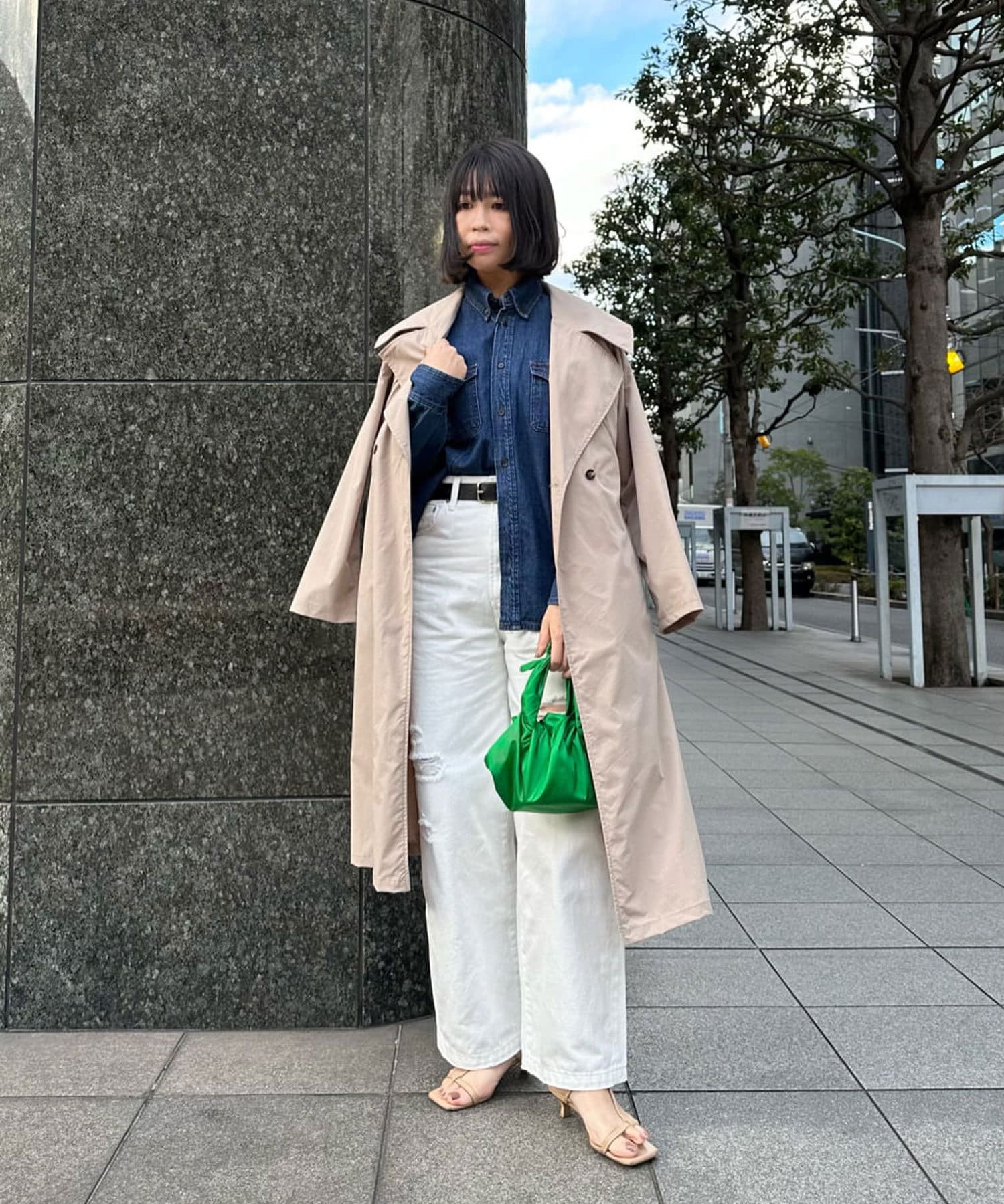 より今年らしく着るなら、薄めのカラーのデニムを合わせたデニムonデニムコーデもおすすめ。トレンドのツイード素材との相性も良いので、ジャケットやベストにツイードを取り入れたスタイルも◎