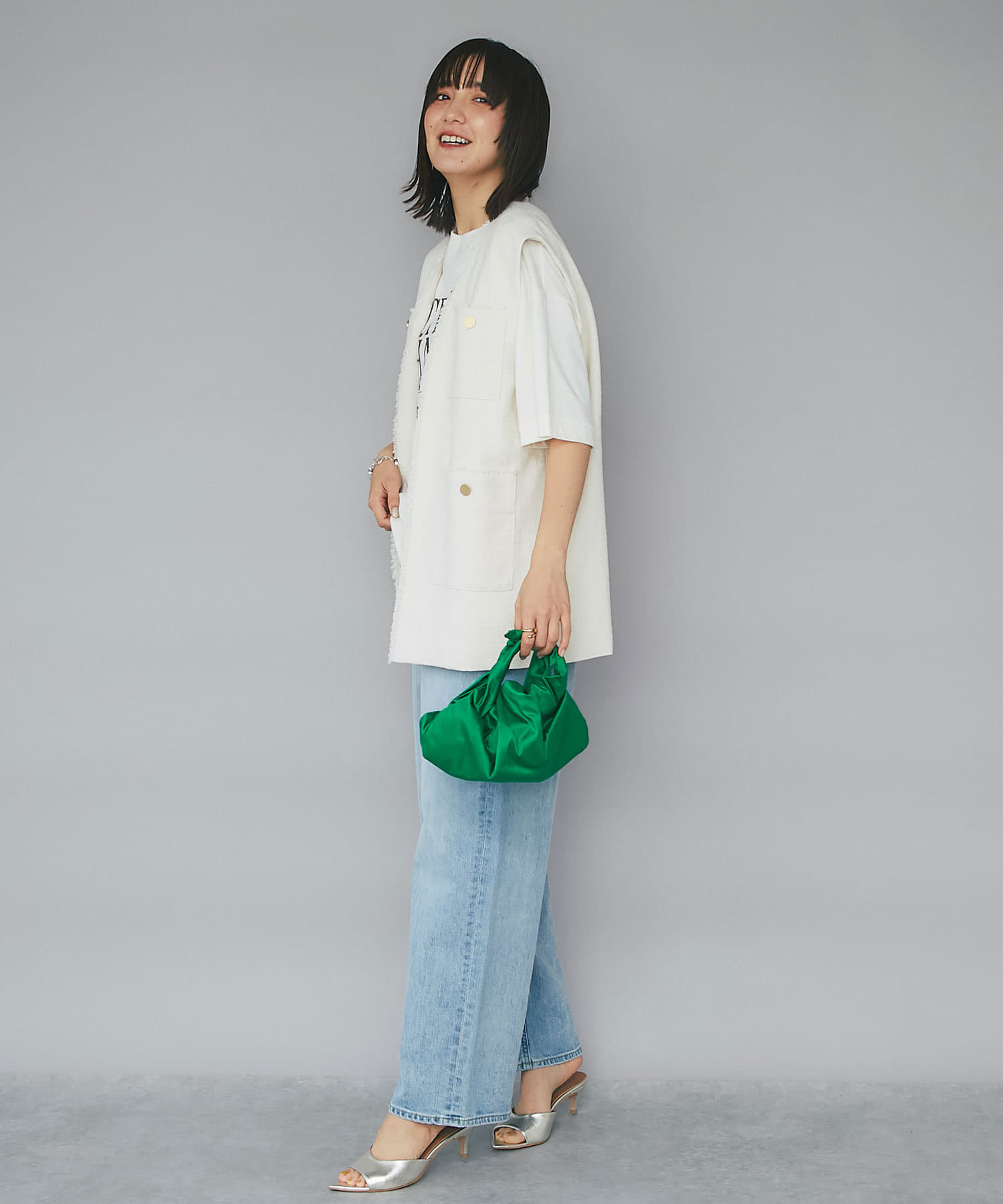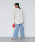 ボトムは選ばず、カジュアルならデニムやワイドパンツなどのリラックス感のあるもの、綺麗めスタイルなら、タイトスカートなどでスマートに合わせて頂くと素敵に着こなせます。