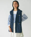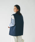 ⇒異なる素材を使用しており、こちらのベストのほうが生地感的にもやや薄く、夏場も取り入れやすいです。また、ネイビーのカラーリングはこちらのベストのほうが明るめとなっております。