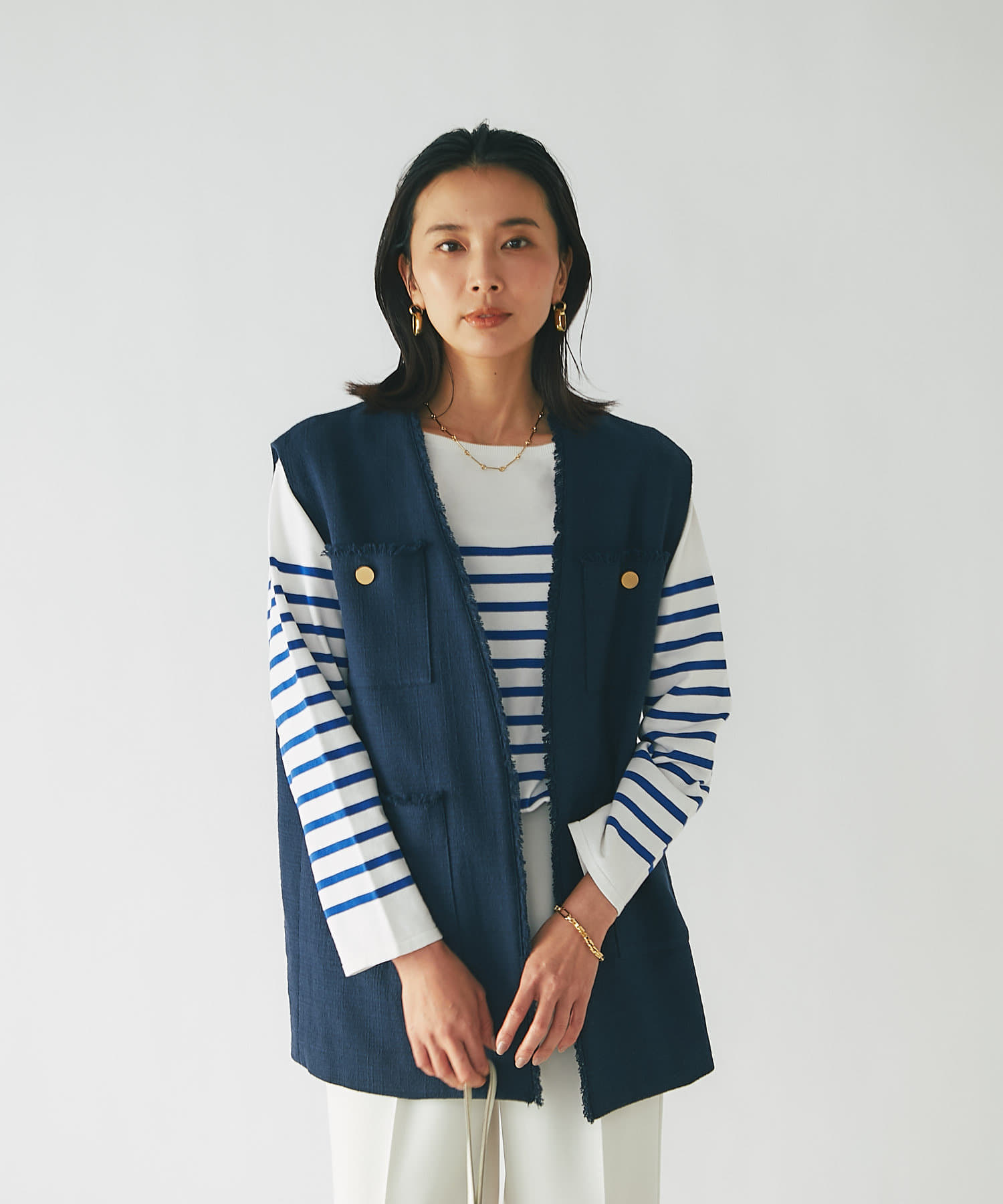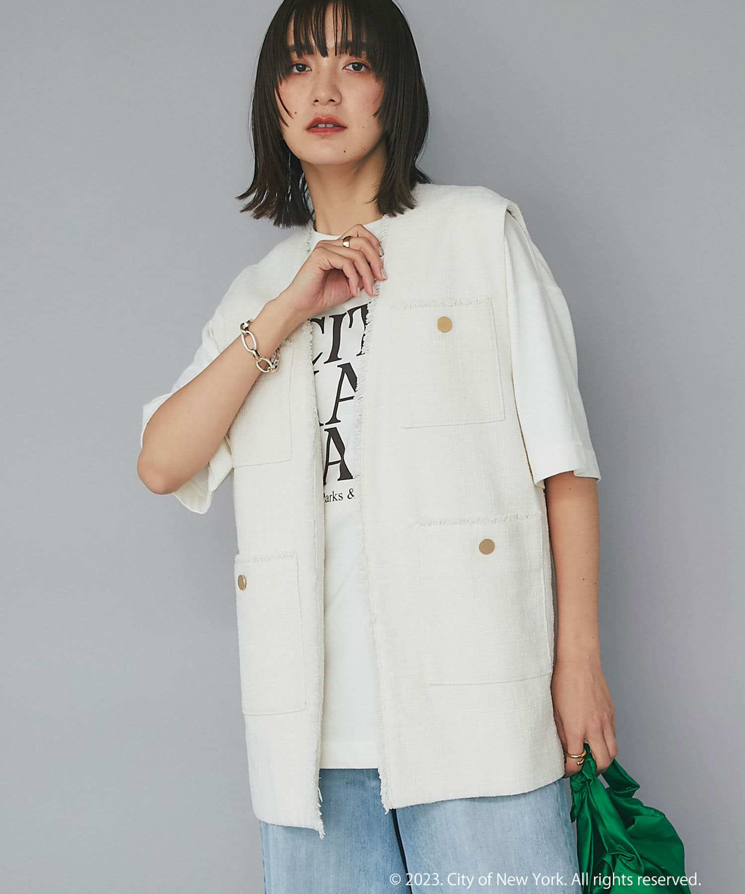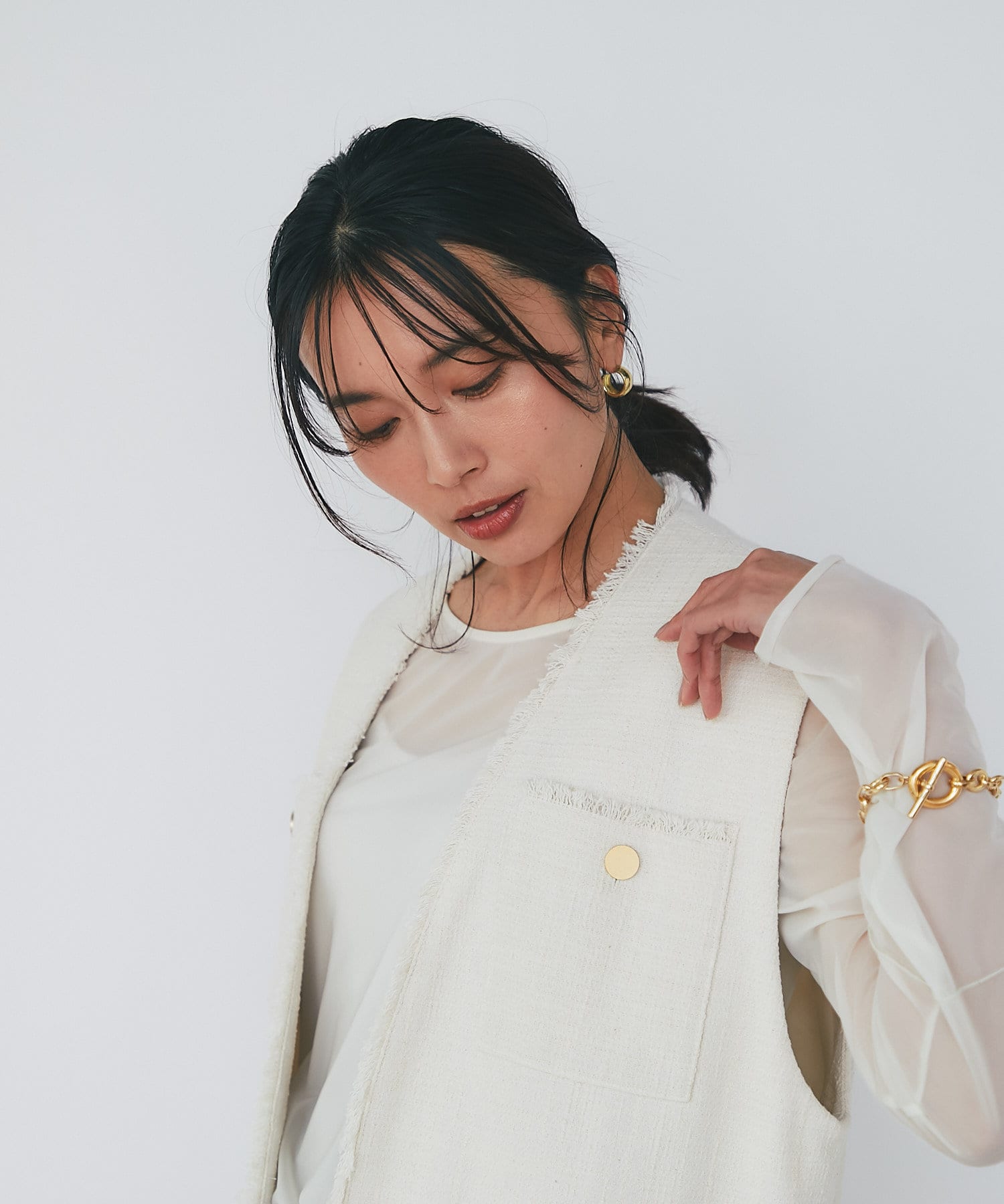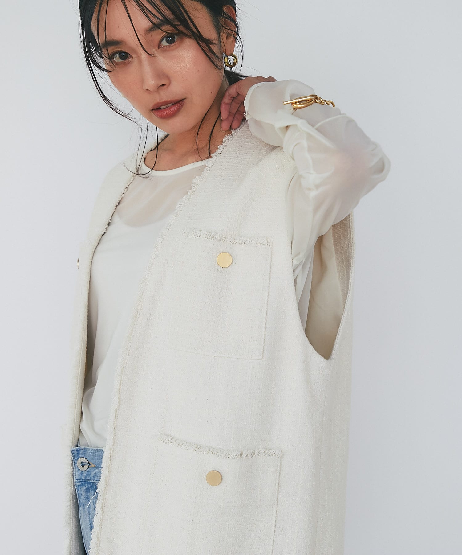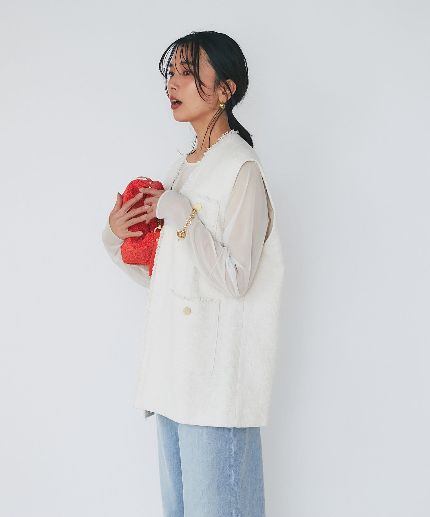 軽やかさのあるツイード生地を使用したツイードベスト。