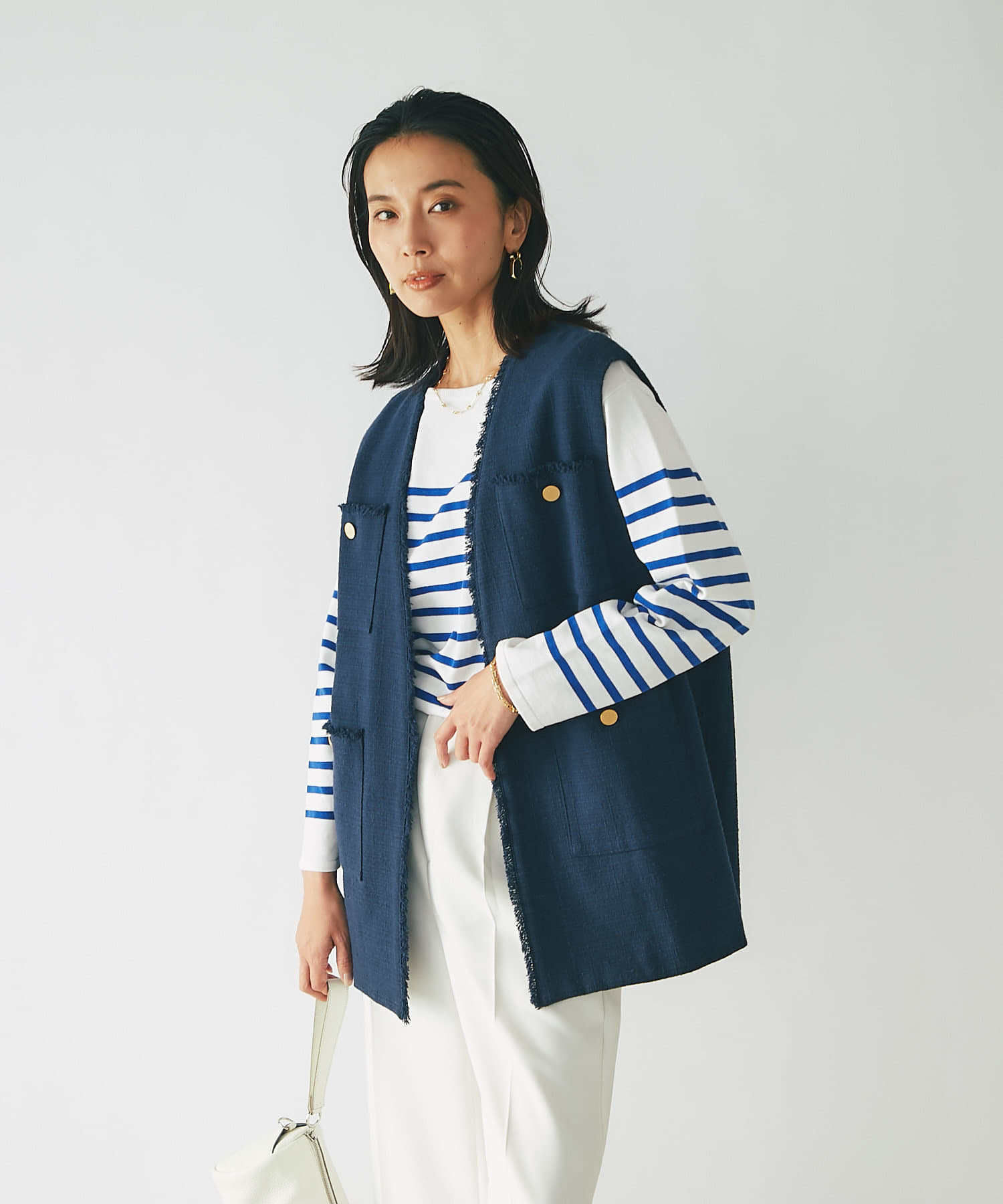 【1枚プラスでシンプルに華やぐ】ツイードベスト