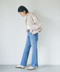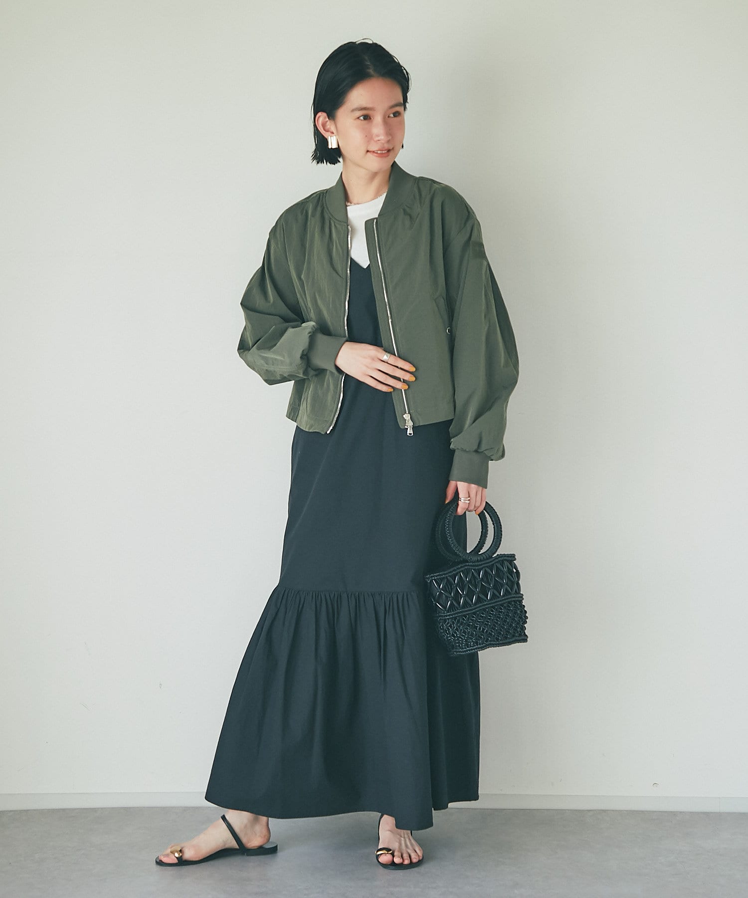 コンパクトな丈感は、エレガントなフレアスカートとも好相性。バランスがとりやすい丈感で小柄さんにもおすすめのアイテムです。