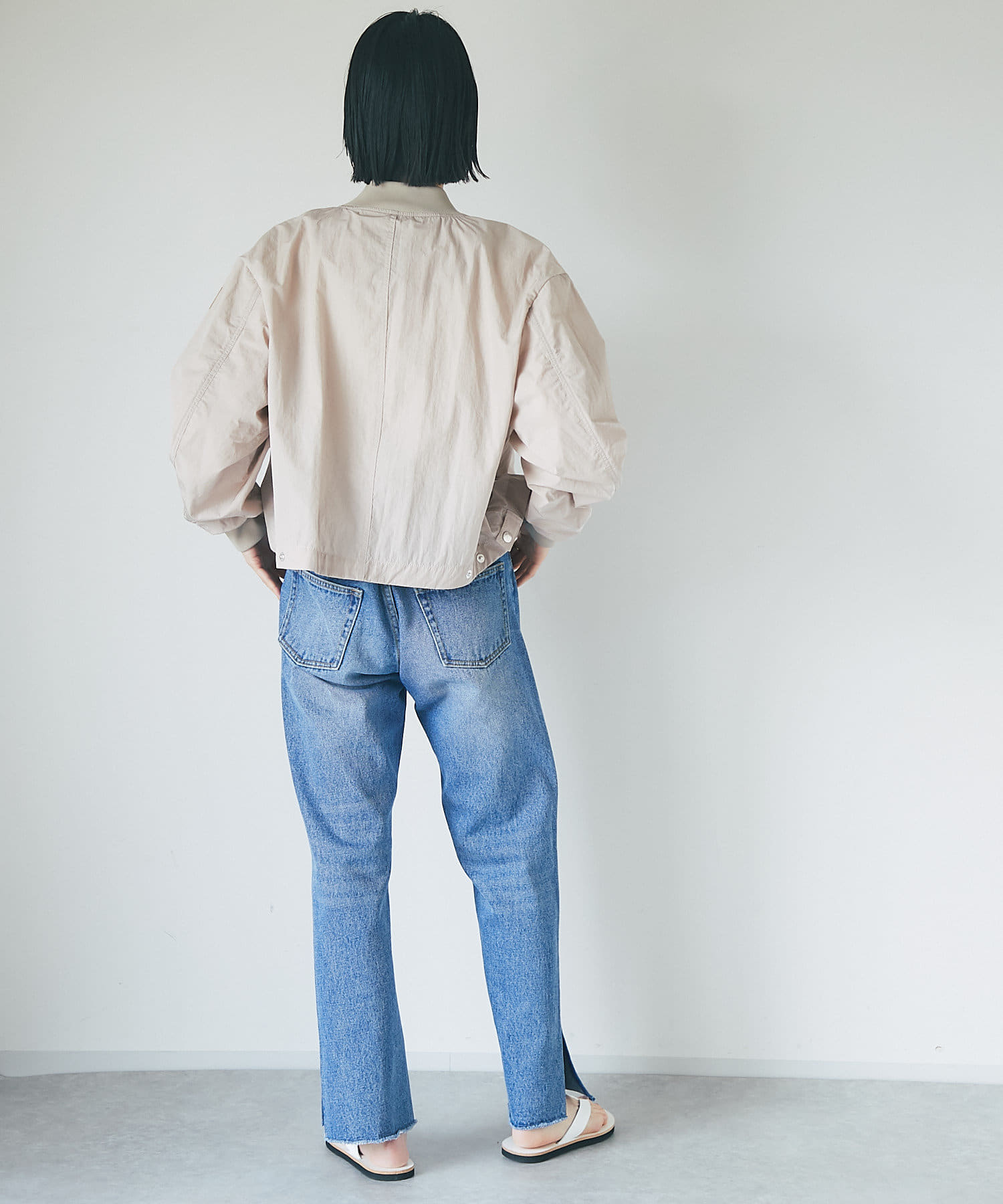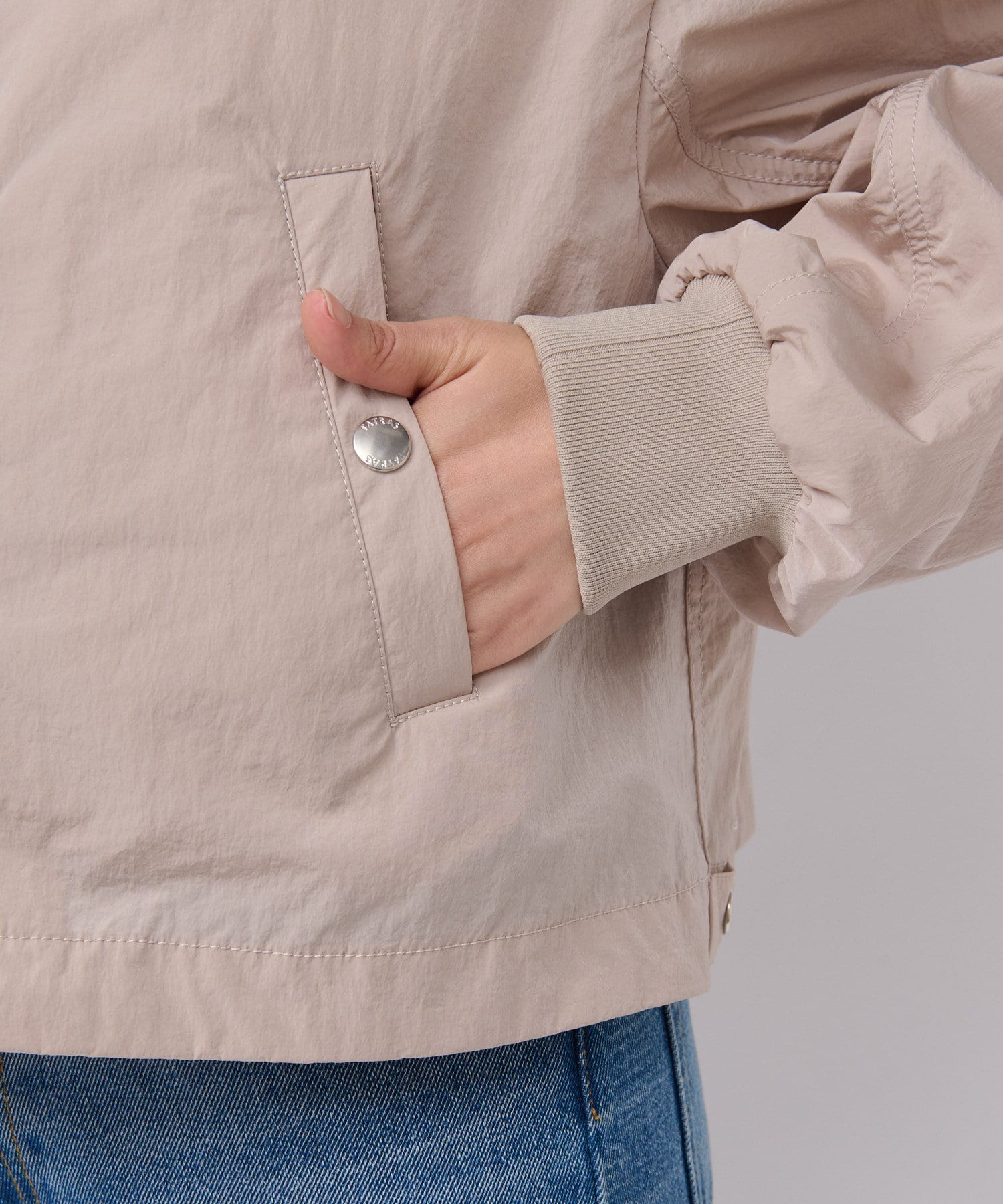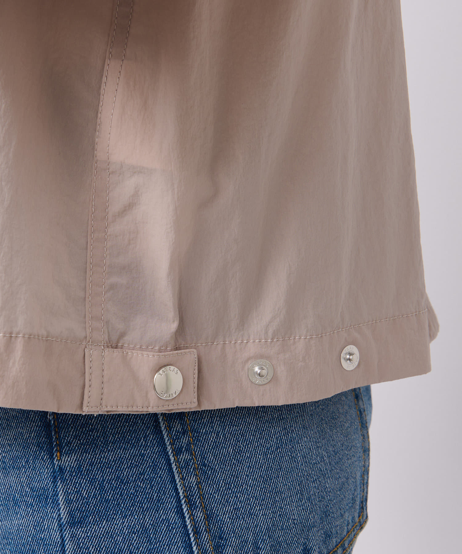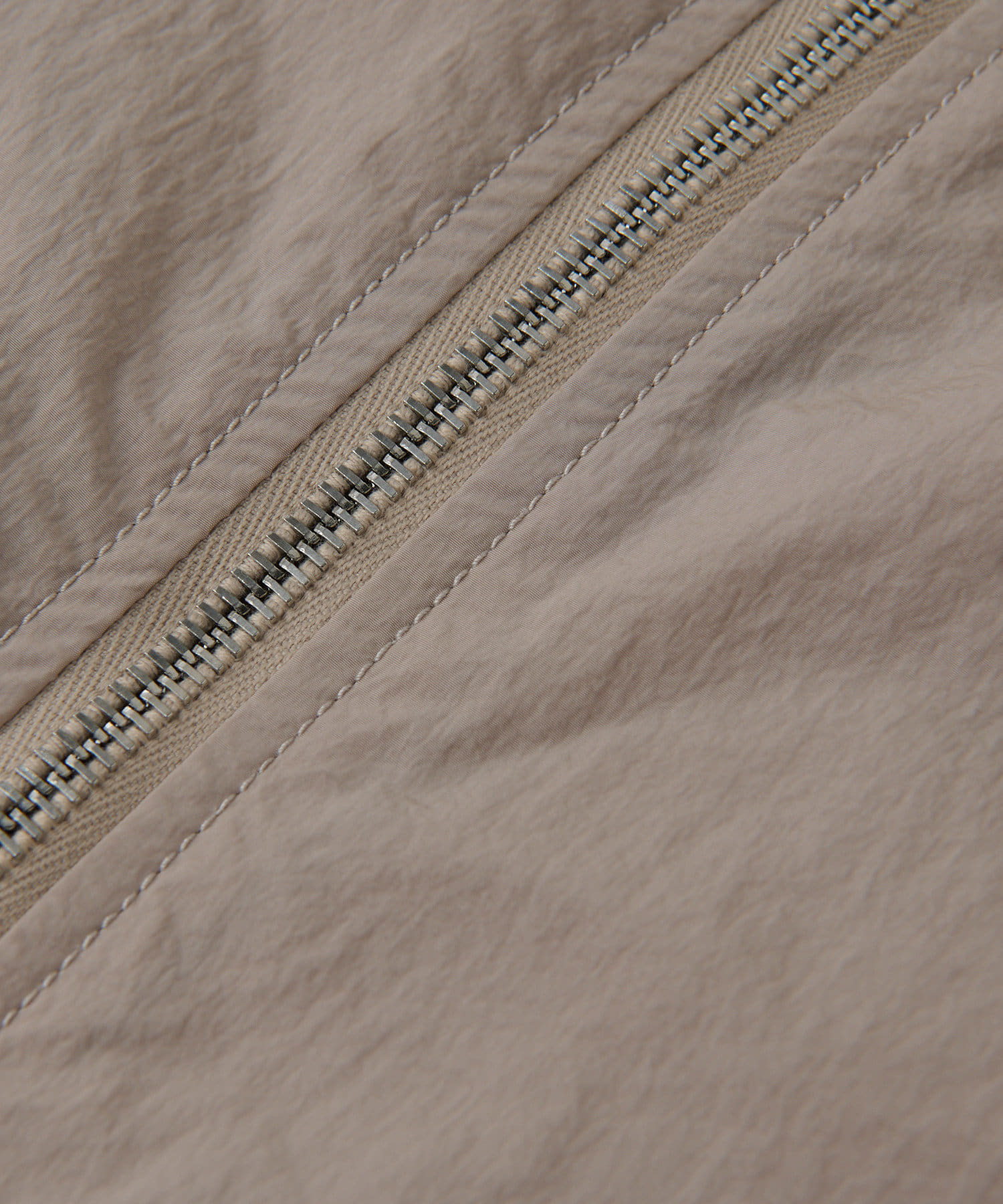 金属製のファスナーがさりげなくリュクスなムードを演出。裏無し仕様で春夏シーズンに重宝する軽い着心地の1枚は、撥水加工が施されており、デイリー使いにぴったりです。