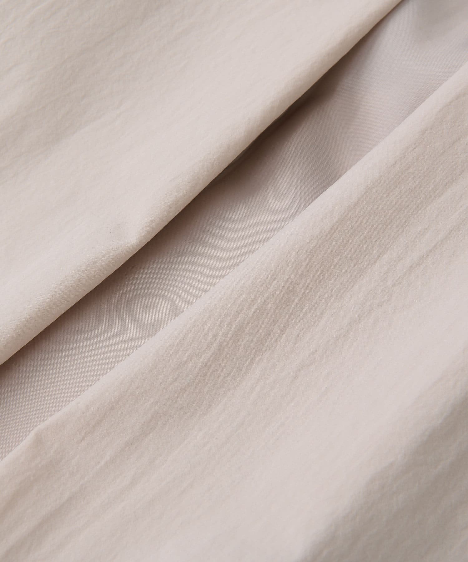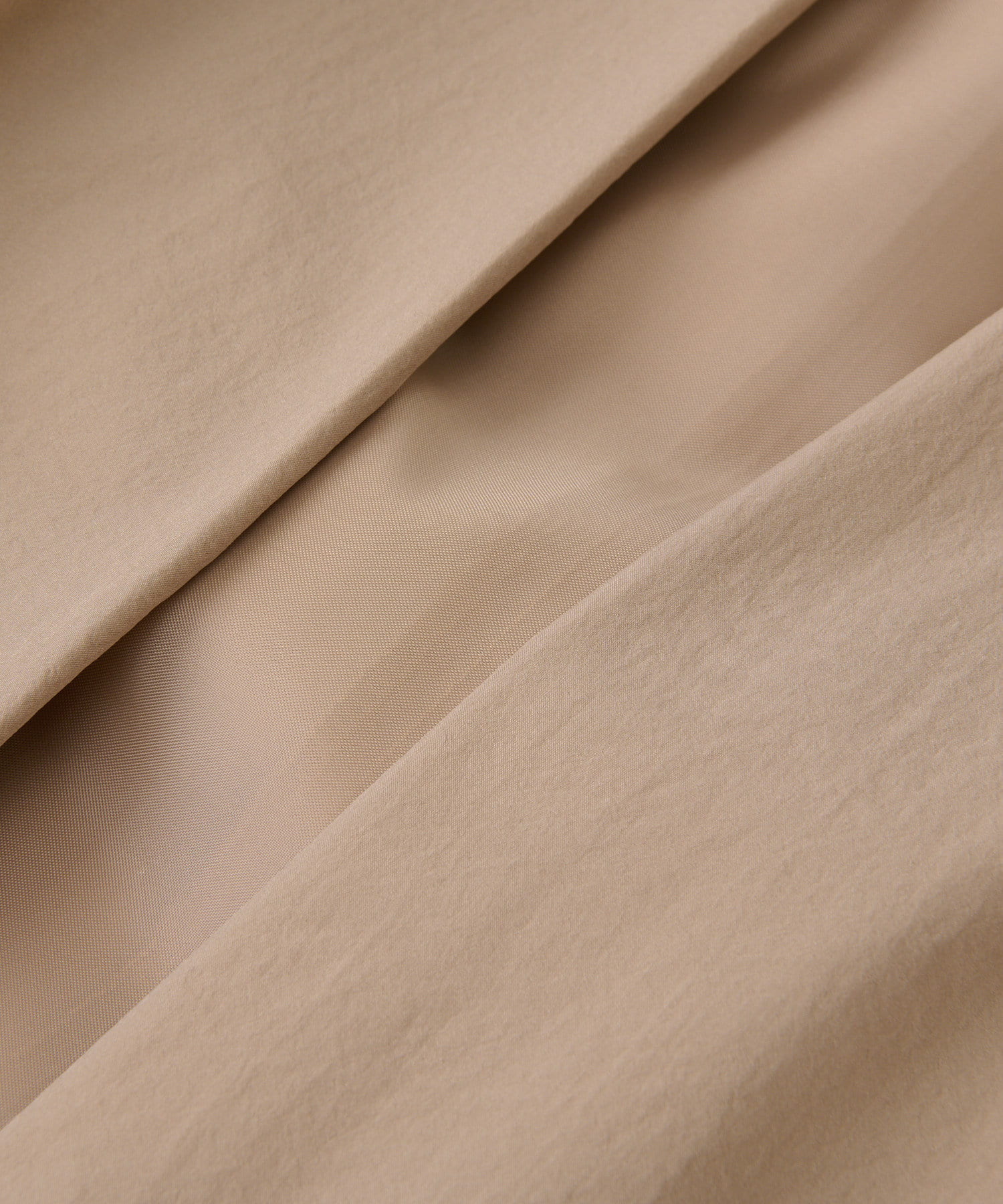 衿ぐりはタックを入れて高さを出し、シャープな印象。高密度かつ柔らかなポリエステル生地でお作りし、軽やかでさらりと着用して頂けます。
