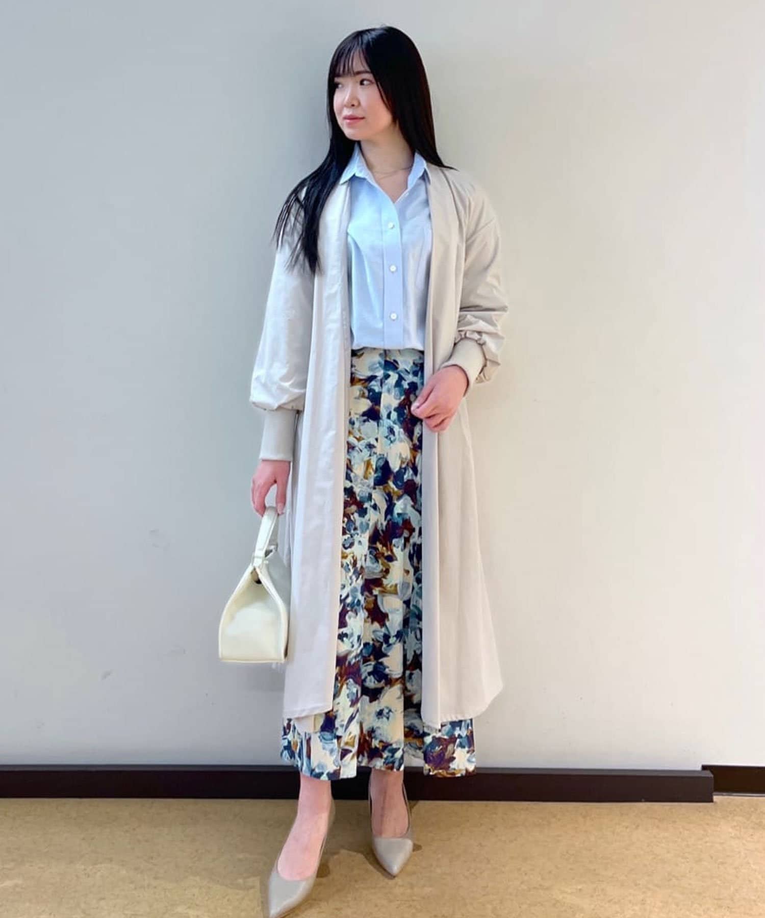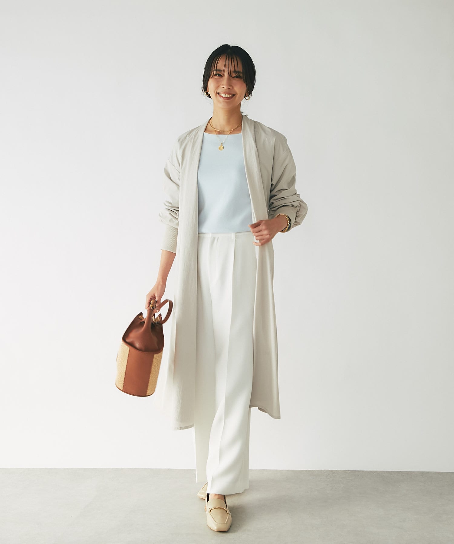 オフィスカジュアルなど綺麗めなシーンにはとろみブラウスや、コンパクトニットなどの上品素材で合わせて頂くとスマートな印象で着用して頂けます!
