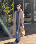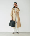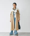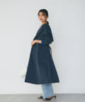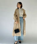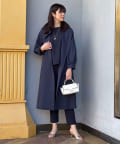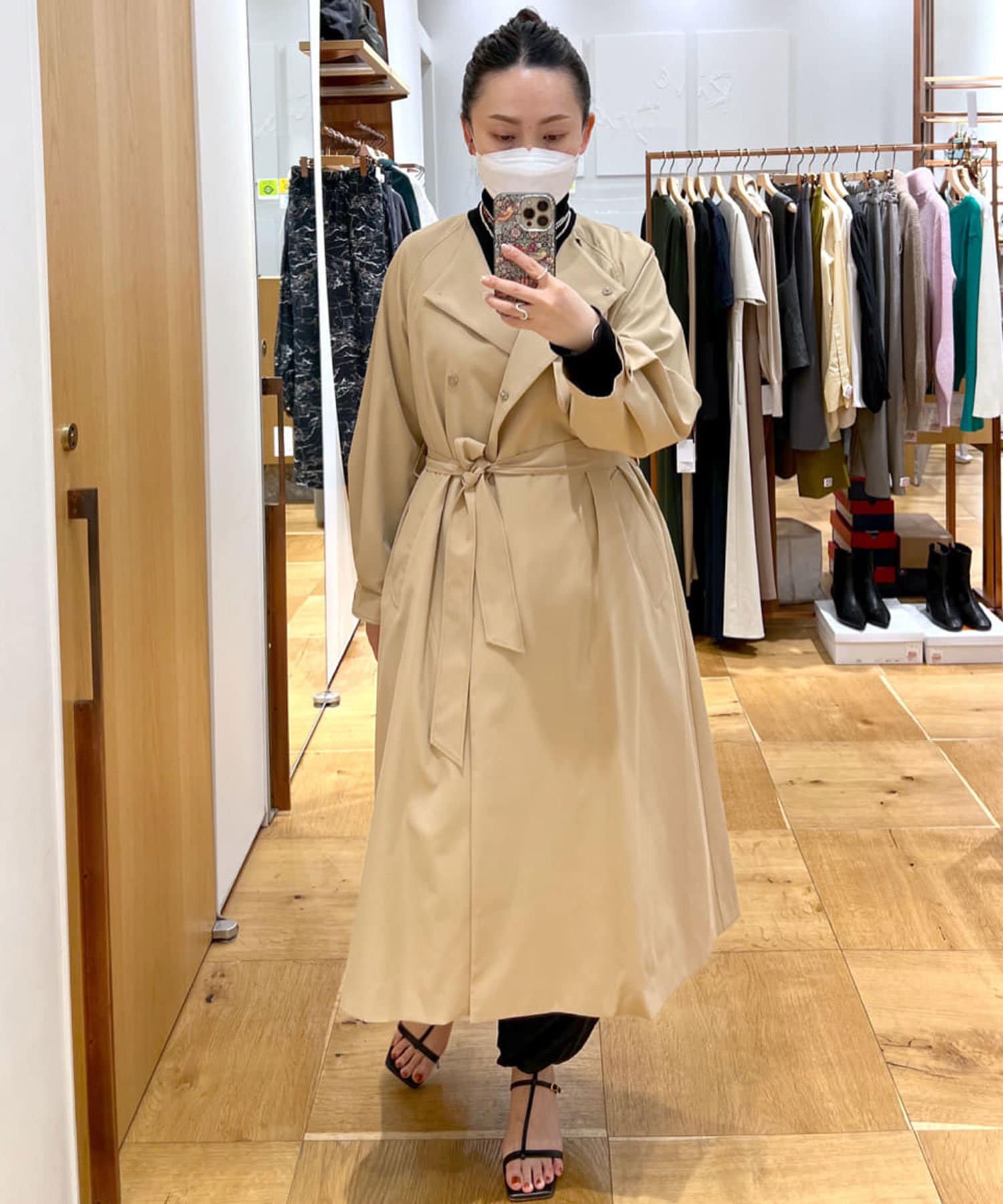 ⇒フロントボタンを閉じるとノーカラーコート、開けると襟付きコートのようなシルエットに変化するコート。胸元に切り返しのワンポイントがついていたりと、前を閉じてもきれいに着ていただけます。サッシュベルトでウエストマークをしてシルエットにメリハリをつけるのもおすすめです。
