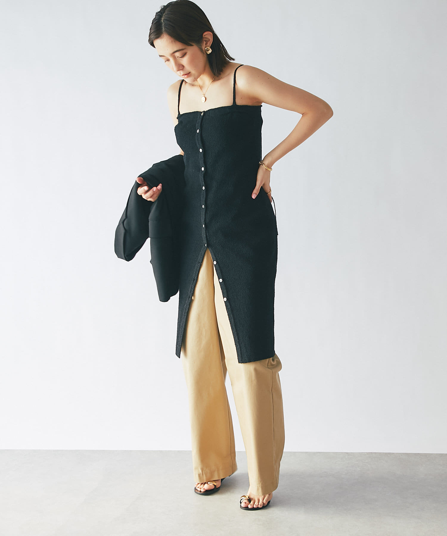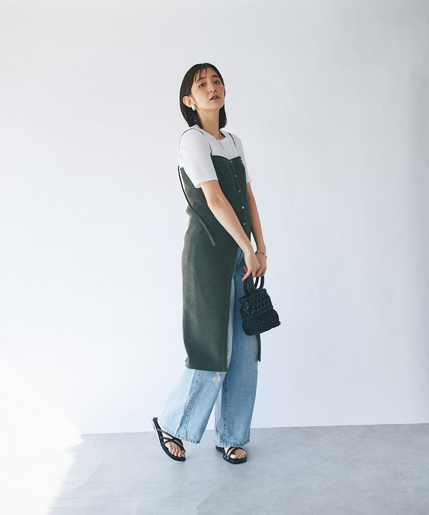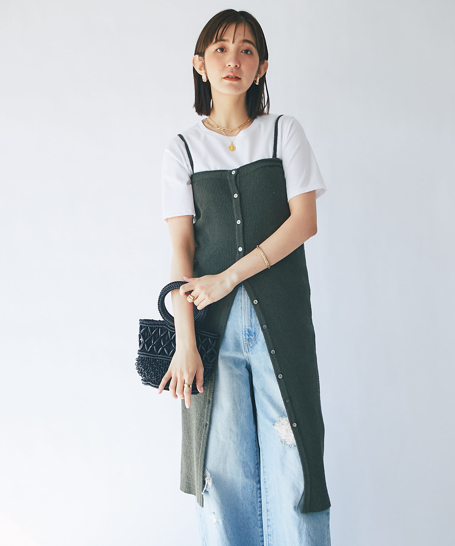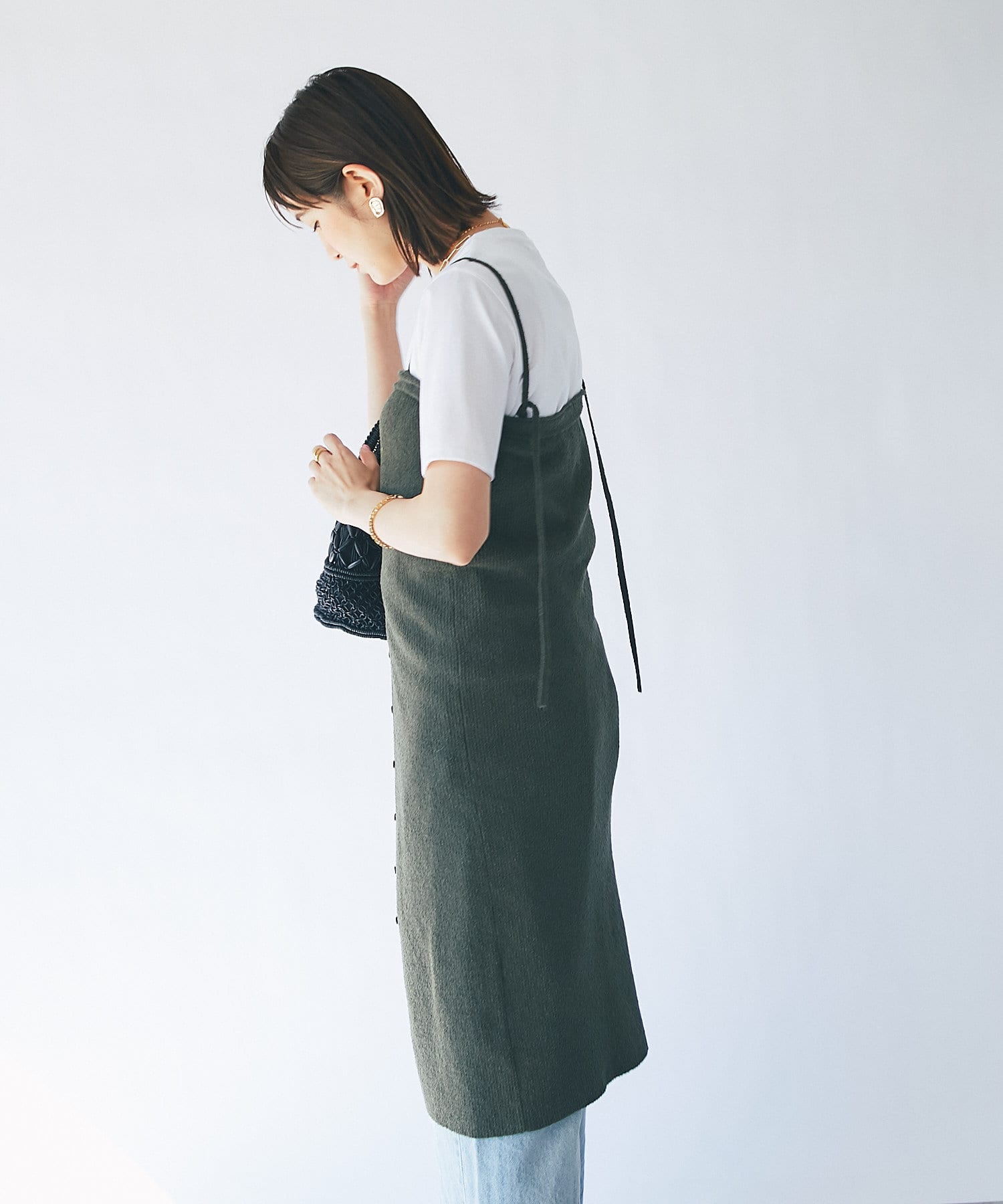 取り外しOKなストラップ付きで単品でキャミワンピースとして着るのも◎