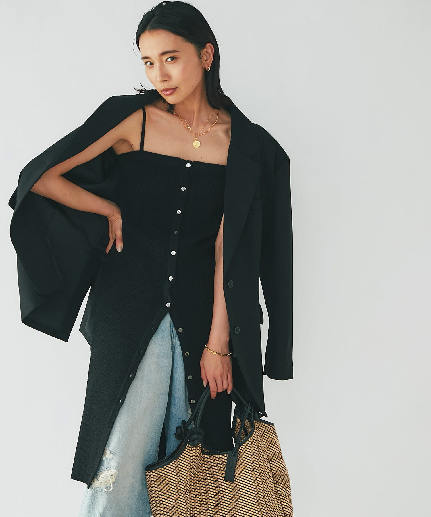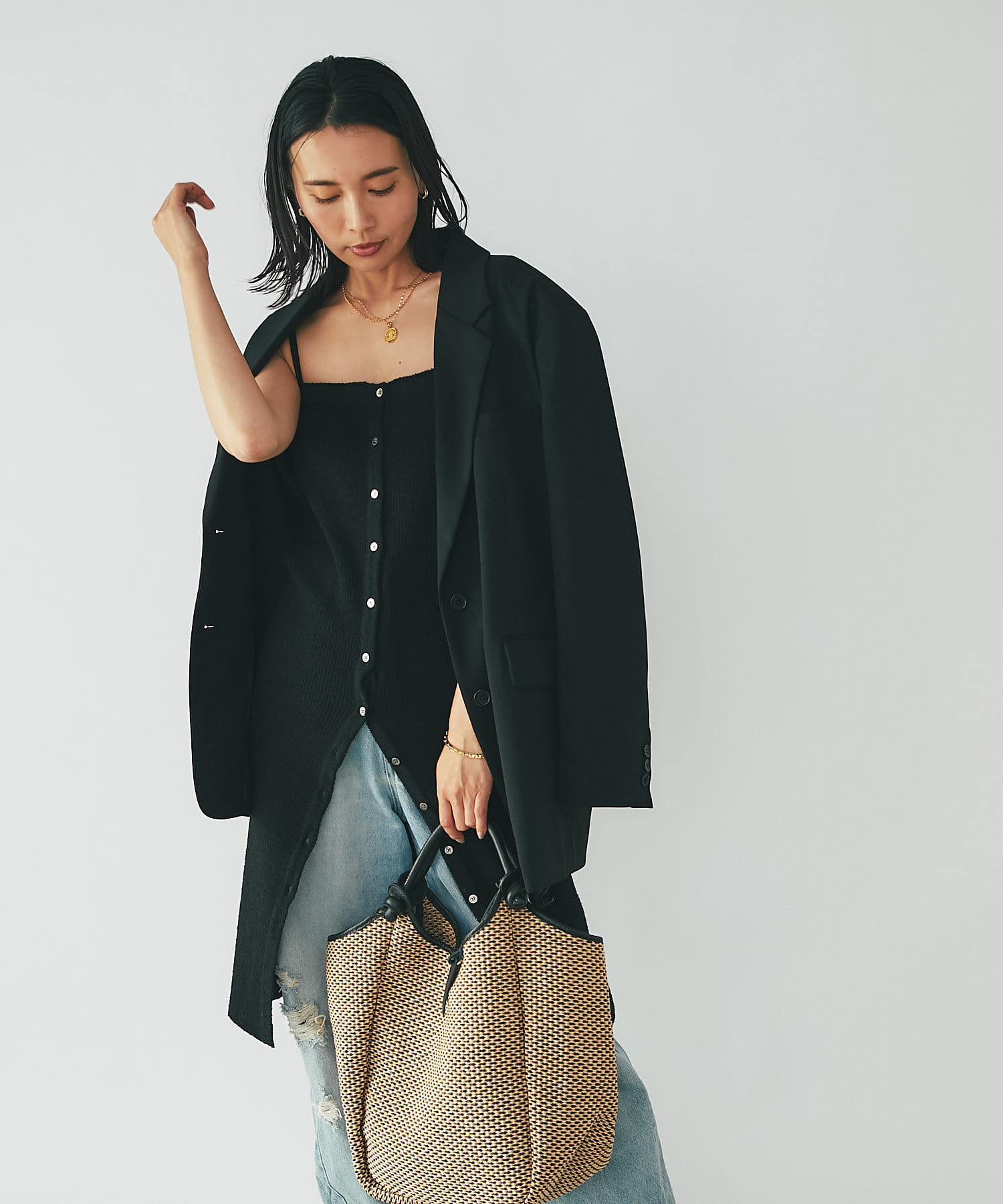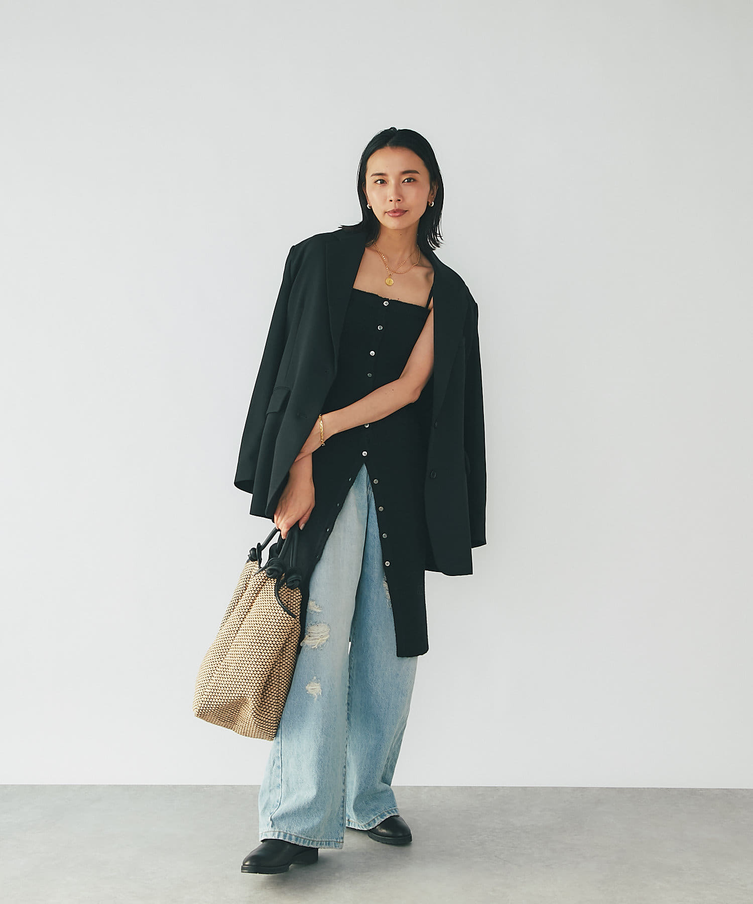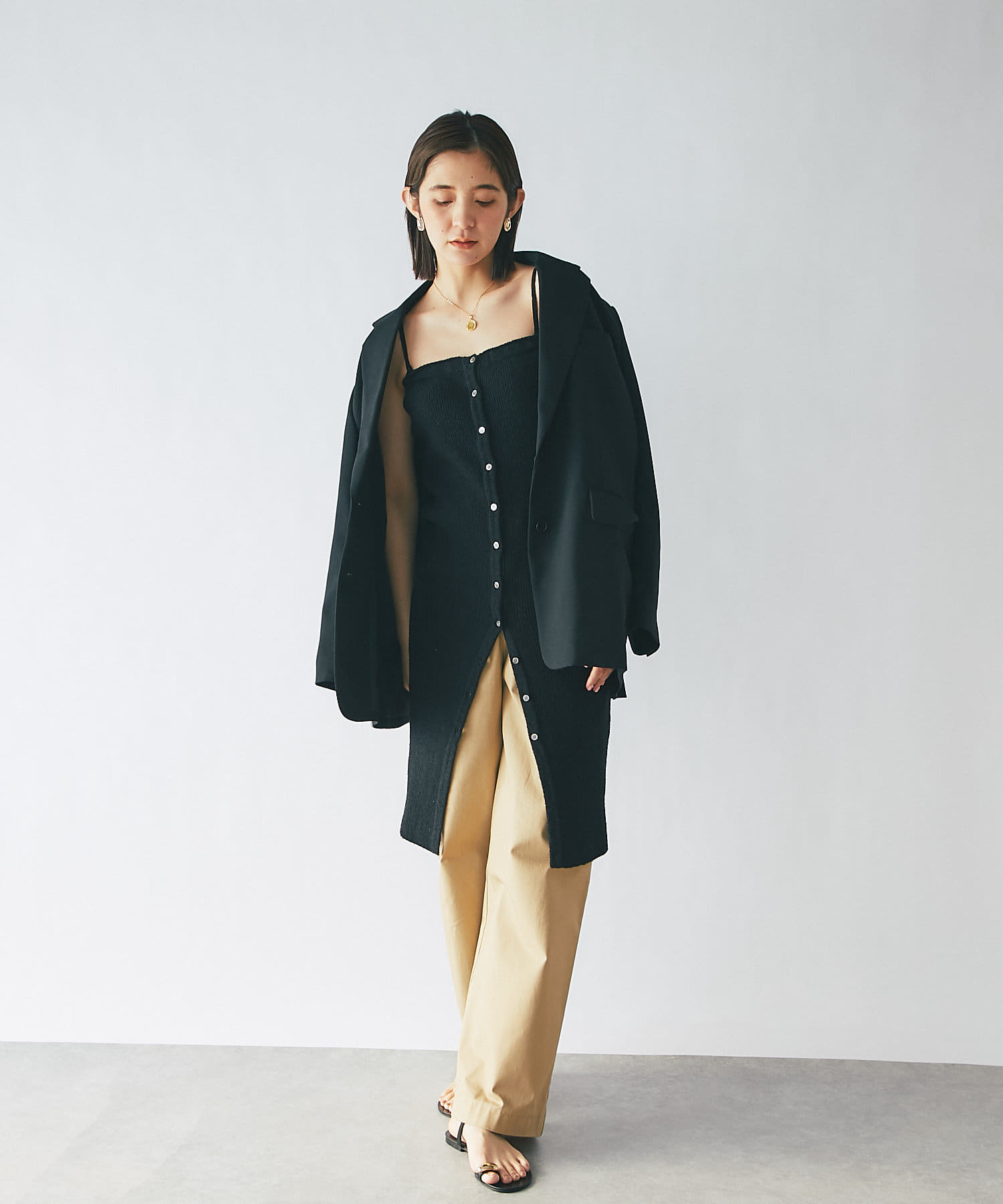 シアーなインナーと重ねた旬な着こなしや、シャツワンピースやオーバーサイズジャケットをバサッとラフに羽織ったフェミニンなスタイルも無理なく決まる1着です。