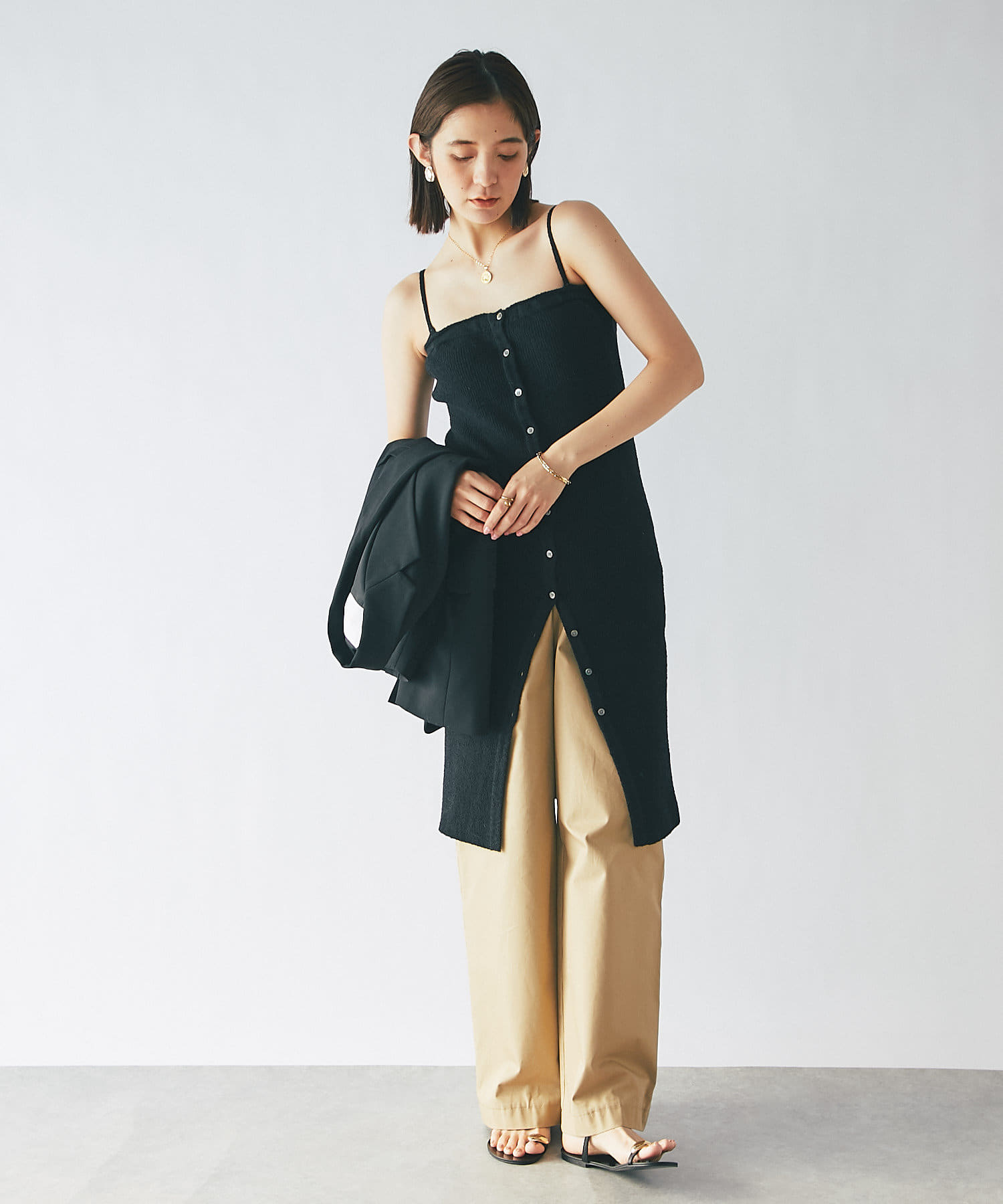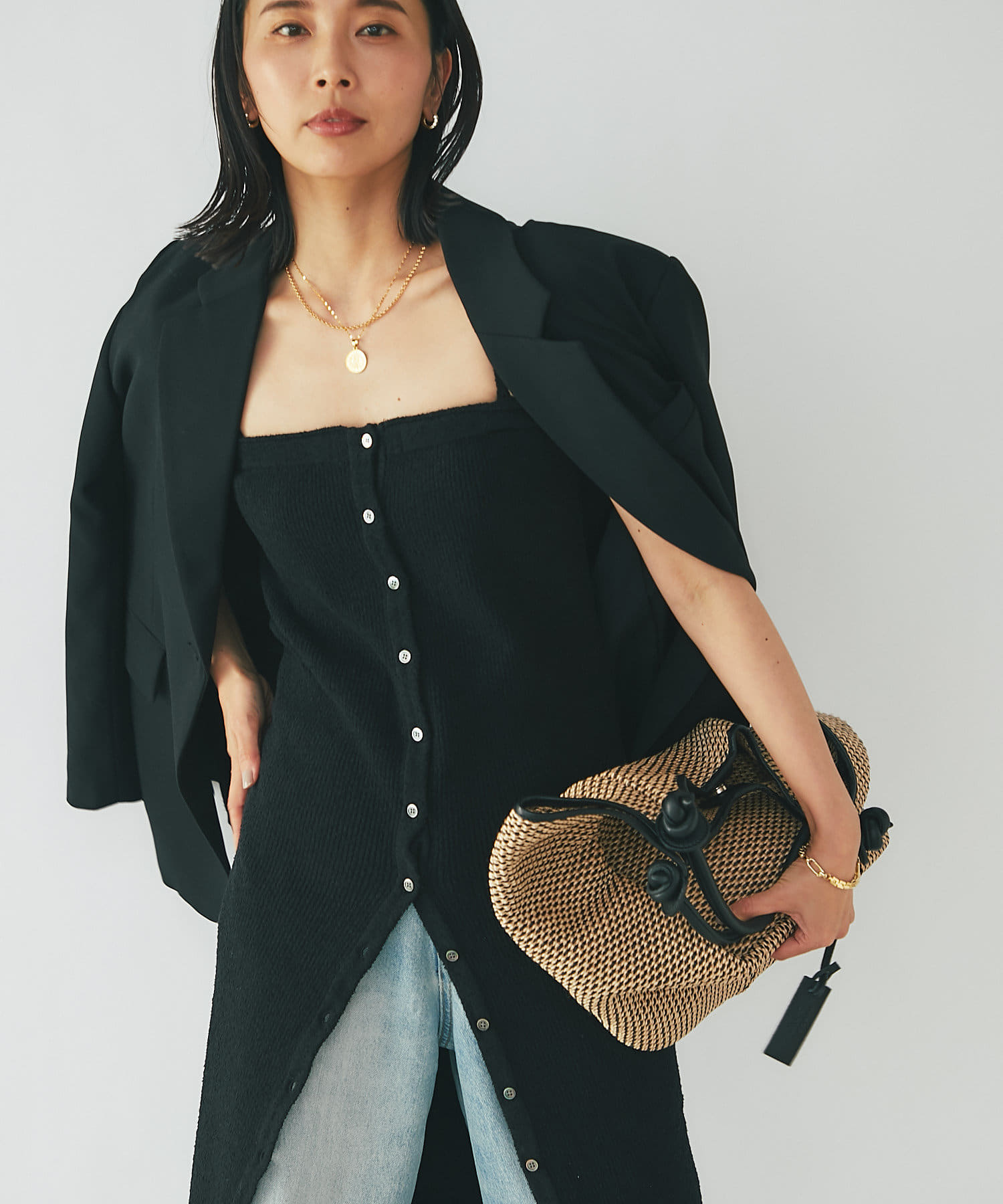 ニットならではのディティールとフロントボタンがアクセントになったトレンドアイテムです。 フロントはフルオープンなので、ボタンの開け閉めでヘルシーな肌見せも可能。様々なコーディネートが楽しめ、着こなしの幅を広げるアイテムとなっております。