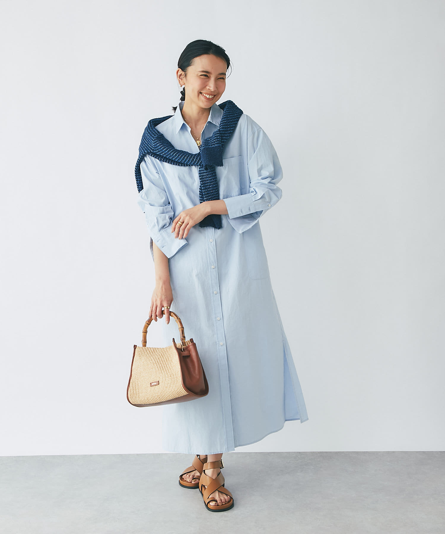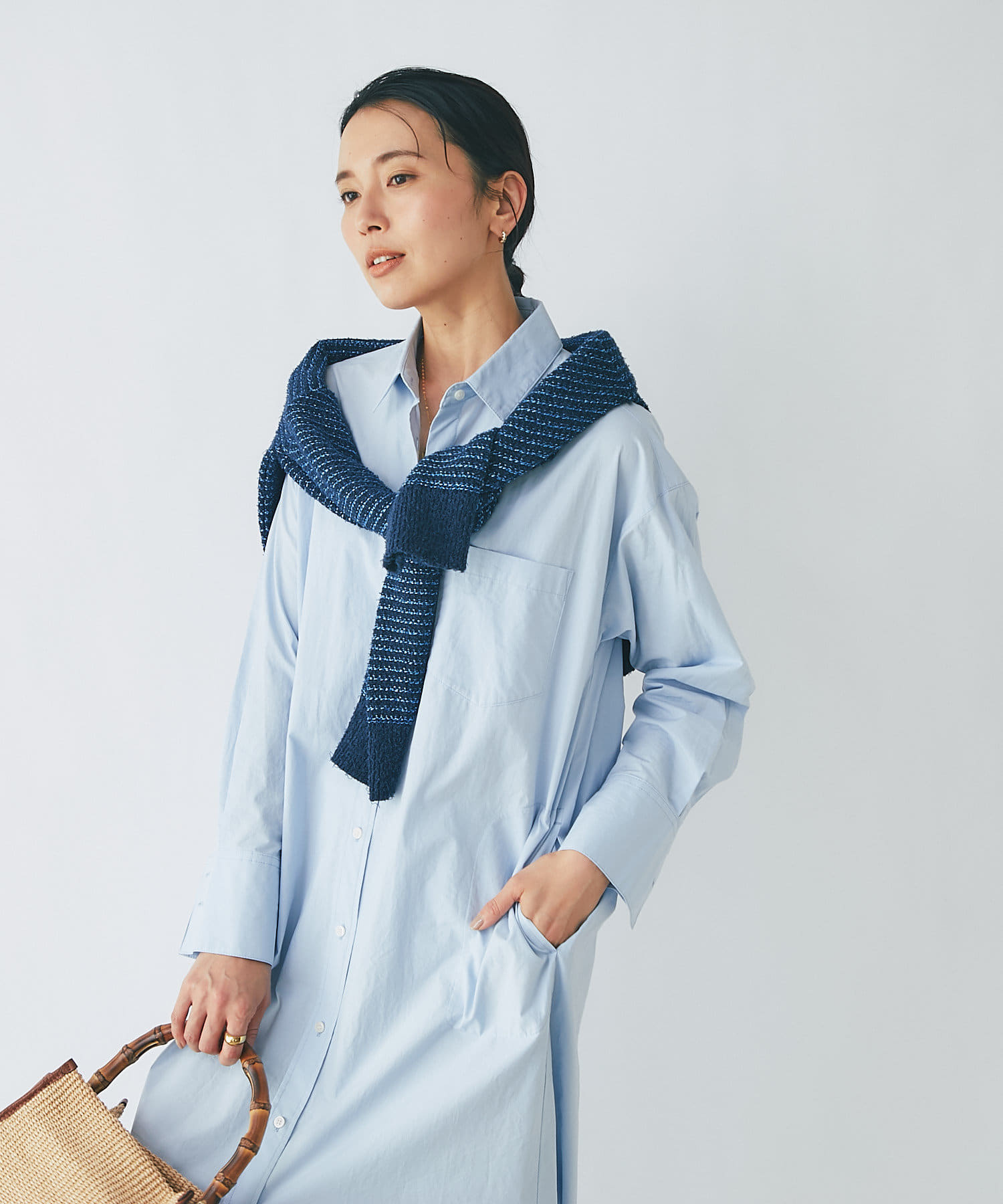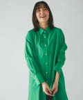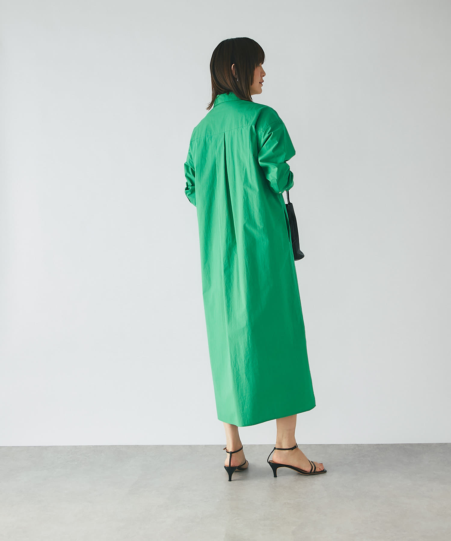 今季トレンドのグリーンとサックスが印象的なシャツワンピース。