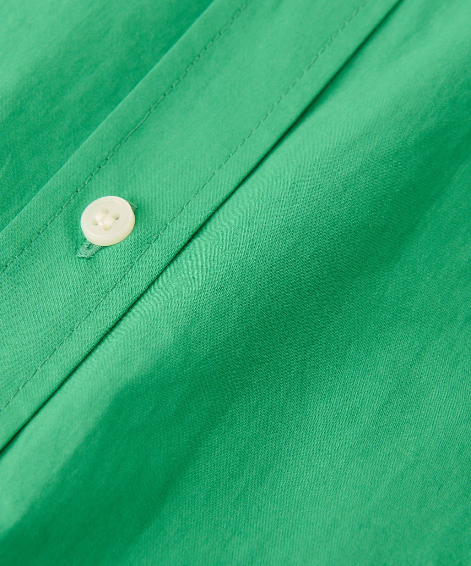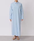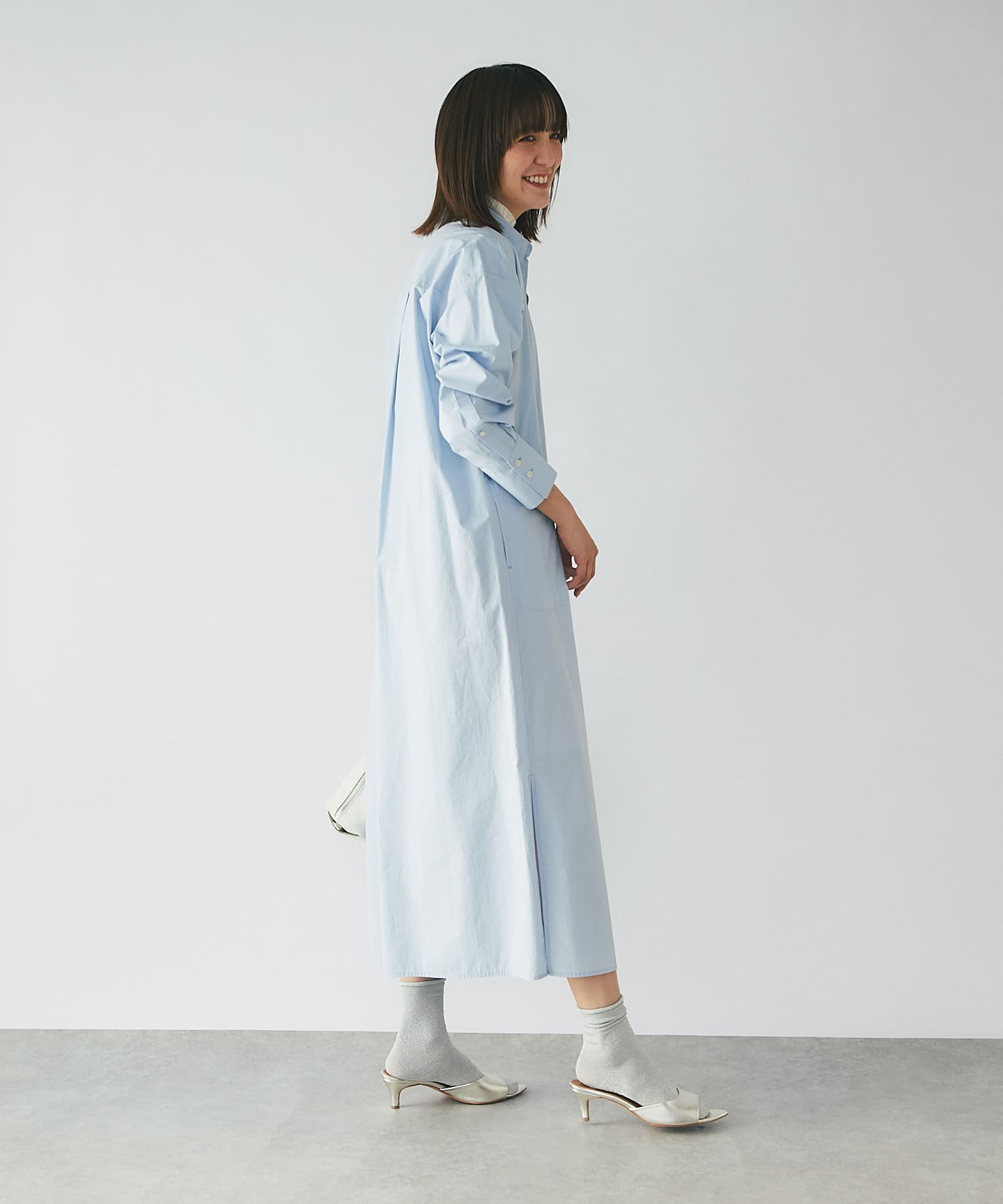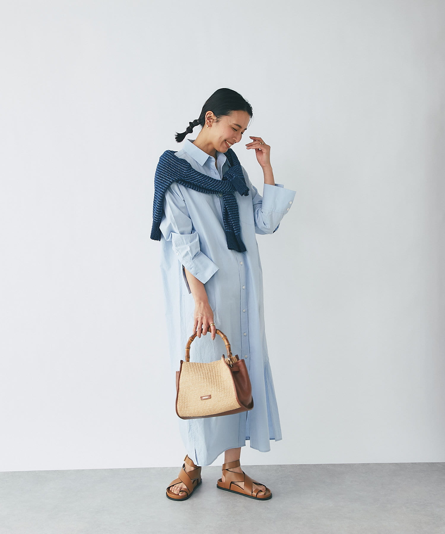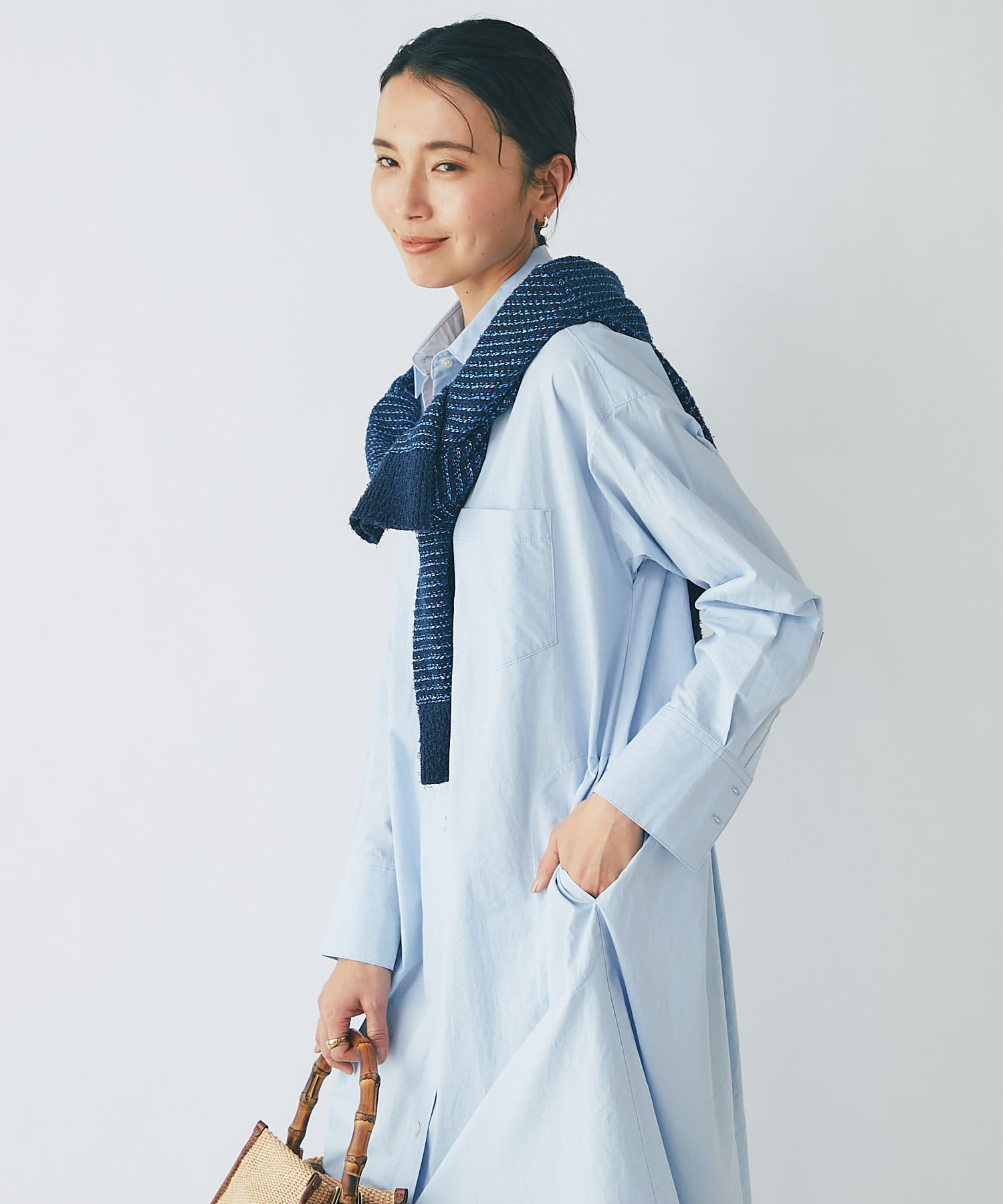 今季トレンドのグリーンとサックスが印象的なシャツワンピース。