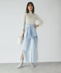 ⇒155cmのスタッフがヒールなしの状態で着用して、地面につかない程度の丈感となっています。小柄な方はヒールの着用やウエストマークしていただくと安心して着ていただけます。サイドにスリットが入っているためマキシ丈でも軽やかな雰囲気のあるアイテムです。