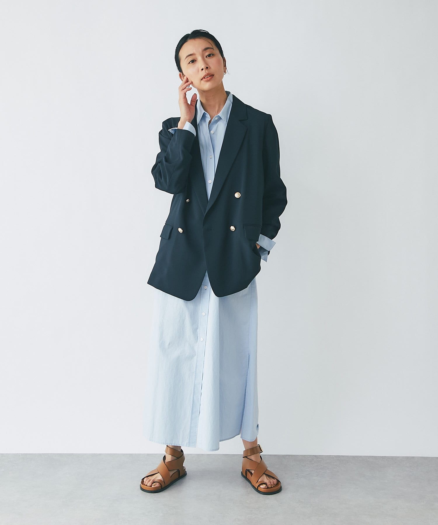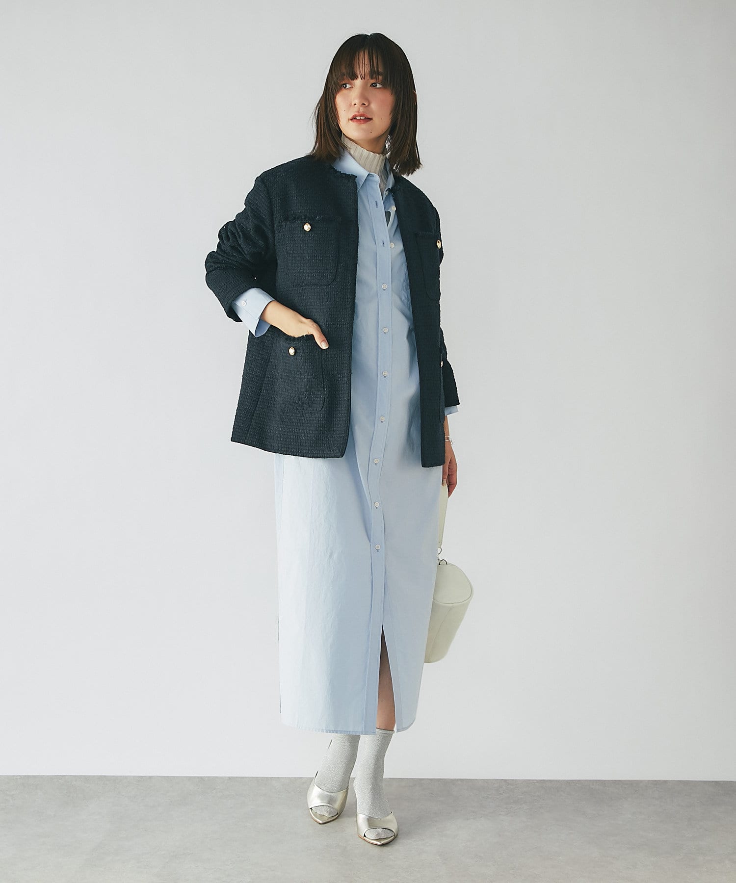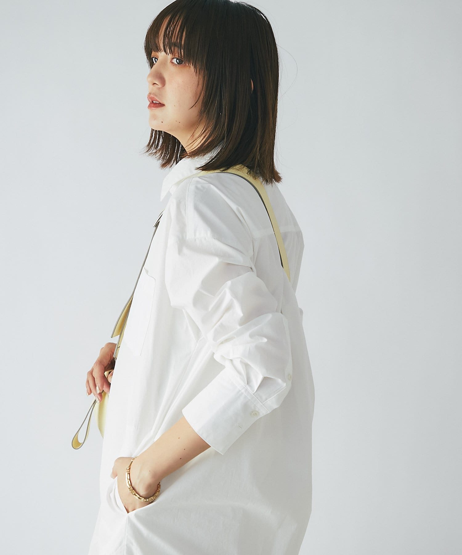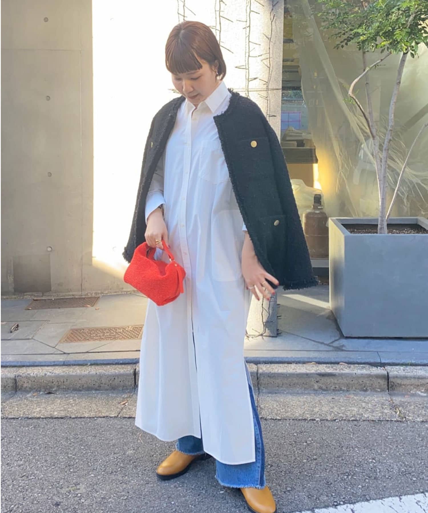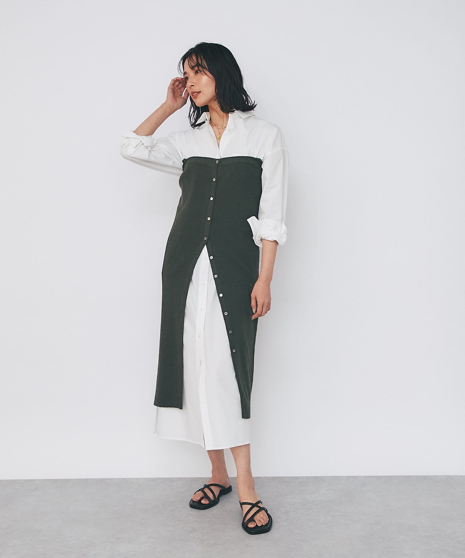 ロング丈を生かしバスト下のボタンをざっくり開けて着こなせば、今季らしいヘルシーなレイヤードLOOKが手に入ります。