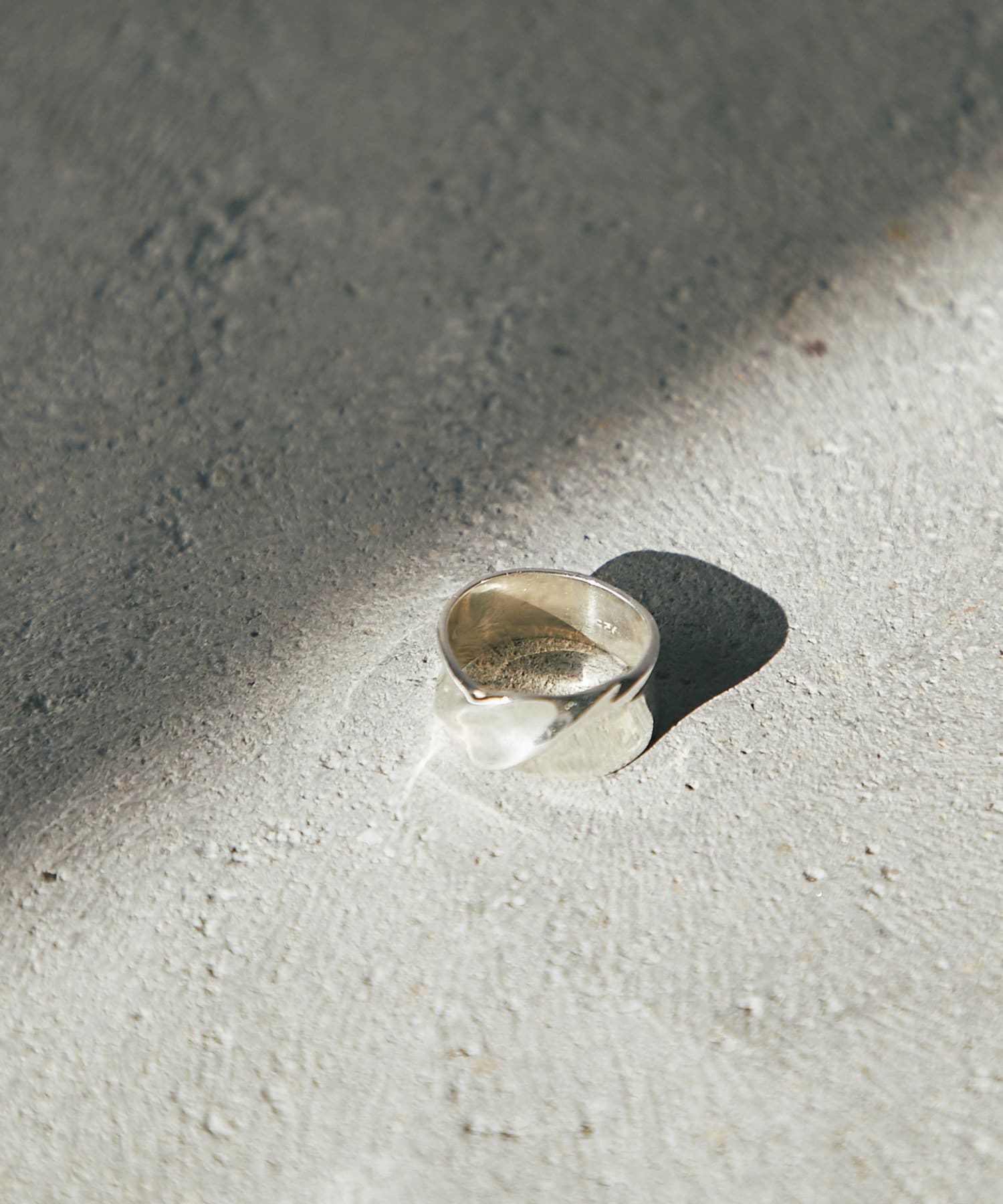 ワイドなツイストが手元で存在感を放つシルバーリング。