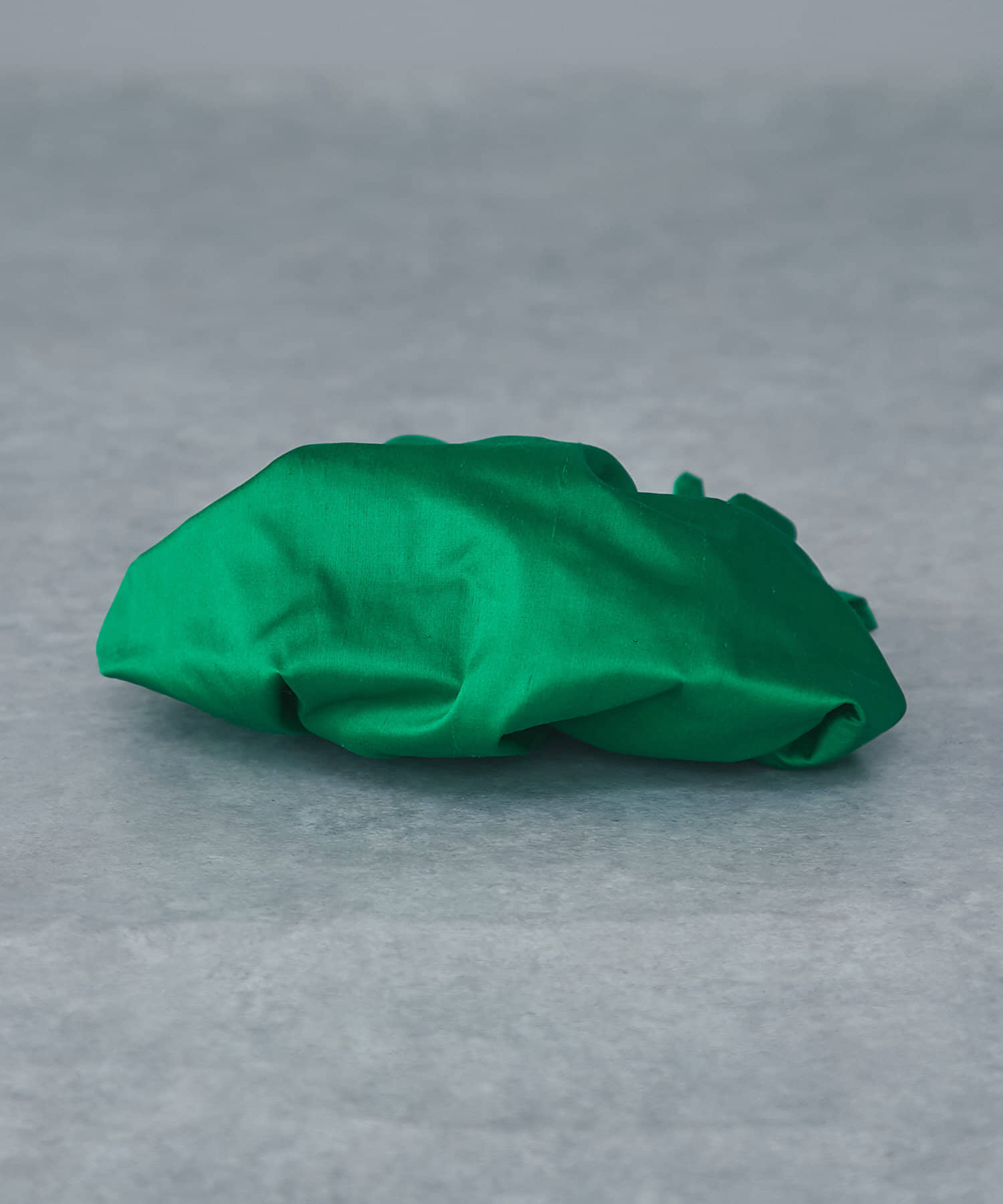 インドの伝統的な織物であるシルクシャンタンの生地を使用し、独特の鈍い光沢感とタテヨコで色を変えたシャンブレーで色の立体感が魅力。