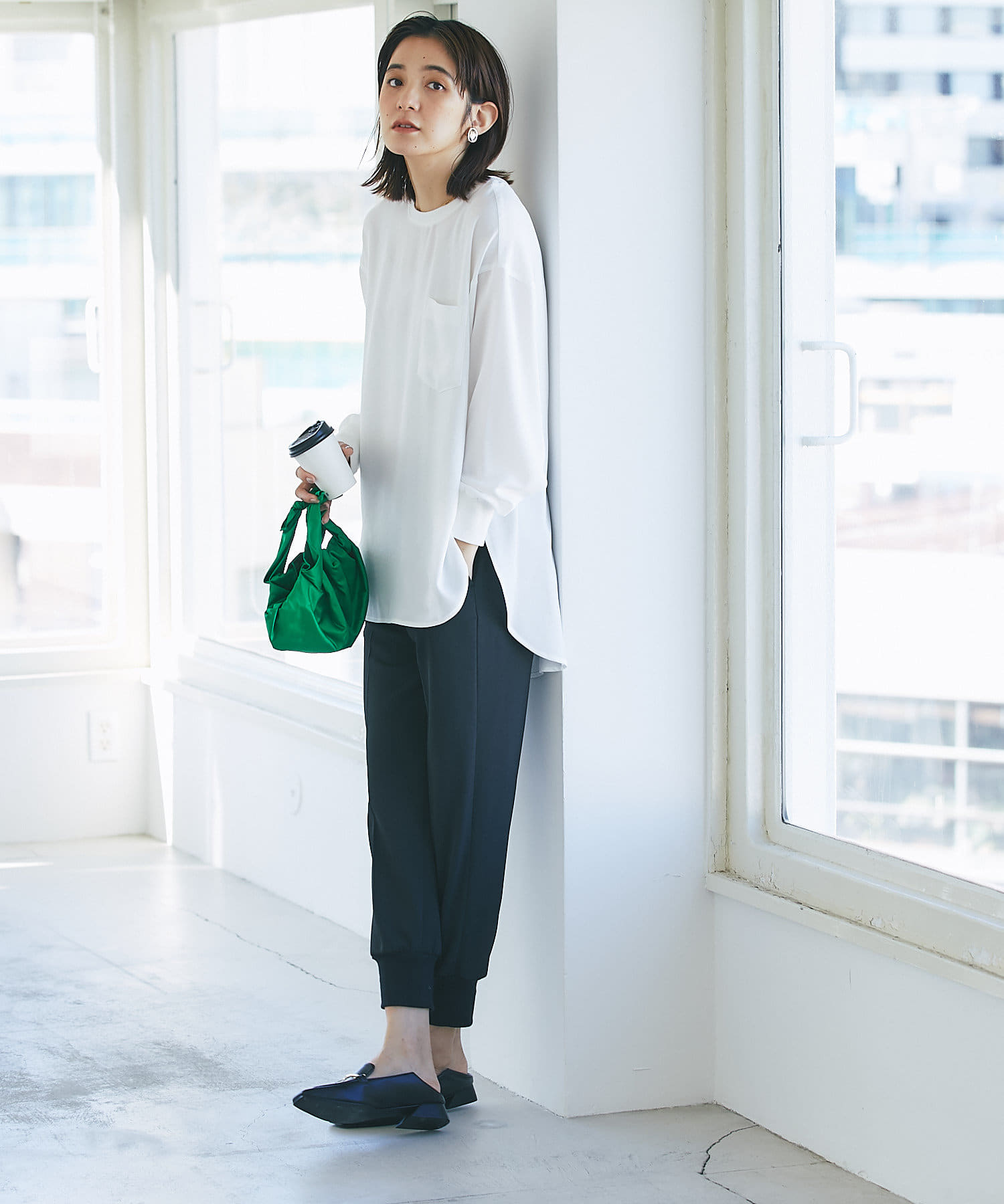 • 鮮やかなグリーンがスタイリングのアクセントに。