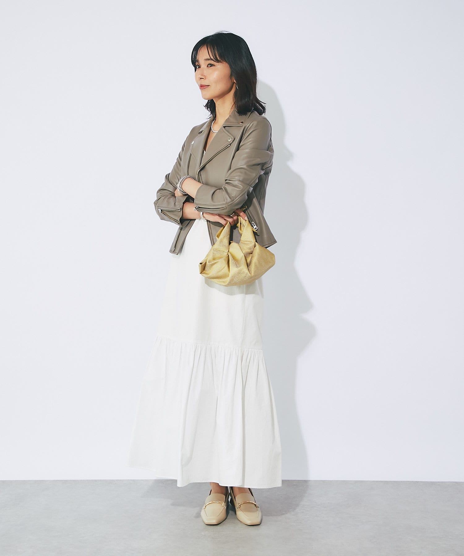コーディネートのアクセントにもなり、バッグの内側のマグネットボタンで形状をキレイに保ちながら持つことができます。