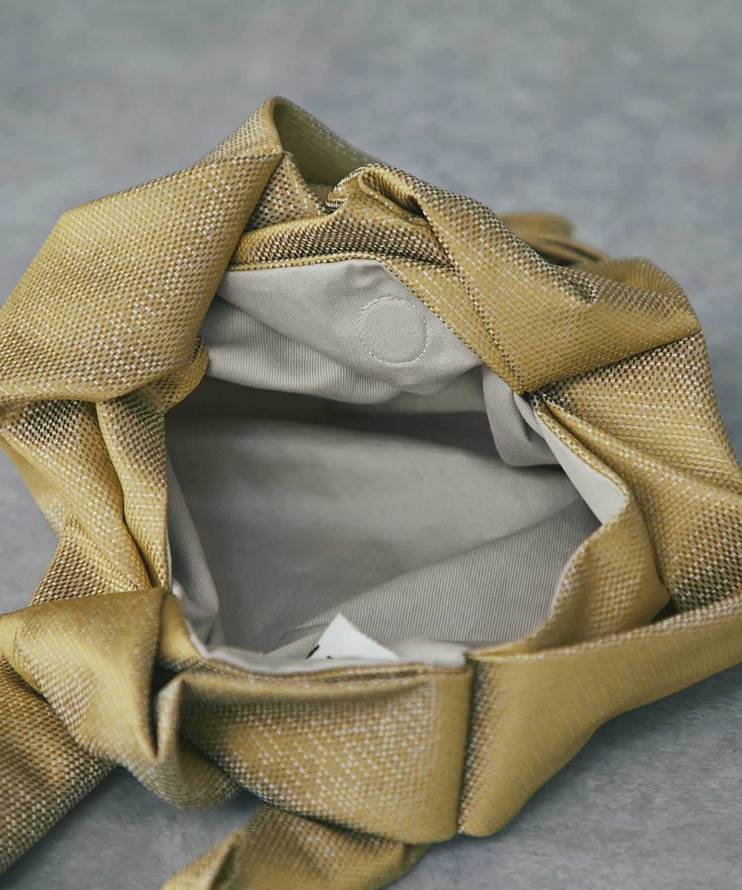 山梨県西桂町で長年、ネクタイのテキスタイルづくりを中心に行っている工房で生産し、世界で最も美しいとされるブラタシルクを使っているため、生地表面がクリアで光沢感が大変美しいアイテムです。