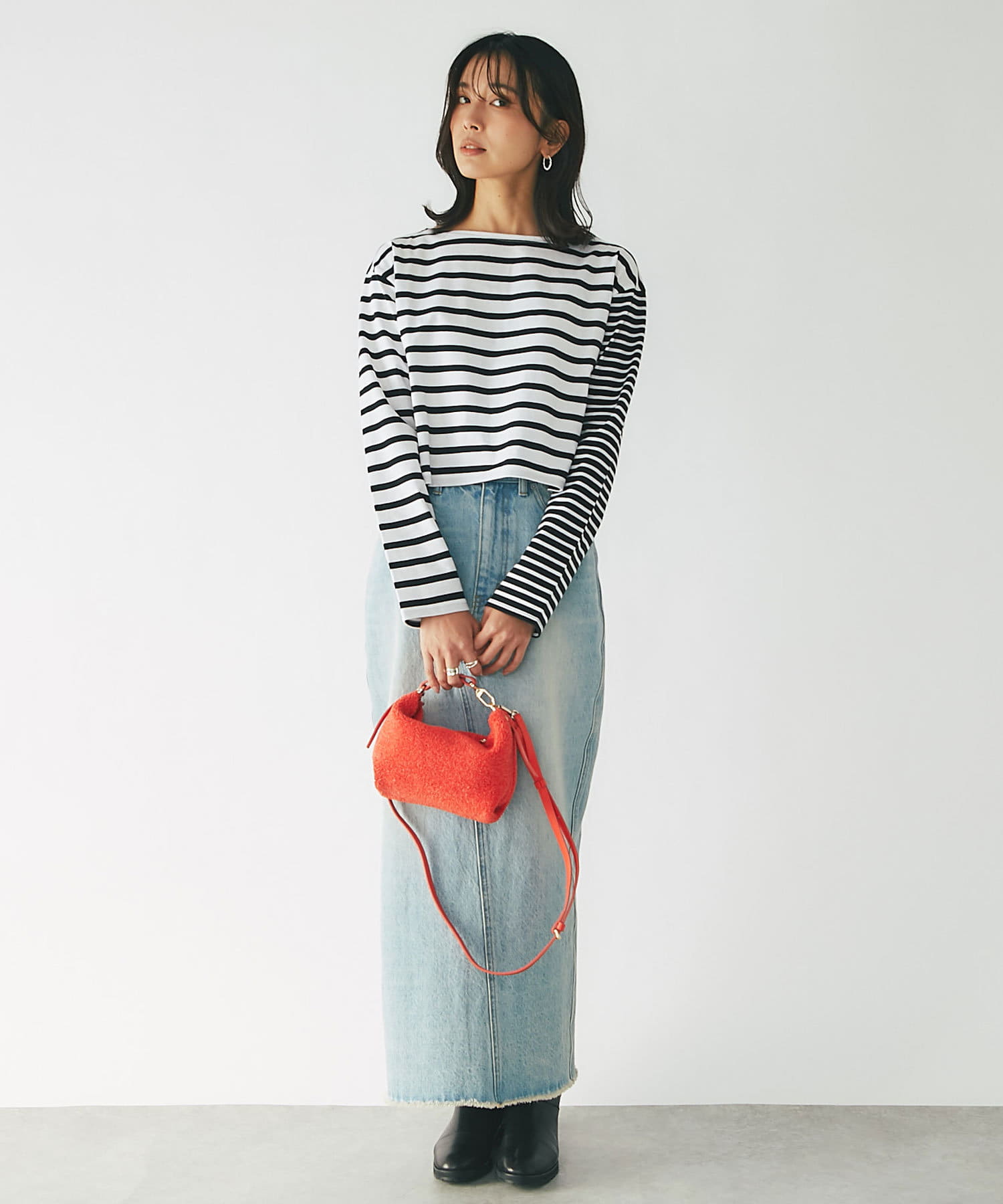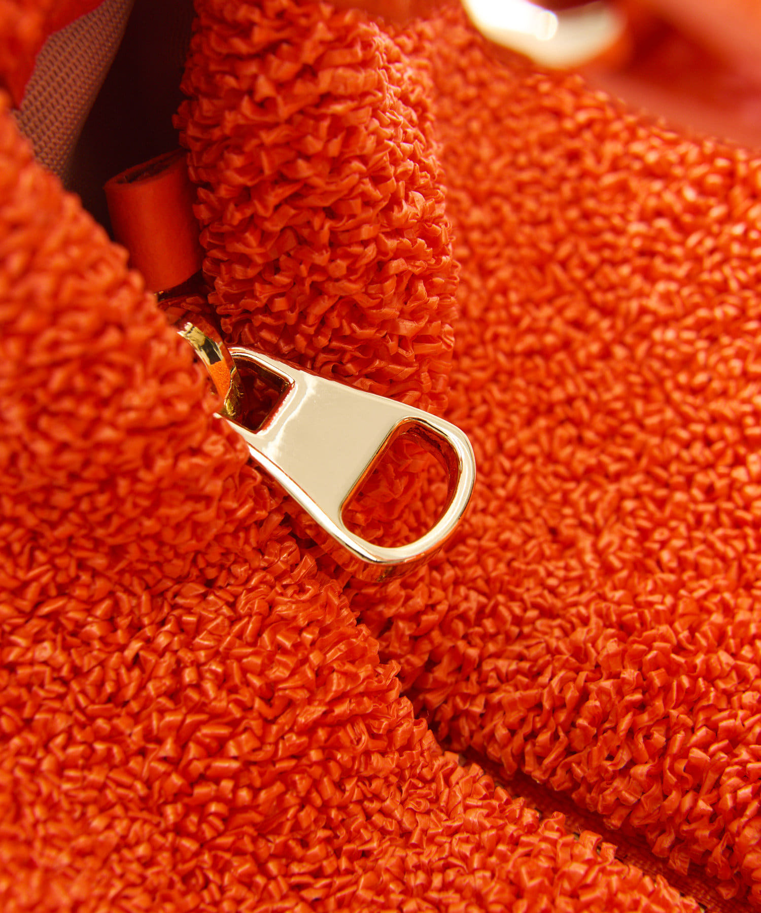 コロンとしたサイズ感と鮮やかなオレンジカラーがコーディネートのポイントになる軽やかなミニカラーバッグ。