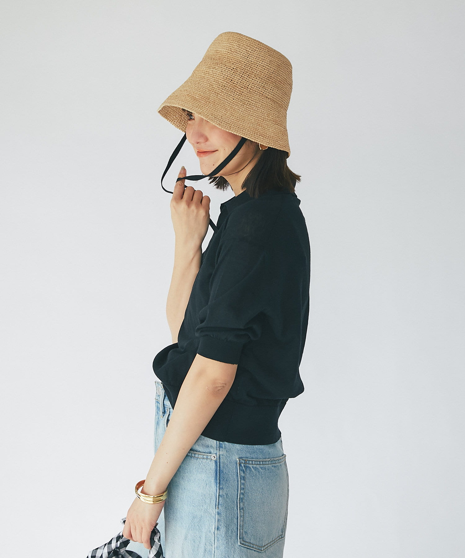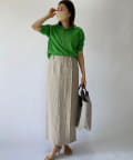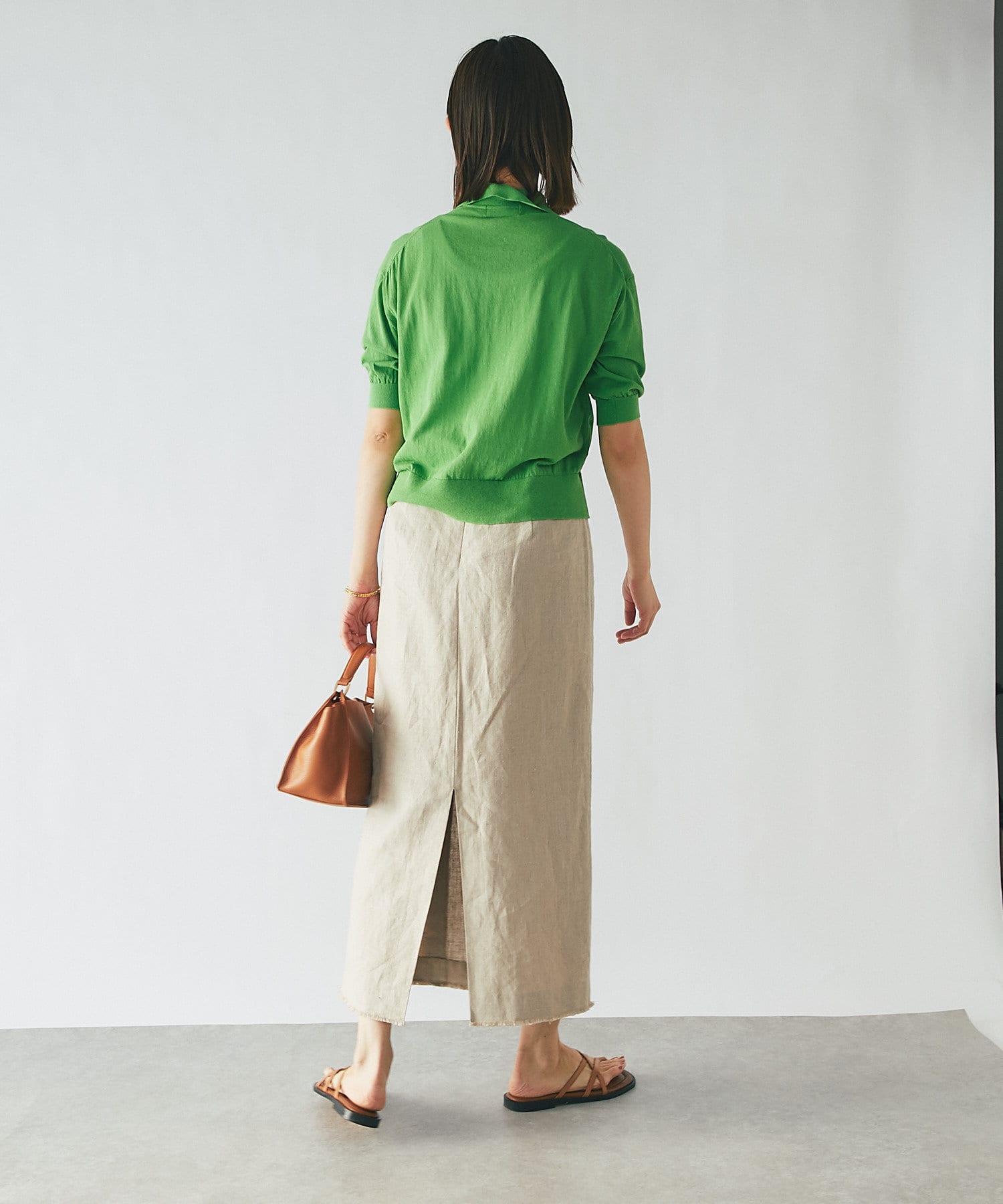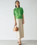 コットンのような風合いですが麻が入っているので、さらっとしていて肌離れもよく、抜け感のある大人っぽい雰囲気が◎。
