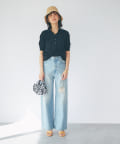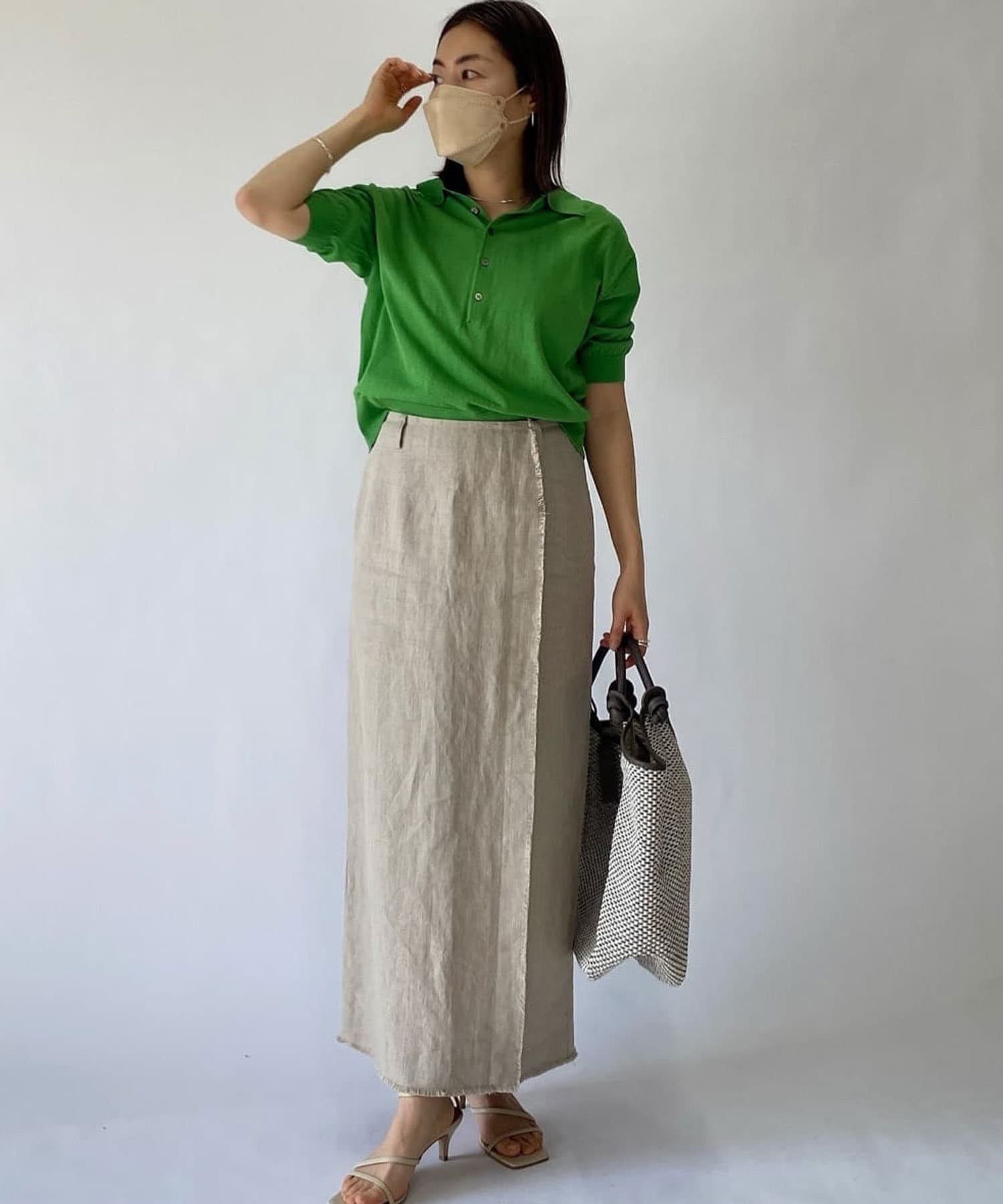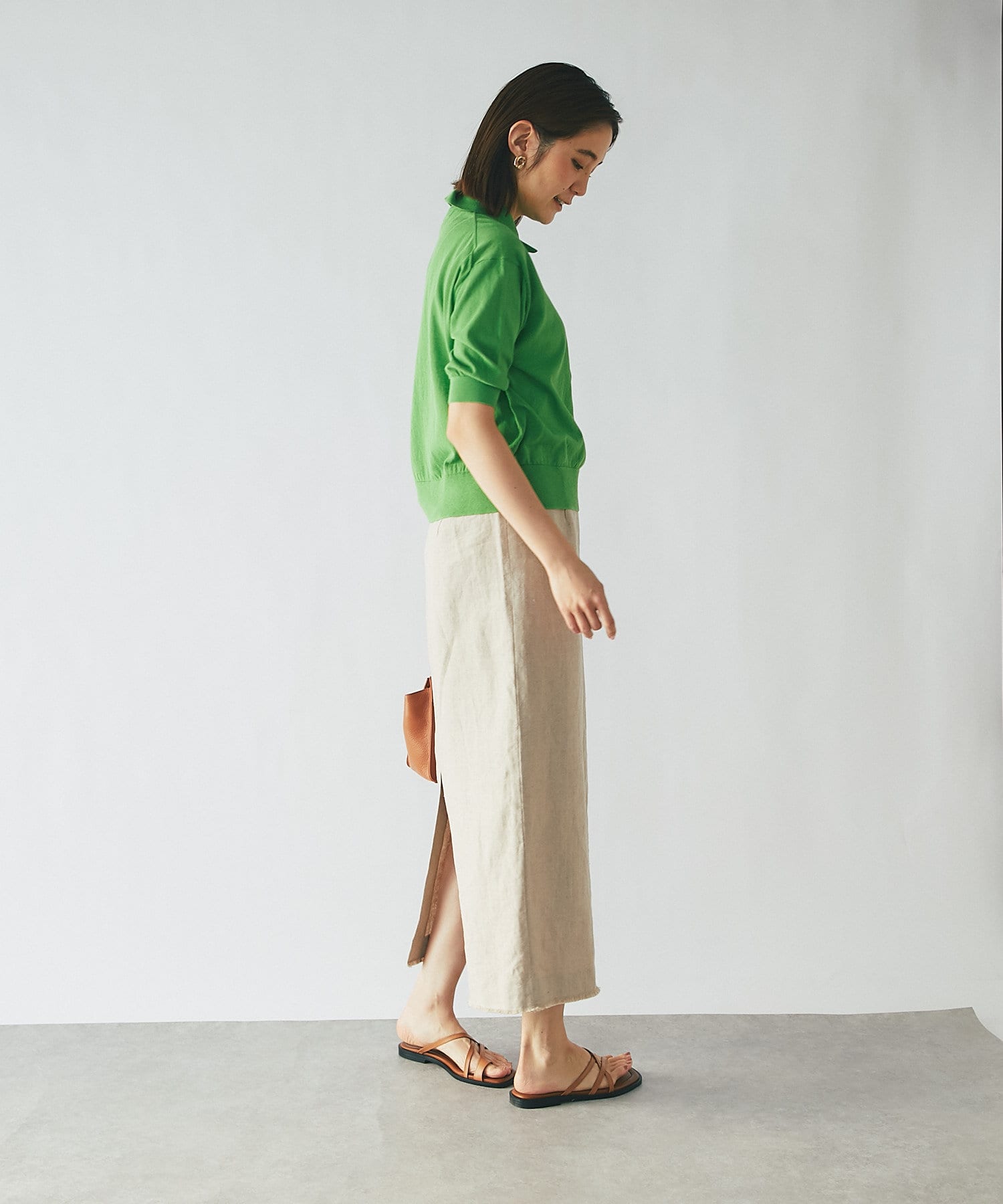 ややメンズライクな印象のあるポロシャツは、足元をサンダルにするなど女性らしさをプラスするとバランスがとりやすく、カジュアルダウンしすぎるのを防いでくれます。