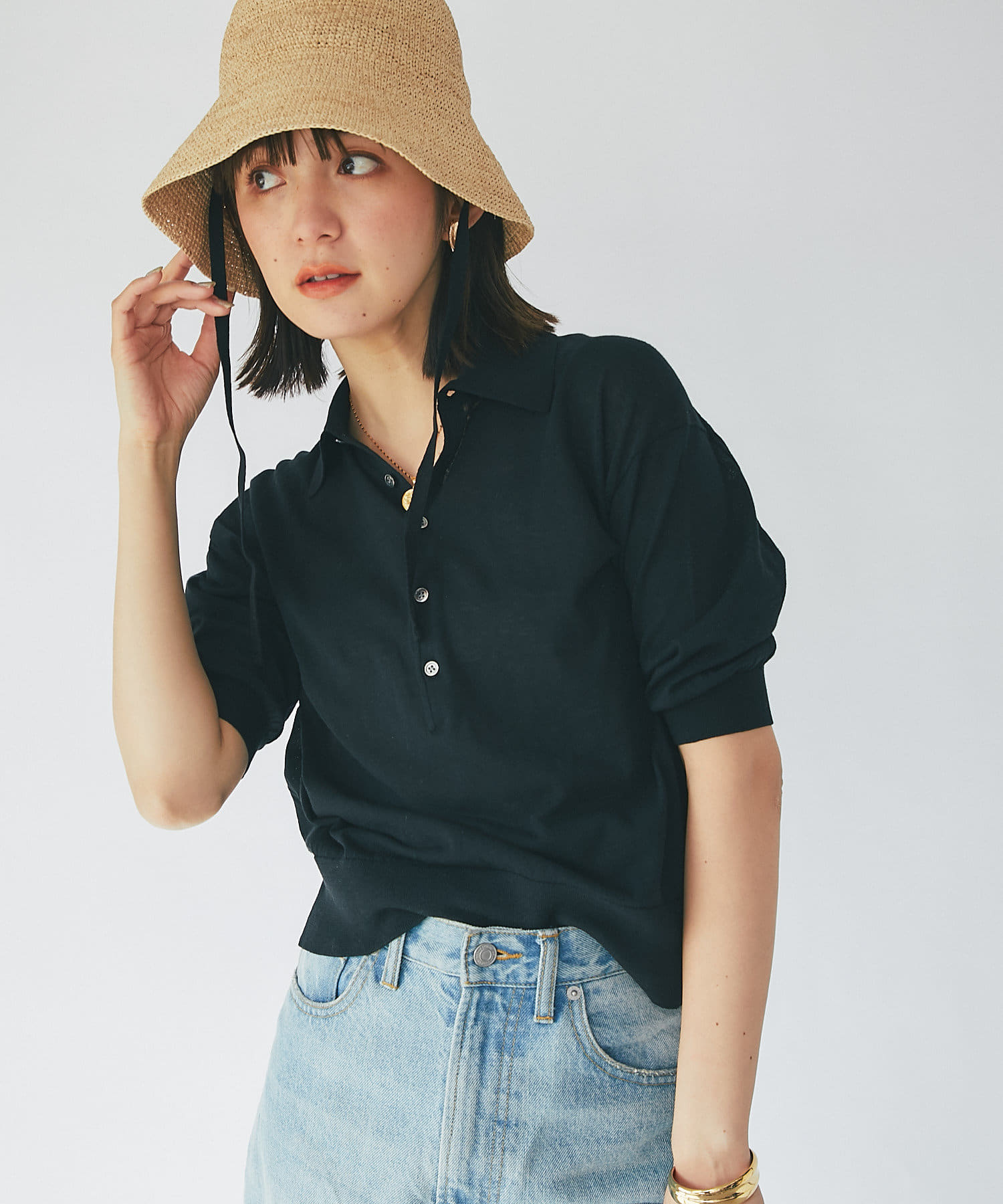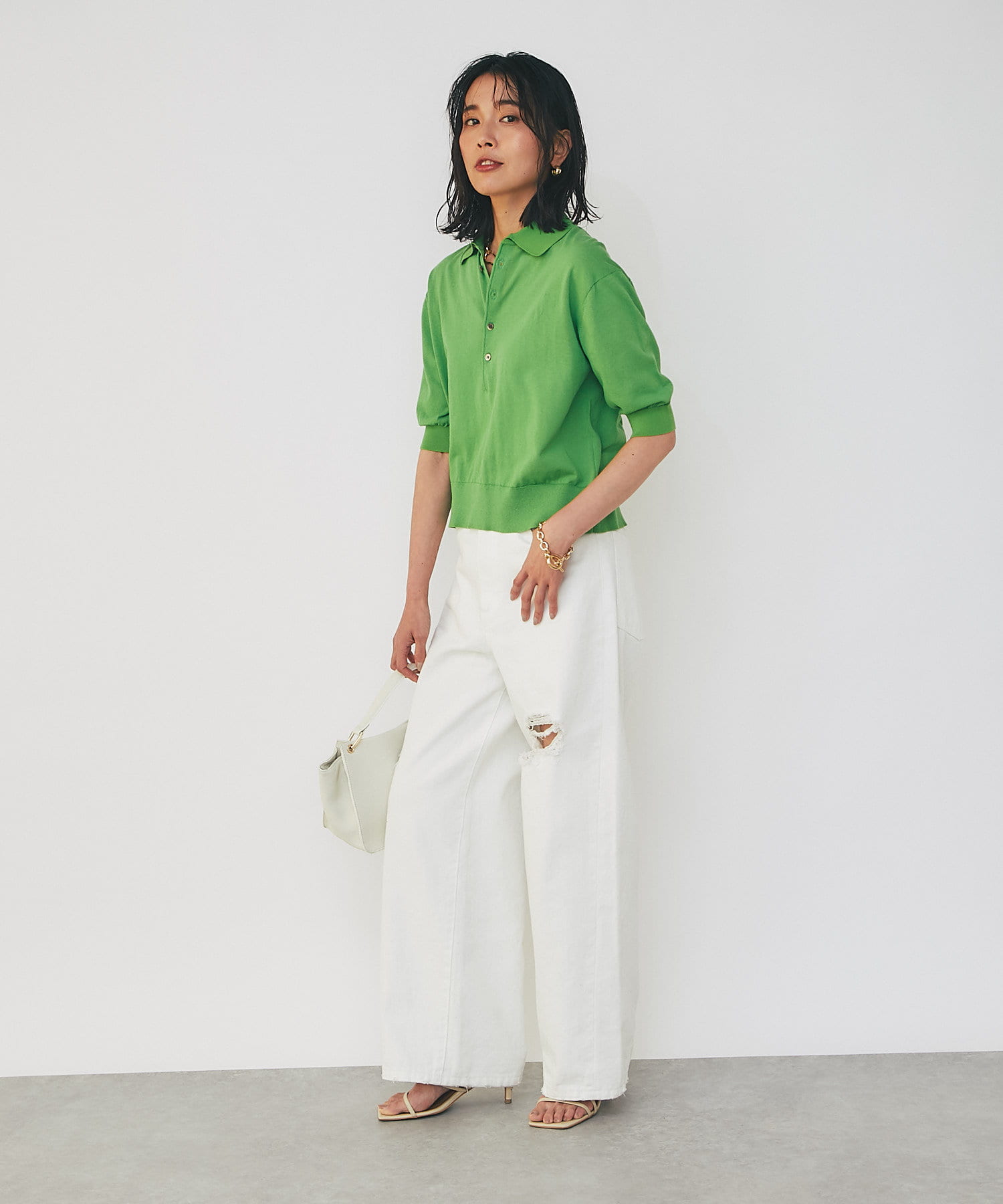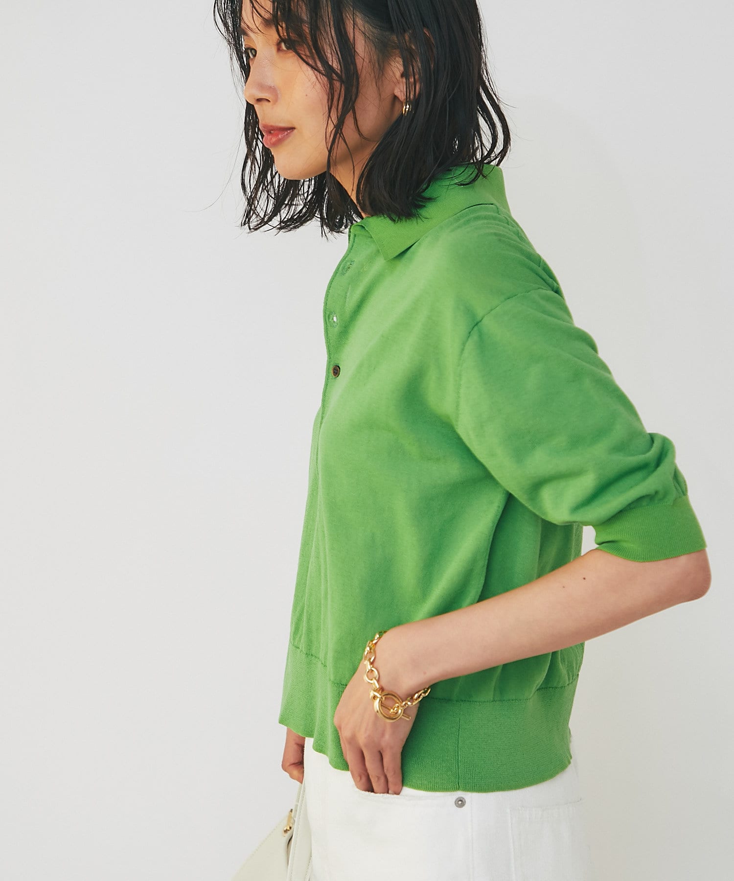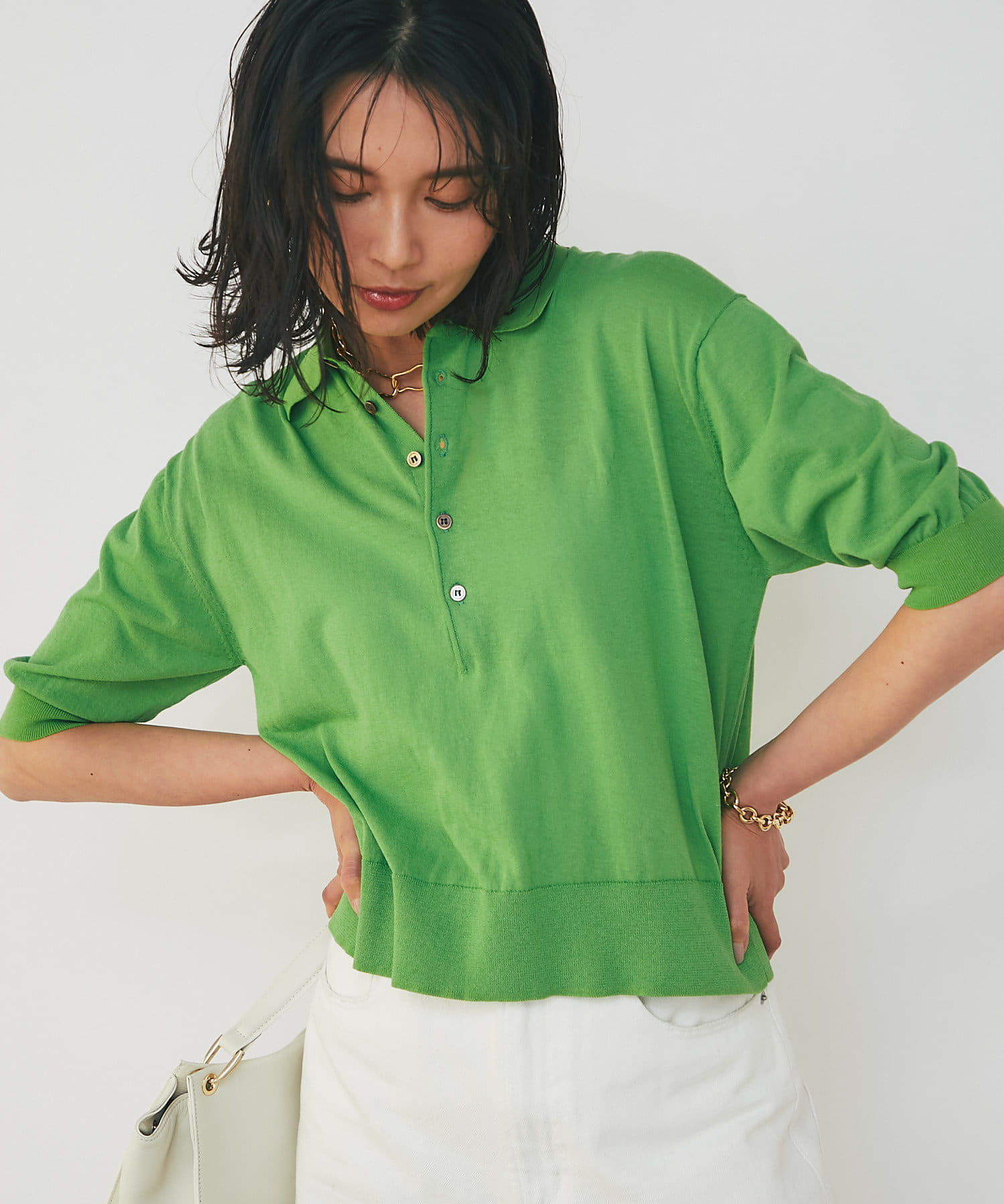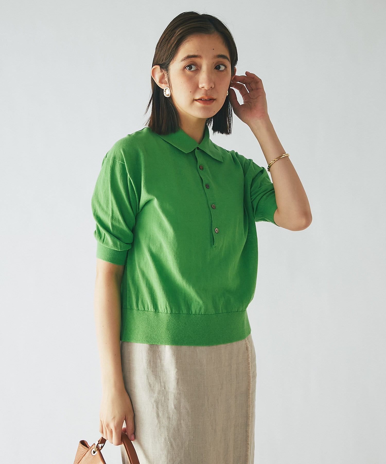 TOP > RIVE DROITE > レディース > トップス > ニット/セーター > 【さらっとした着心地抜群ニット】ハーフスリーブポロニット