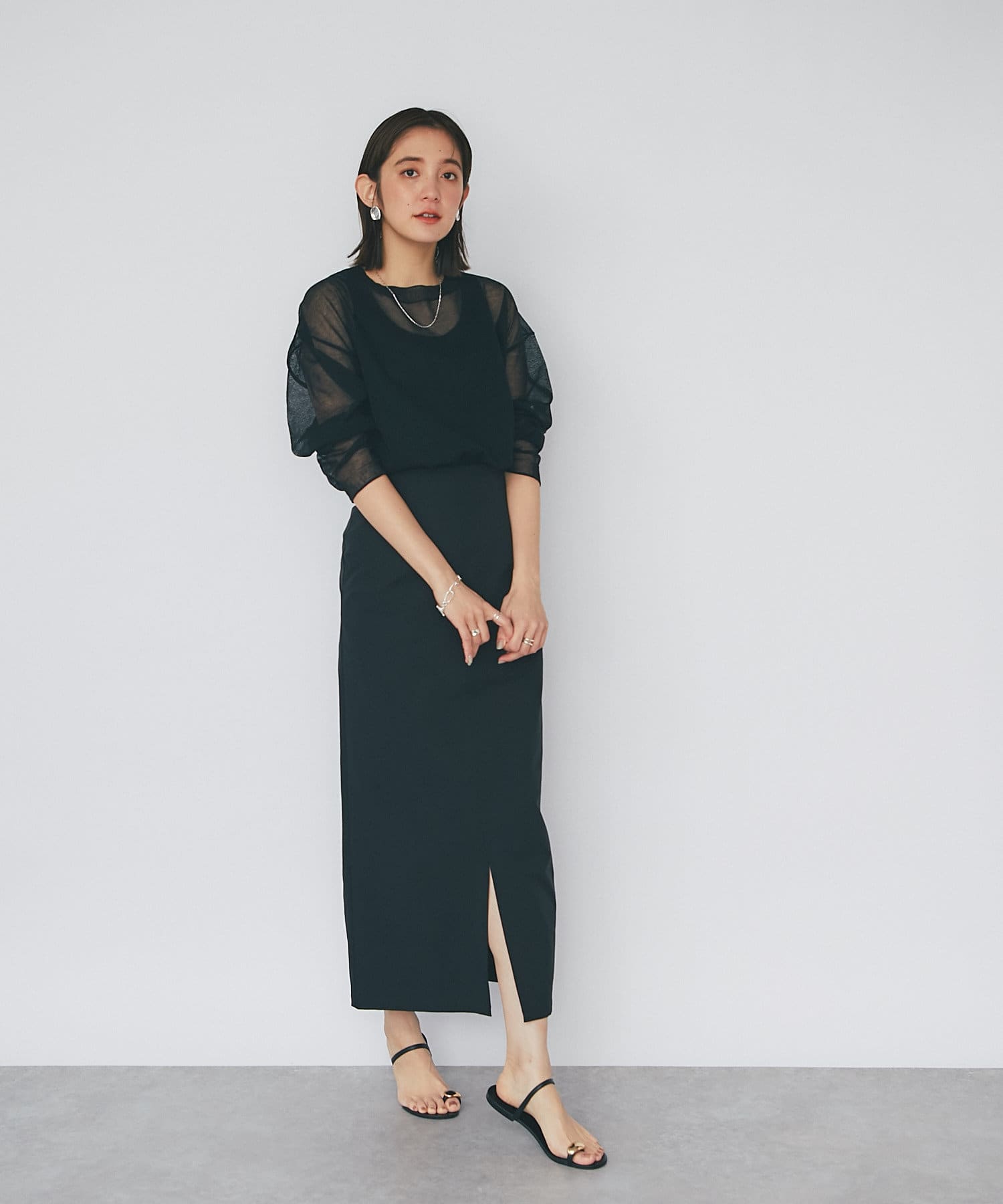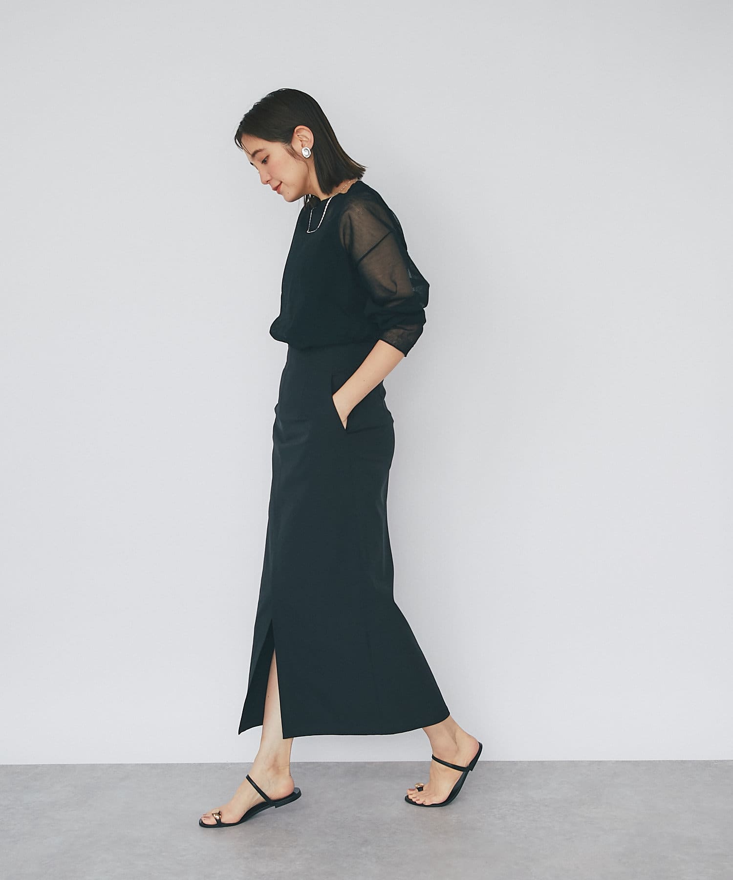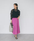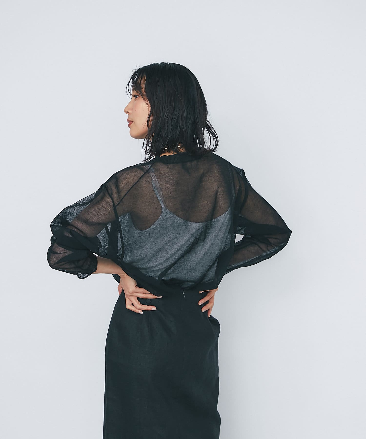 オーガンジーのようなハリと光沢のある素材感が女性らしく、リネン混のさらりとした素材で快適な着心地。