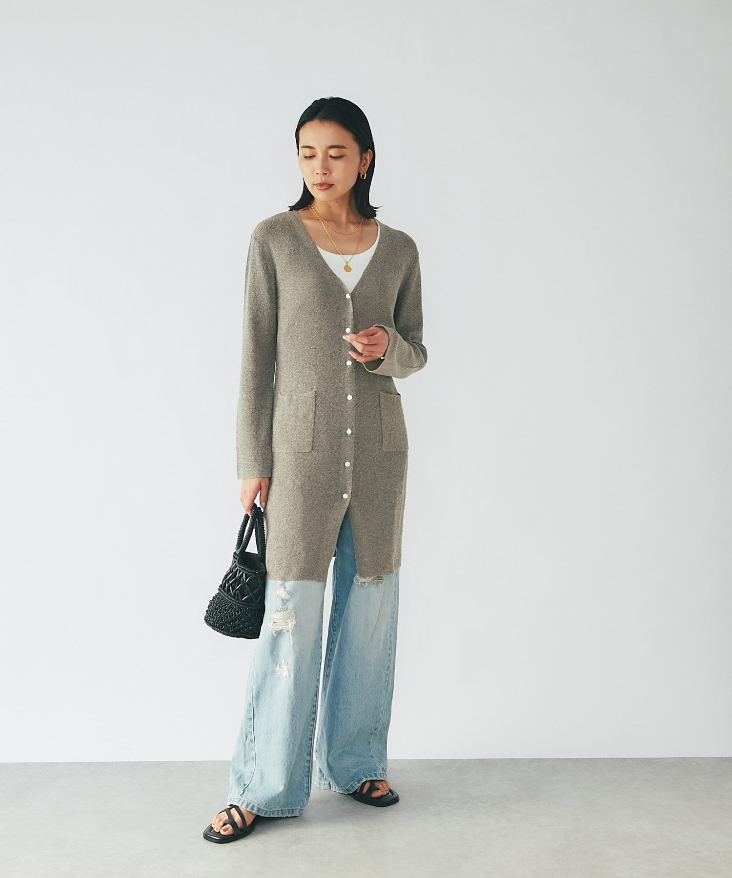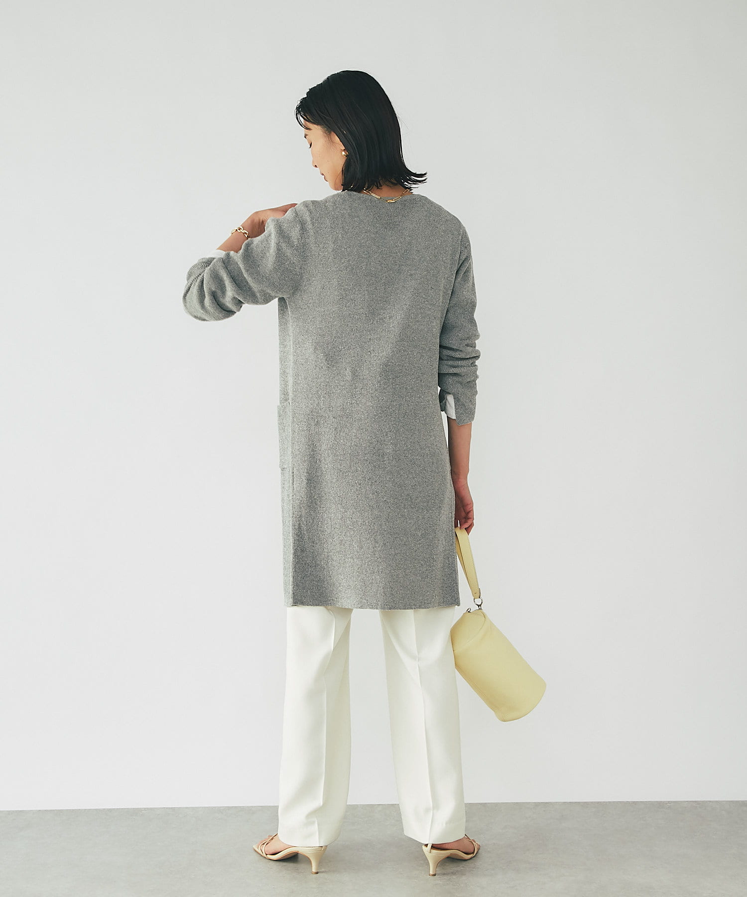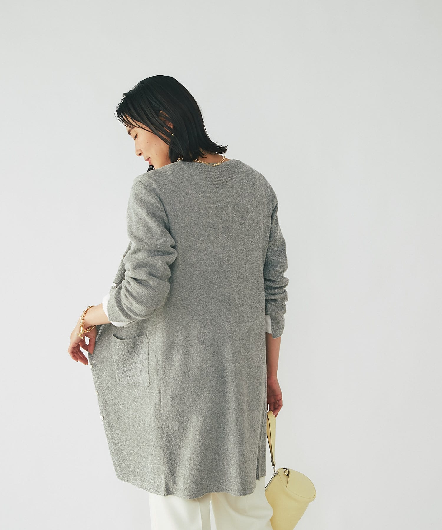 すっきりと女性らしい雰囲気のカーディガン