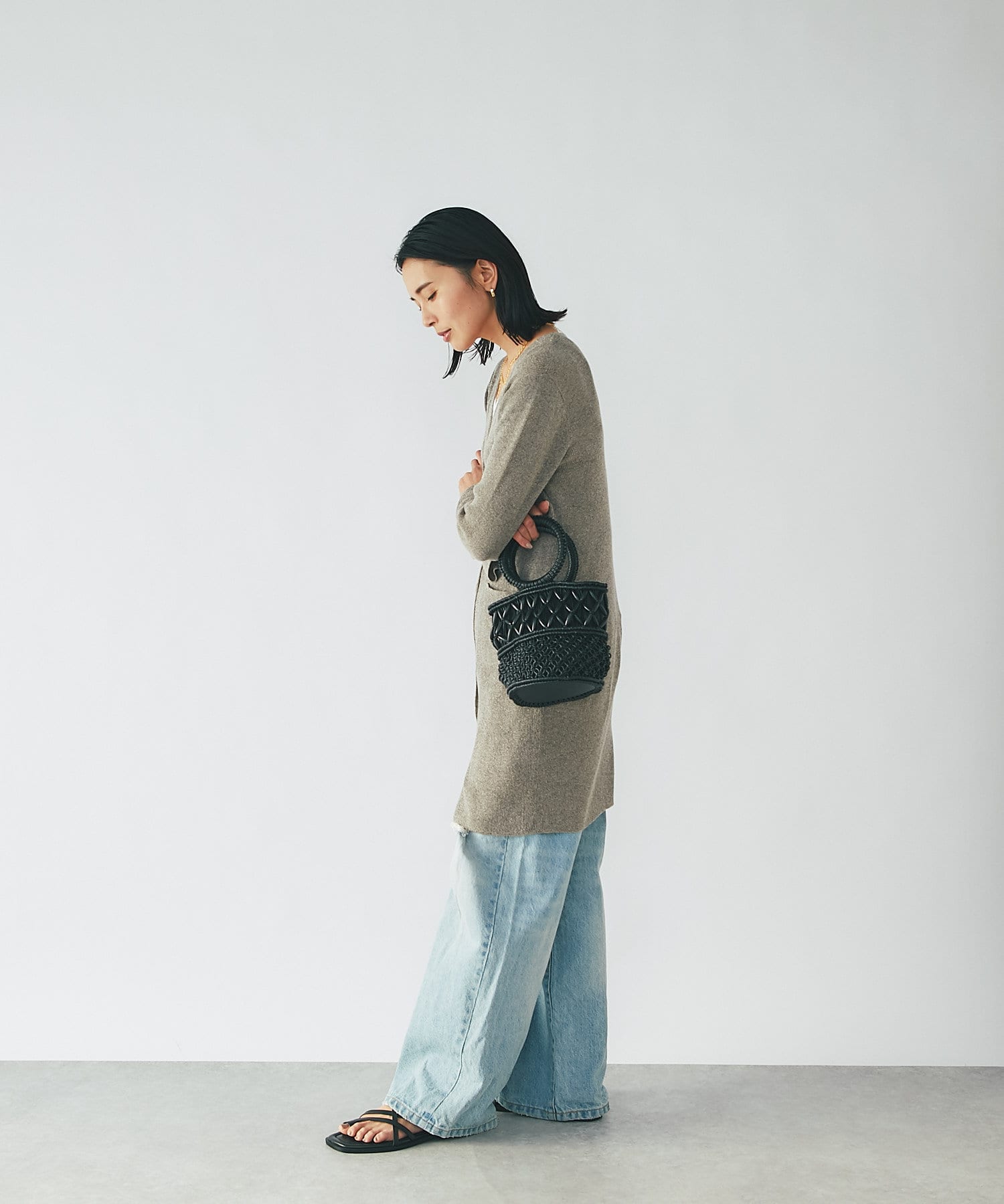 ゆるっと編んだ編地の付かず離れすな絶妙フィット感も女性らしさを引き出してくれます。