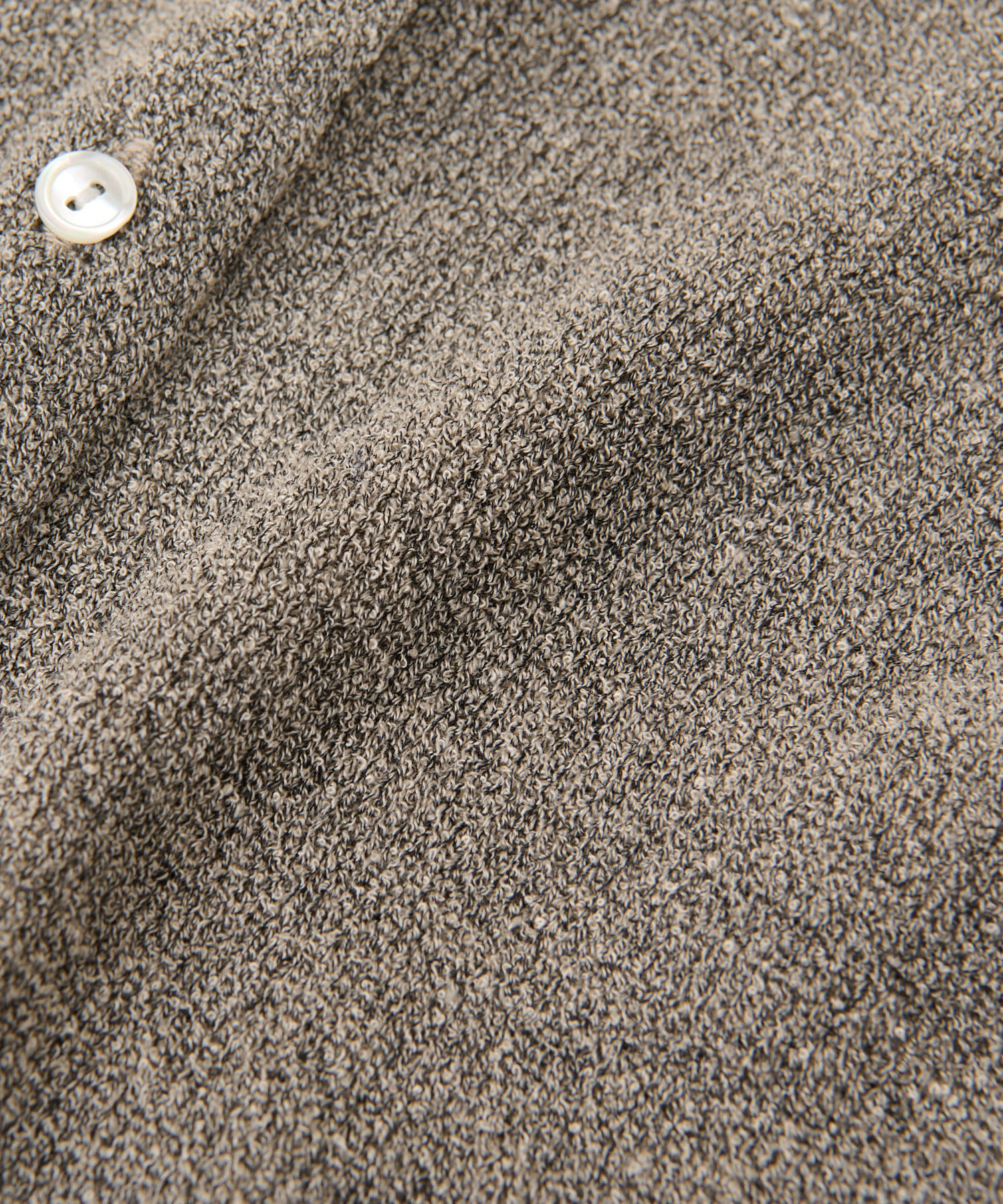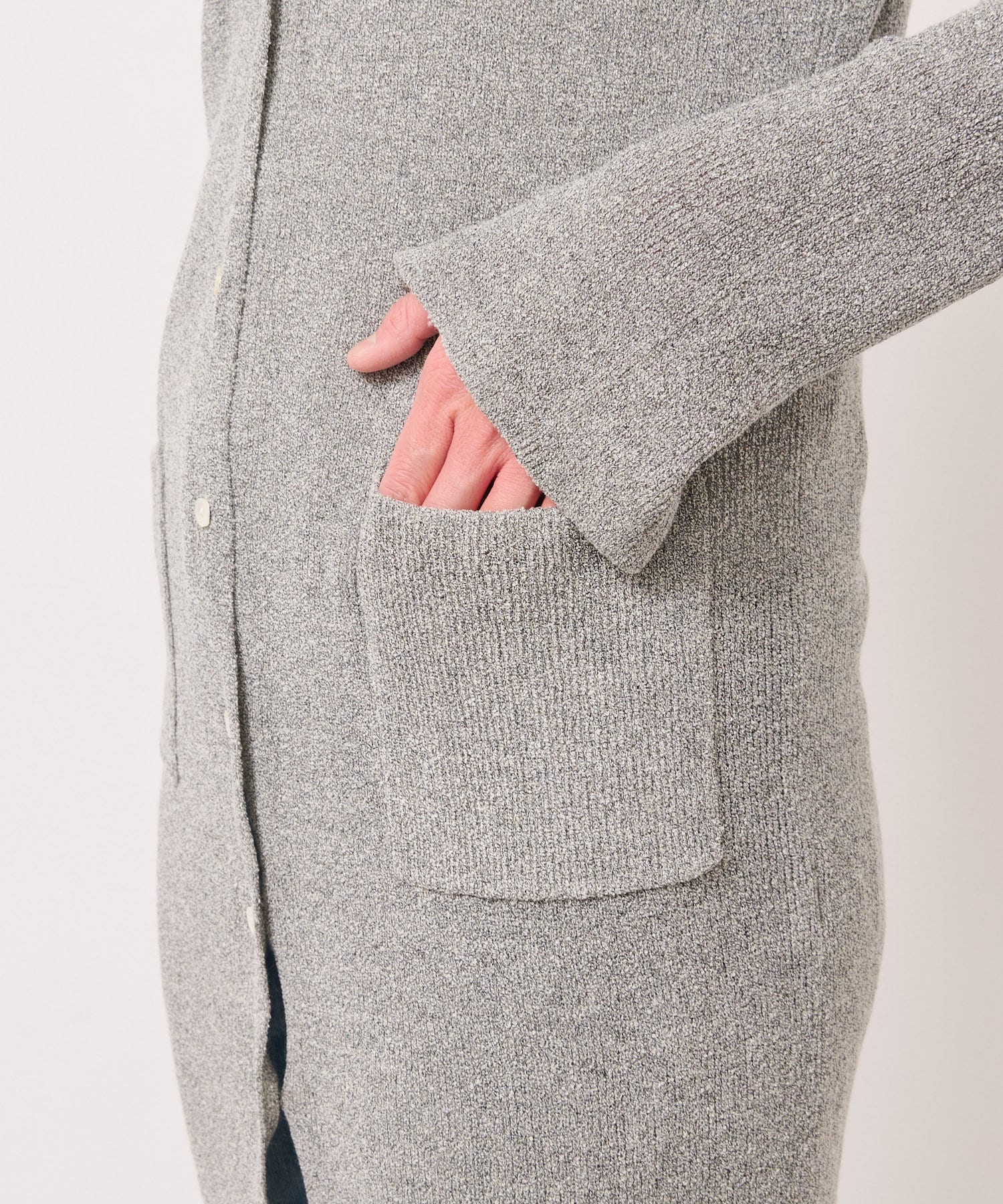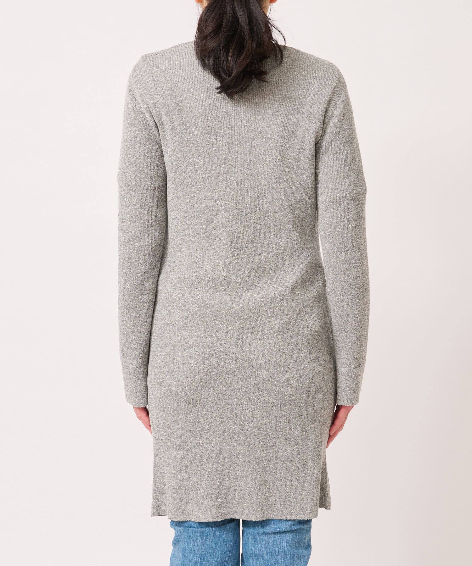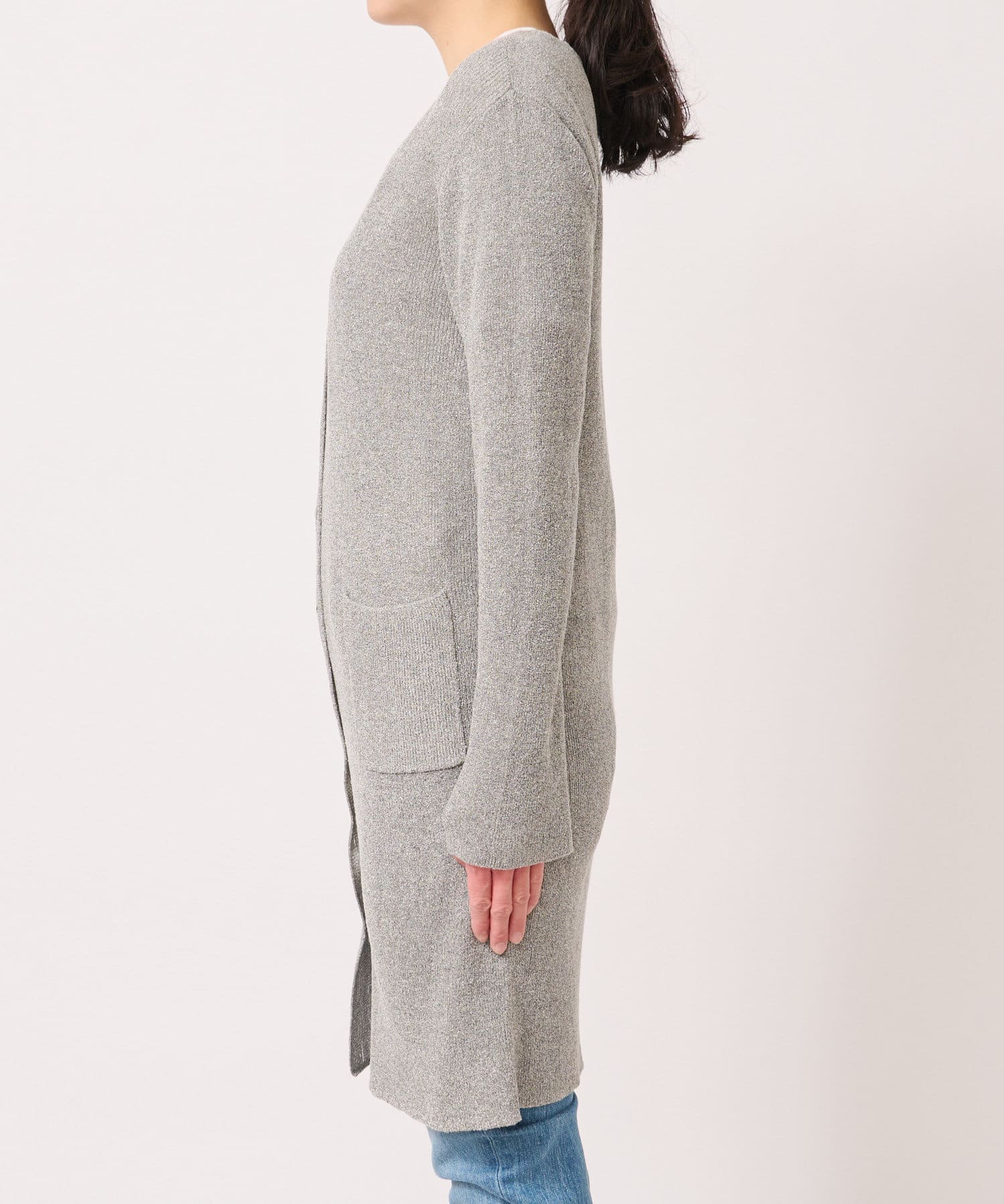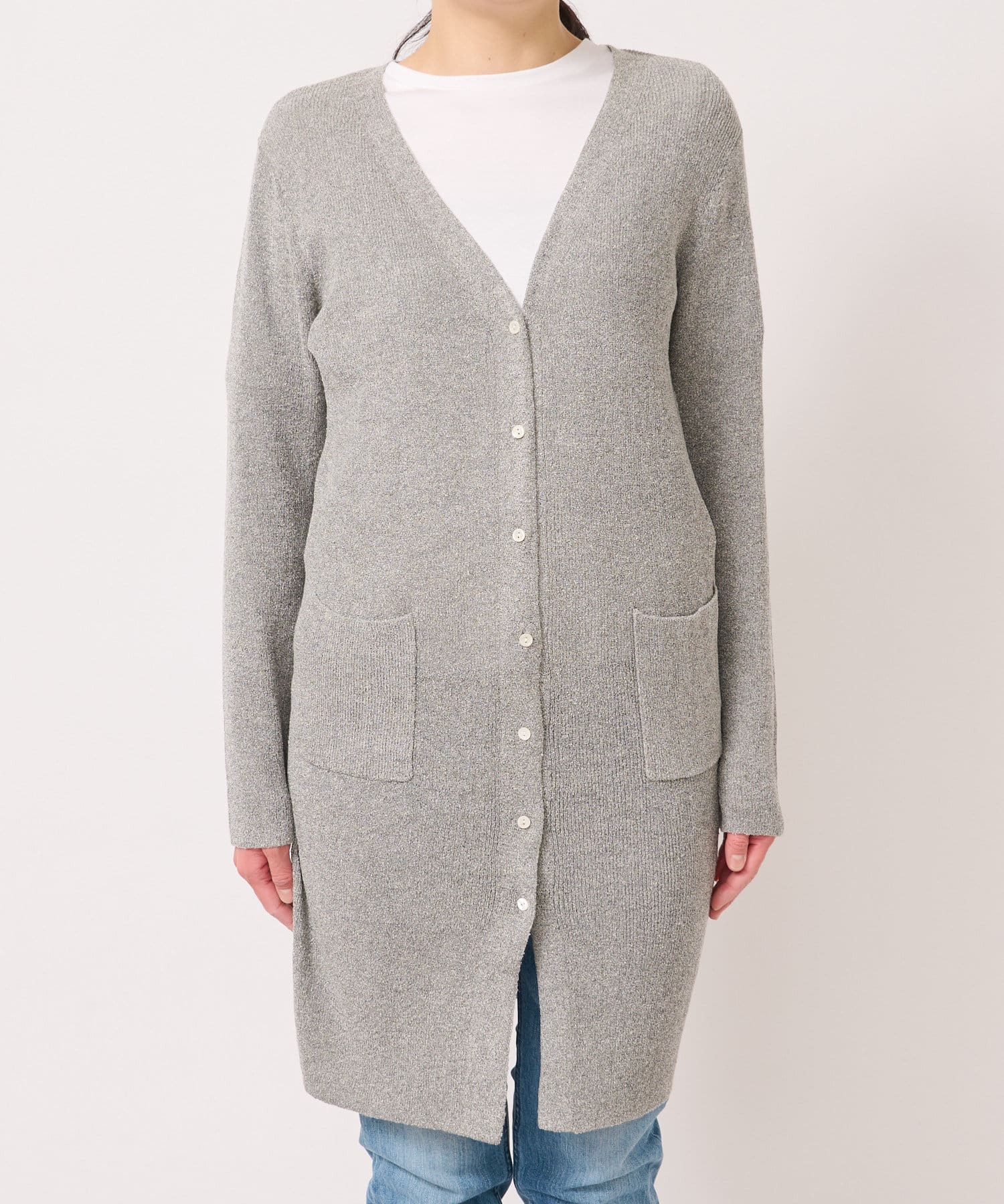 コットンナイロンの小さなリングブークレーをやわらかなリブ編みにしたロングカーデ。