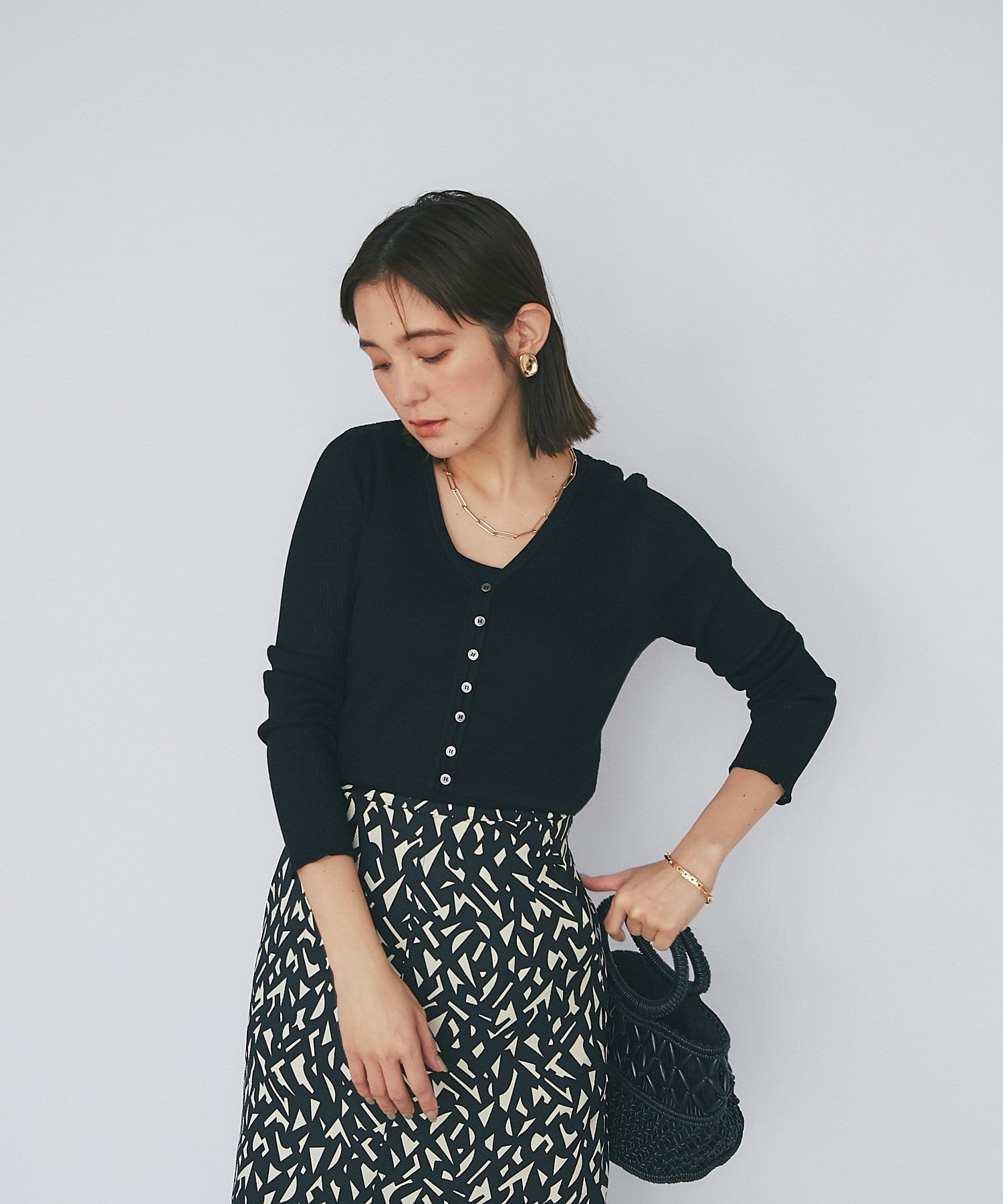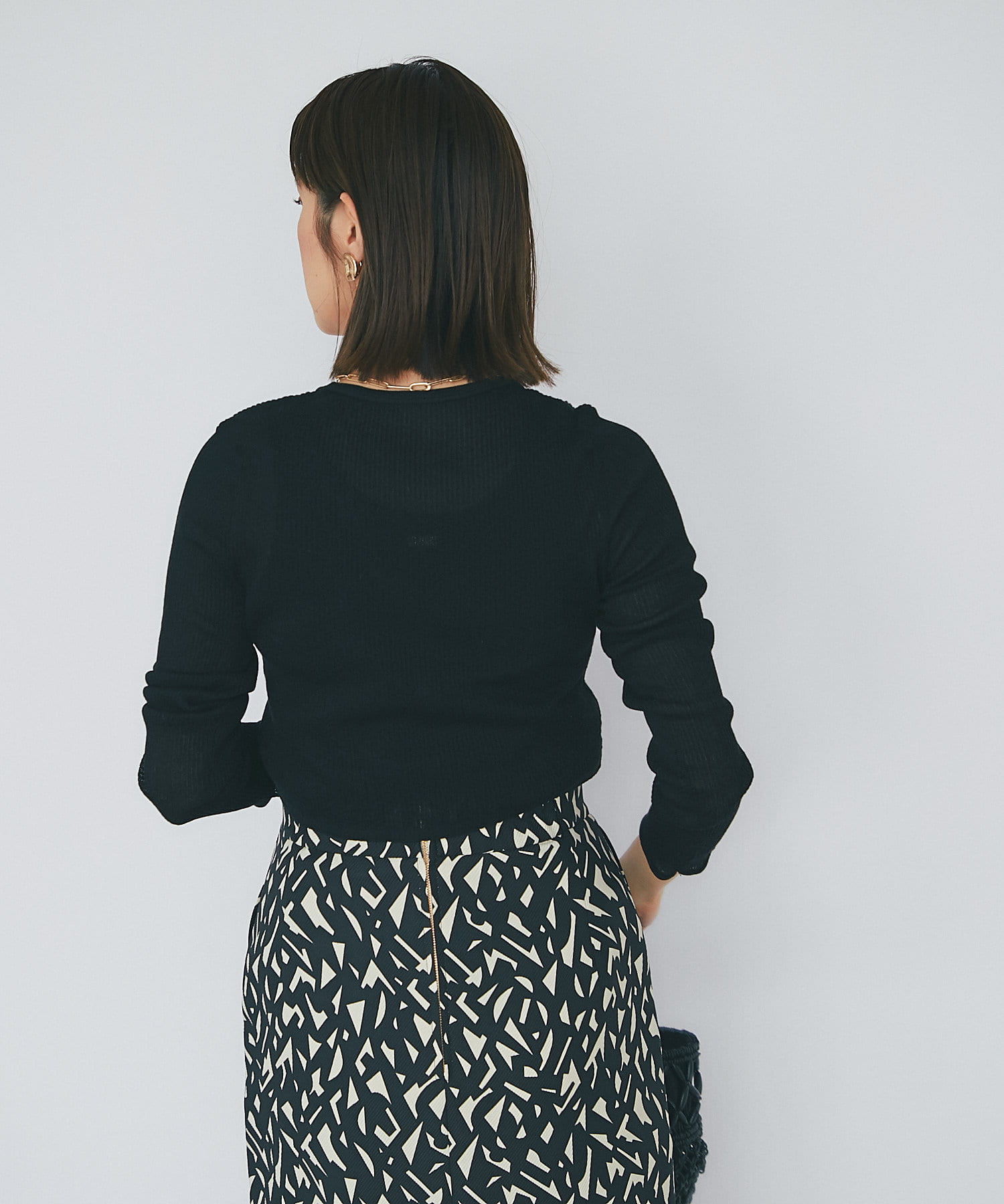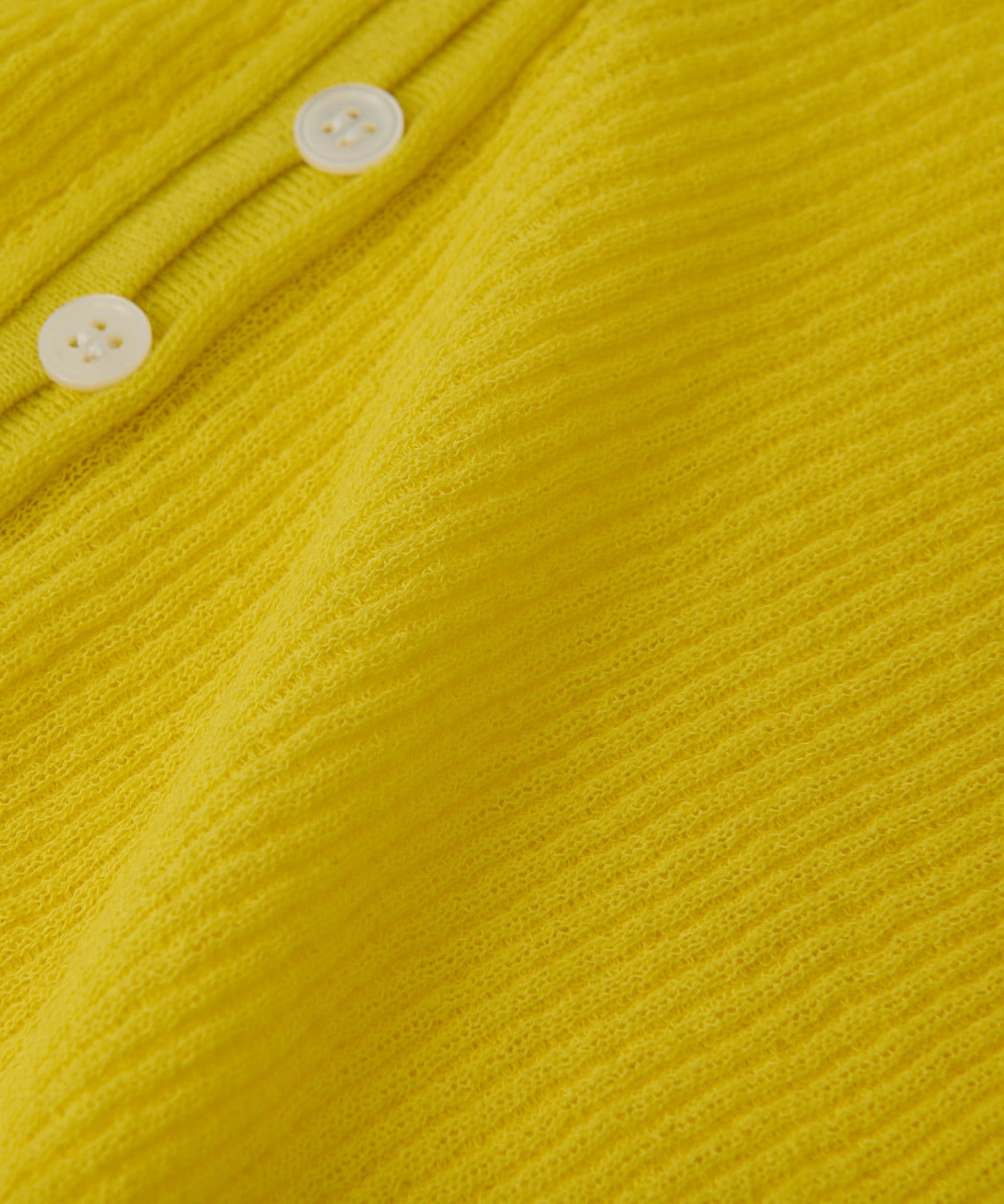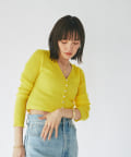 レーヨン・リネン・ポリエステルを使用したこなれ感たっぷりの編地とラフな雰囲気、繊細なボタンディティールがとにかく可愛いひとめぼれ間違いなしの1着です。