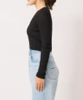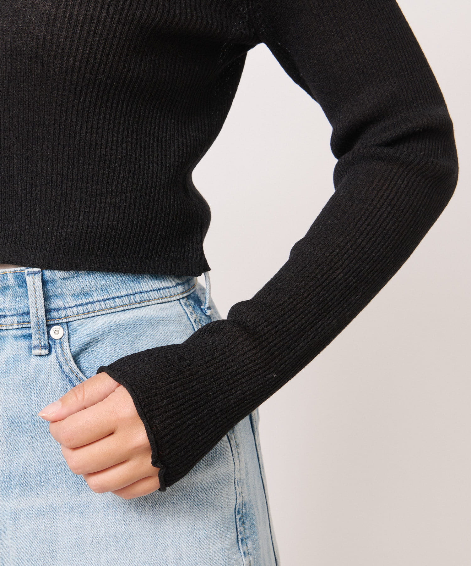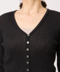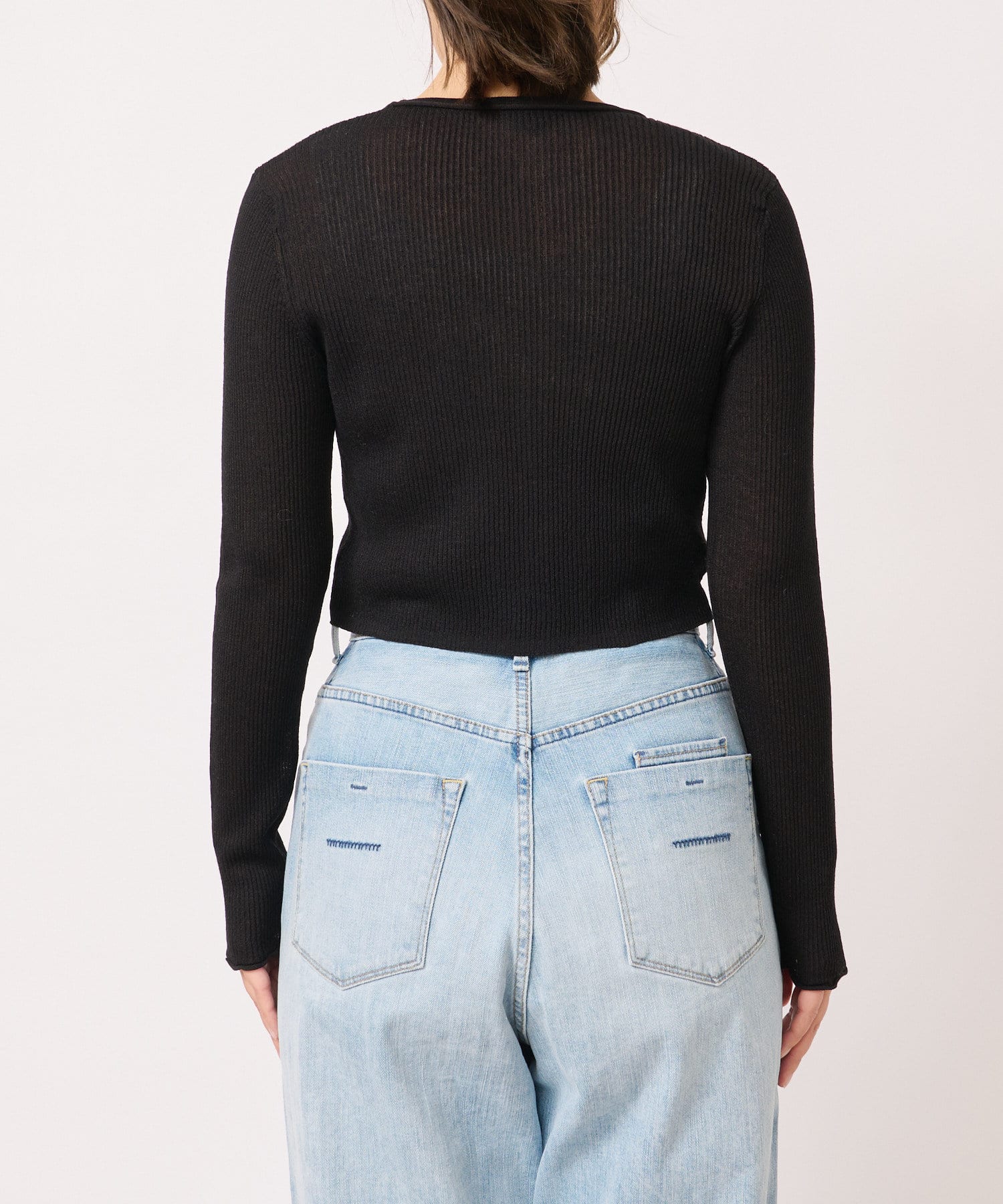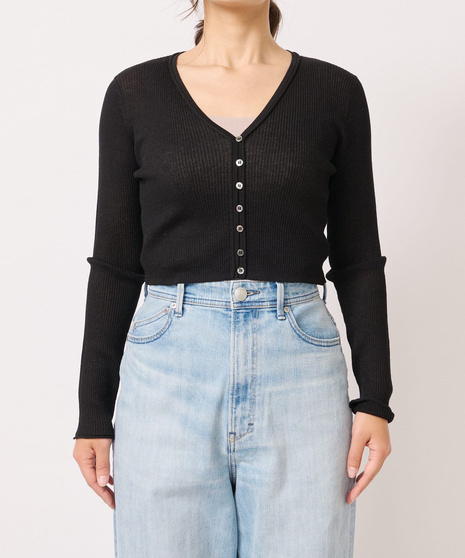 【繊細で女性らしいデザインに仕上げた】リブショートカーディガン
