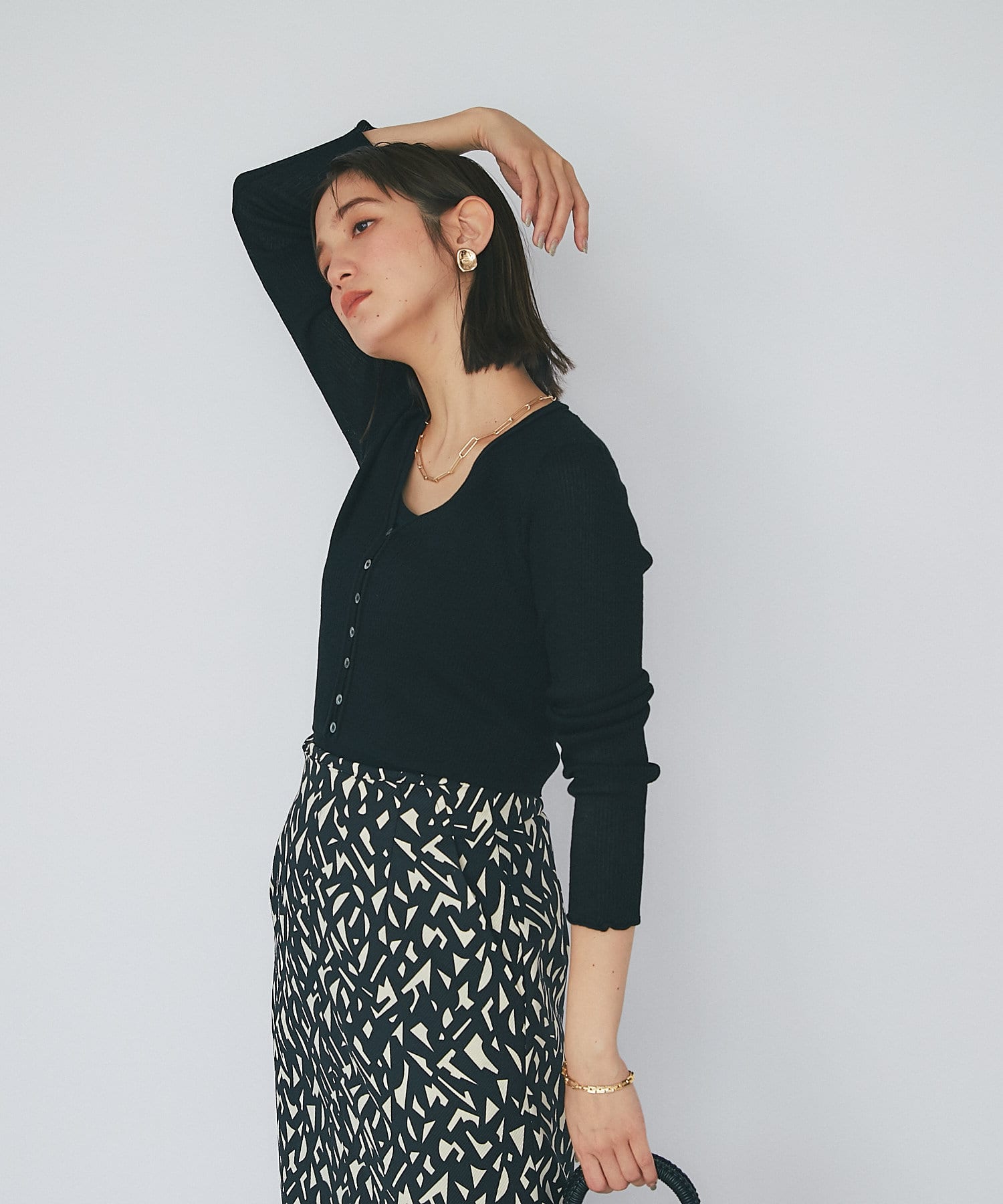 マーメードスカートと合わせて女性らしいシルエットを生かすスタイルもおすすめです。